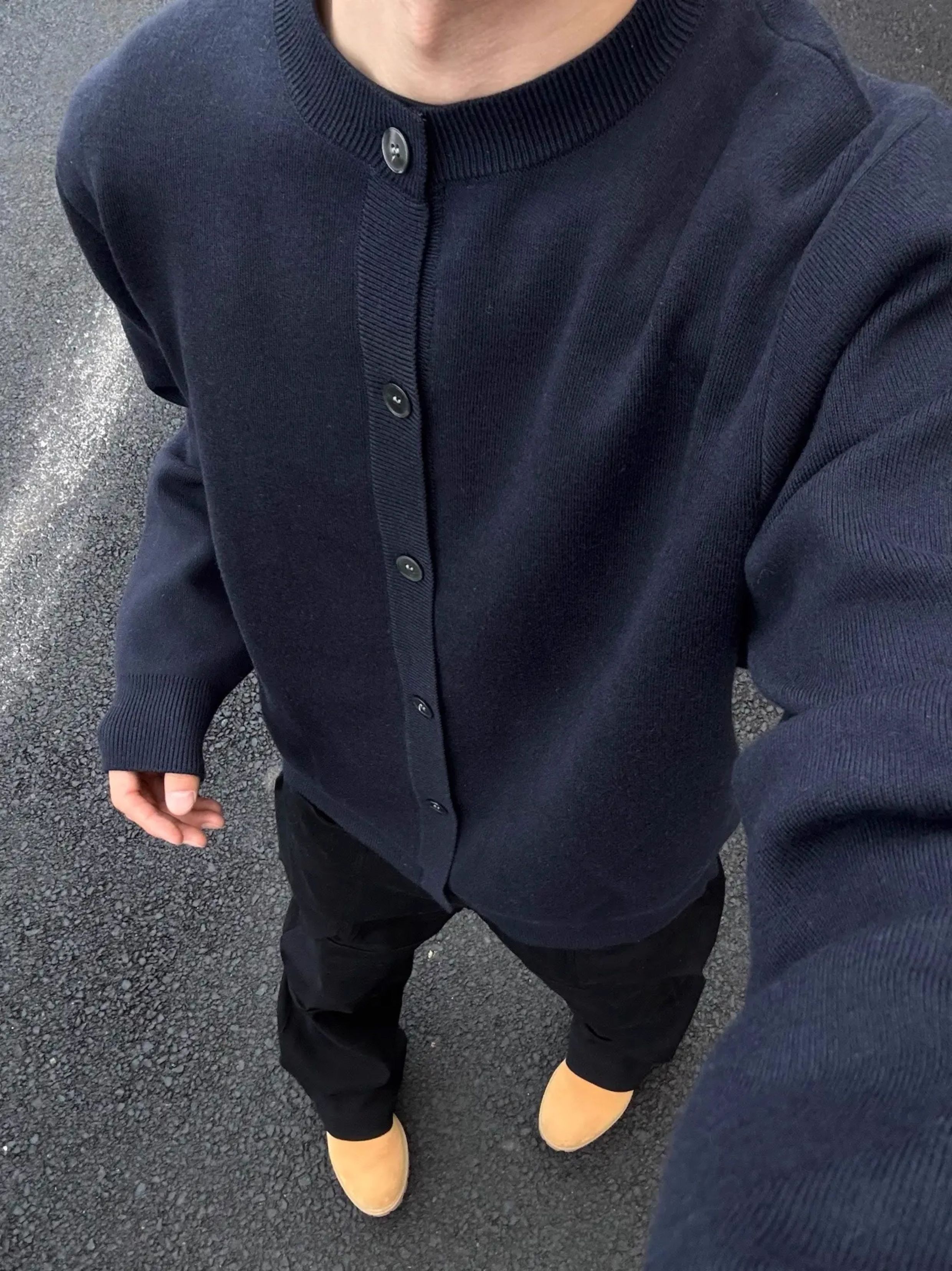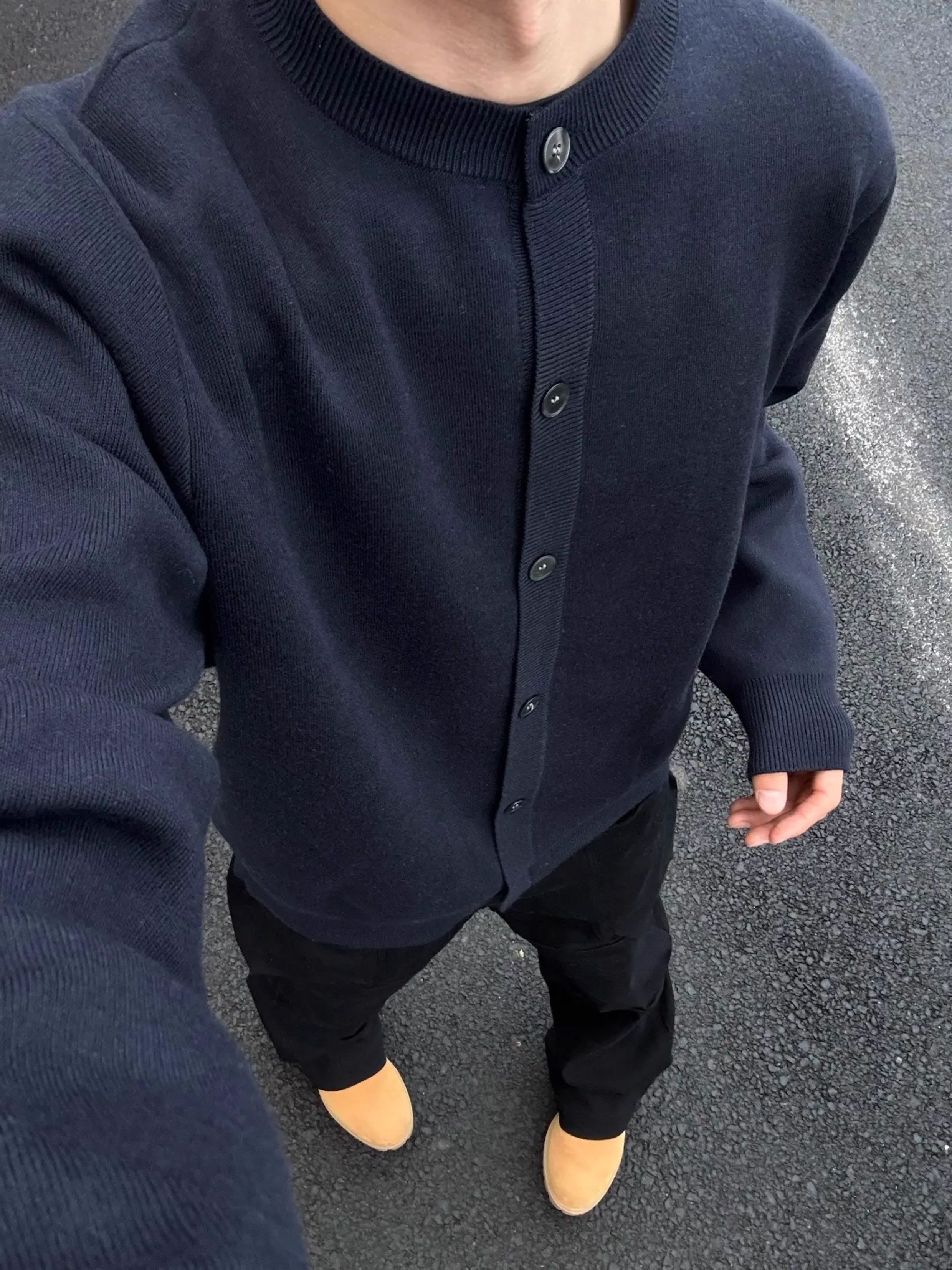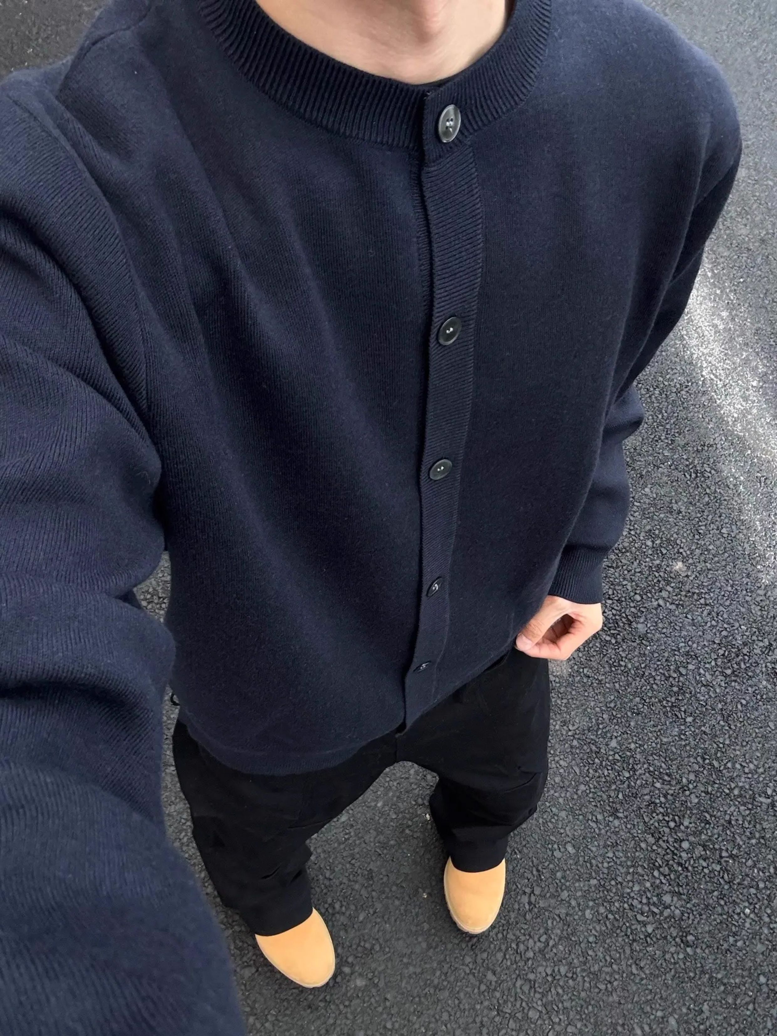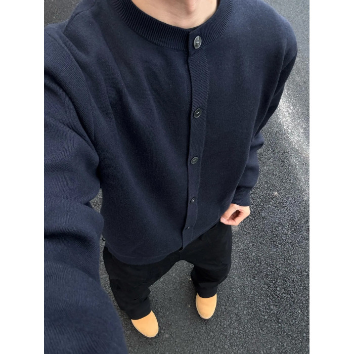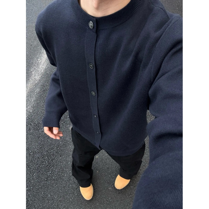 weere男裝針織外套春秋款寬松休閒慵懶風高級感黑色圓領毛衣開衫