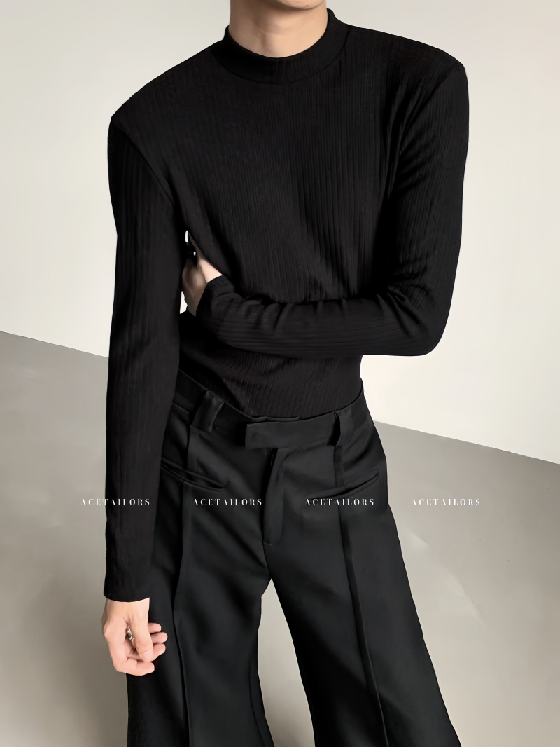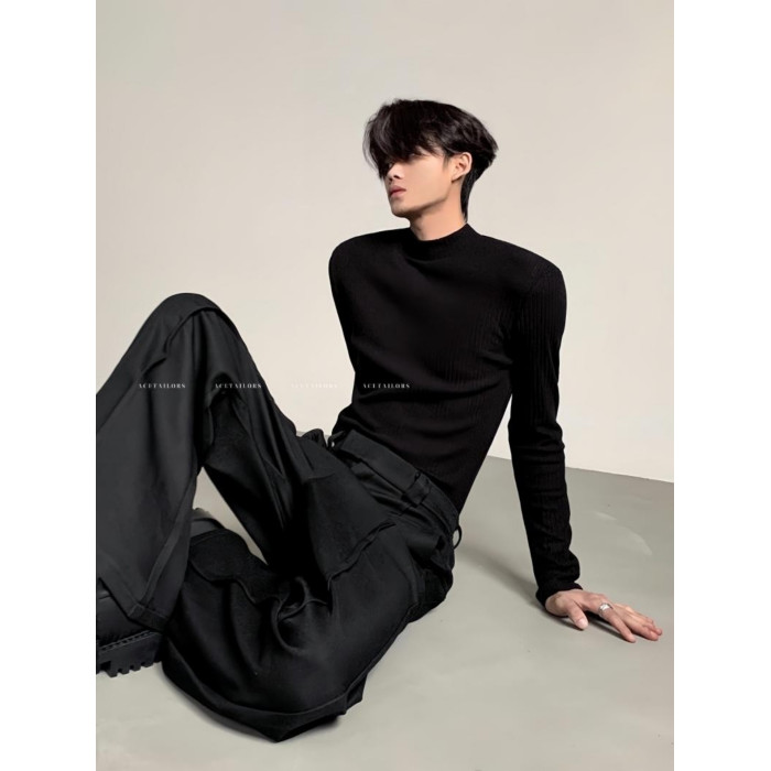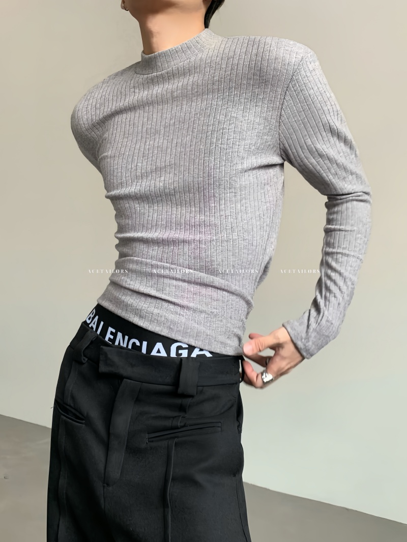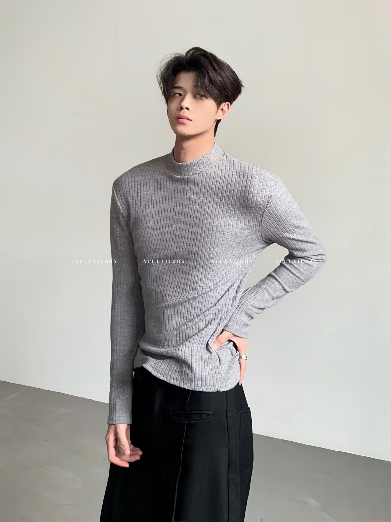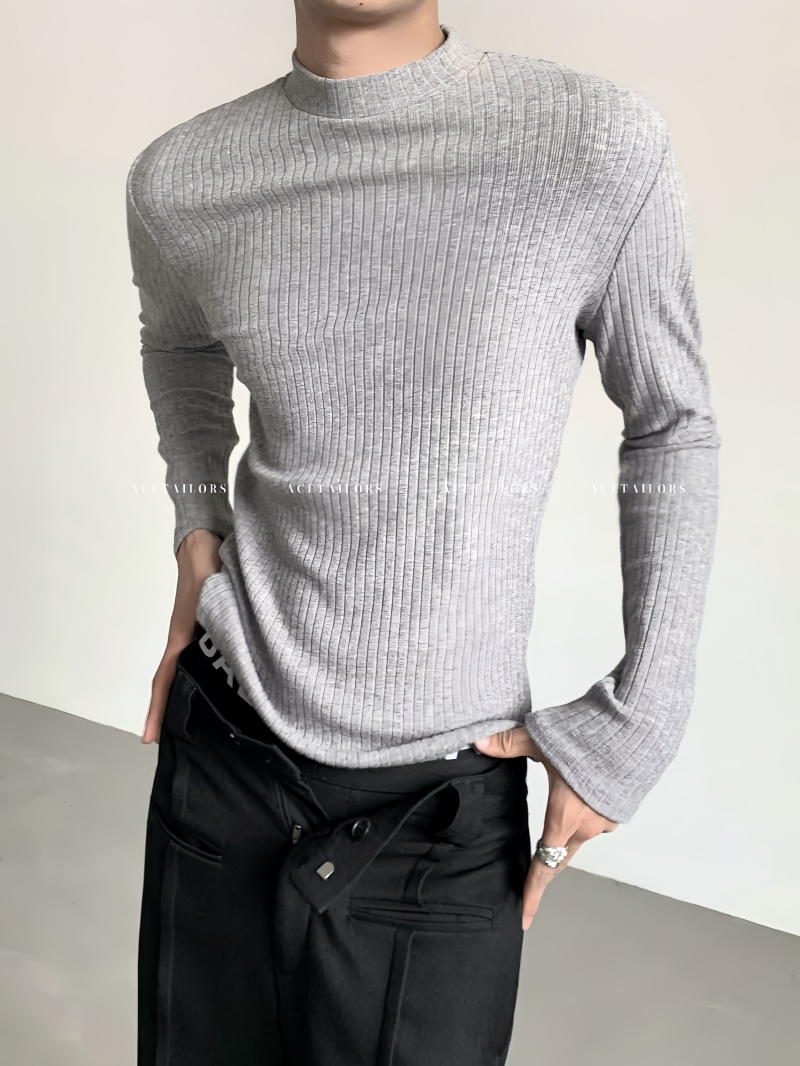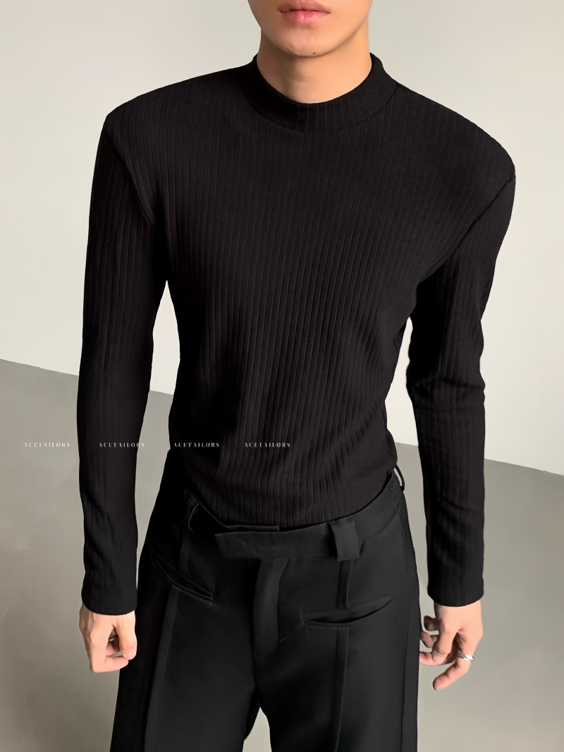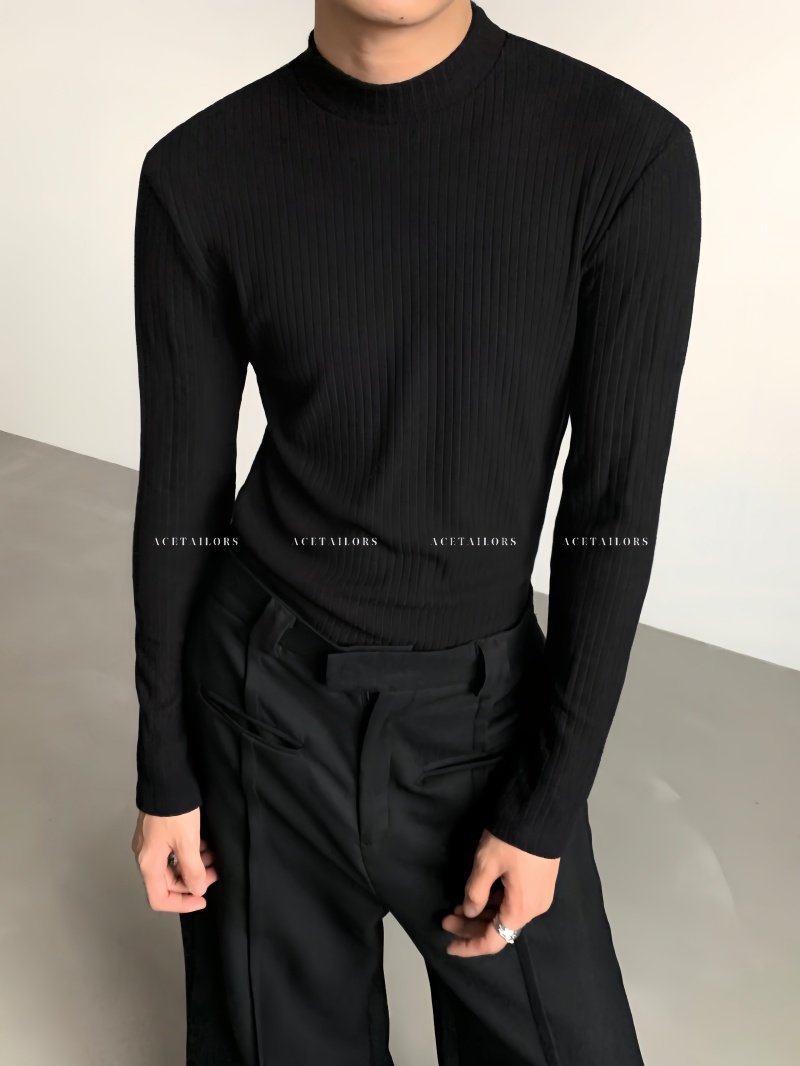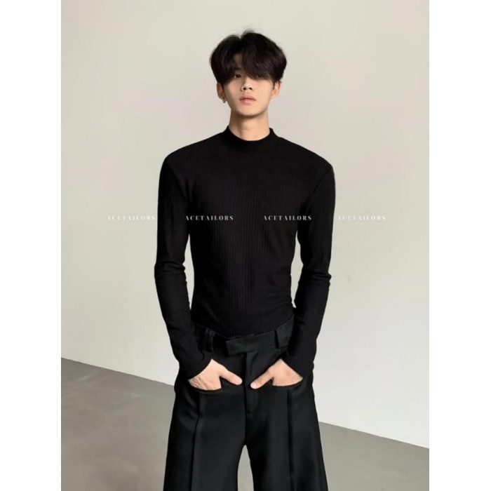 ACE'小衆設計感簡約純色半高領打底針織衫秋冬修身內搭保暖毛衣男
