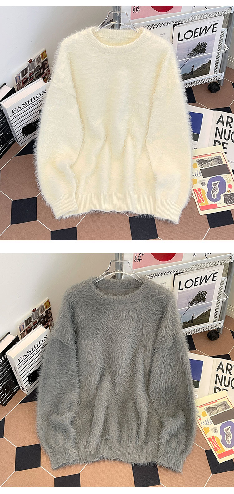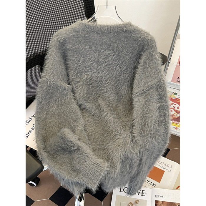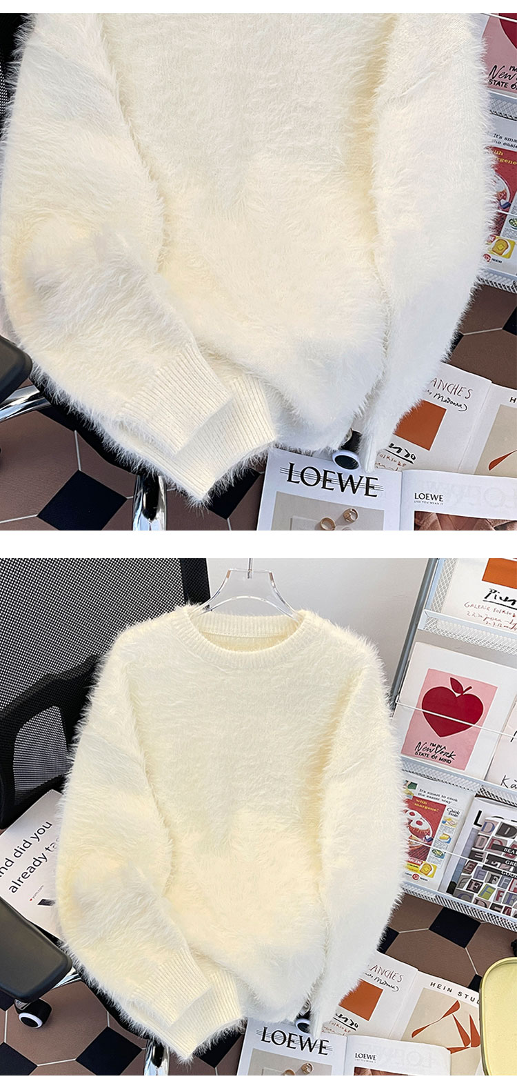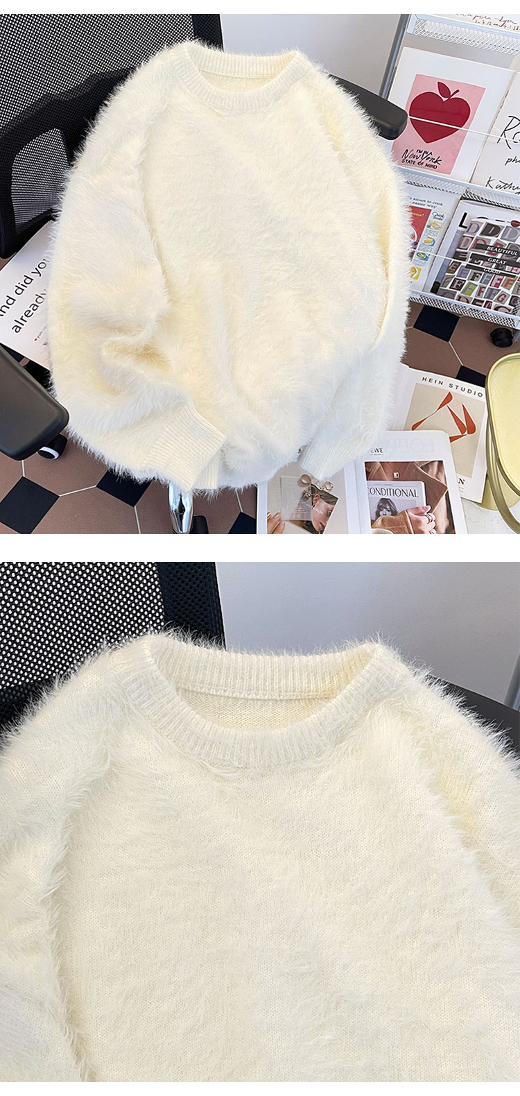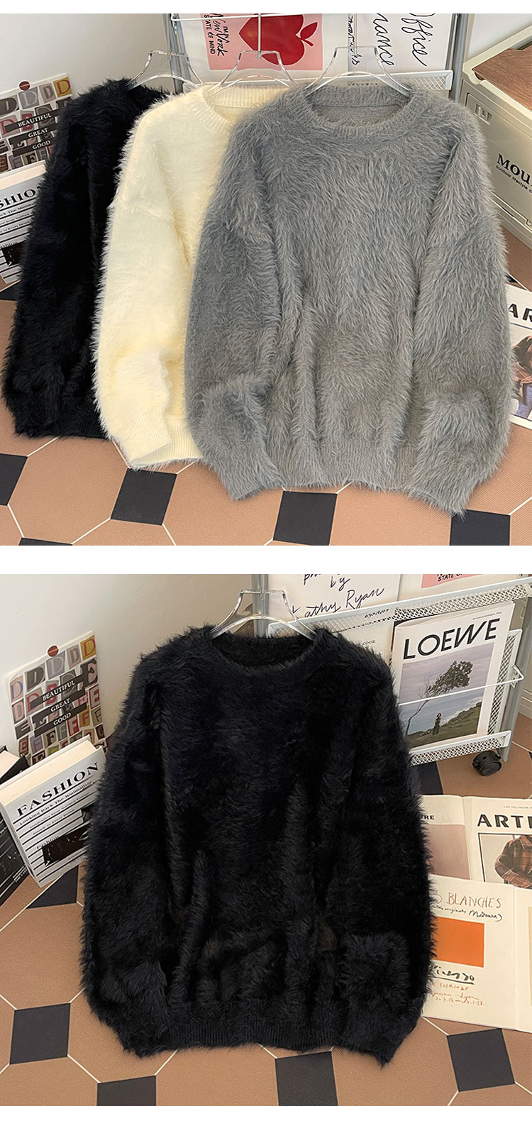 2025秋冬純色水貂絨長袖毛衣男女圓領套頭加厚保暖針織衫日系bf風