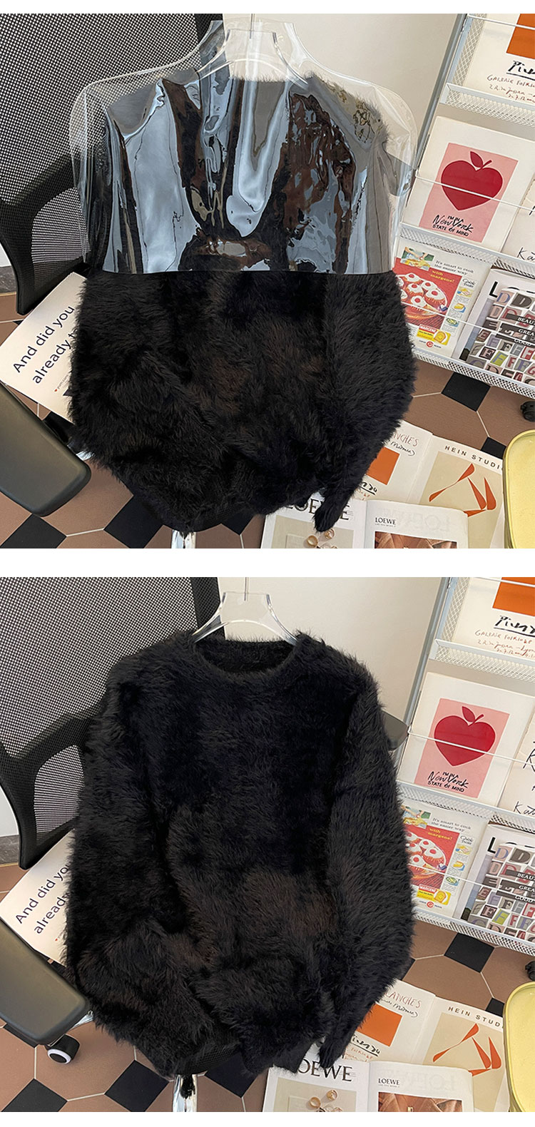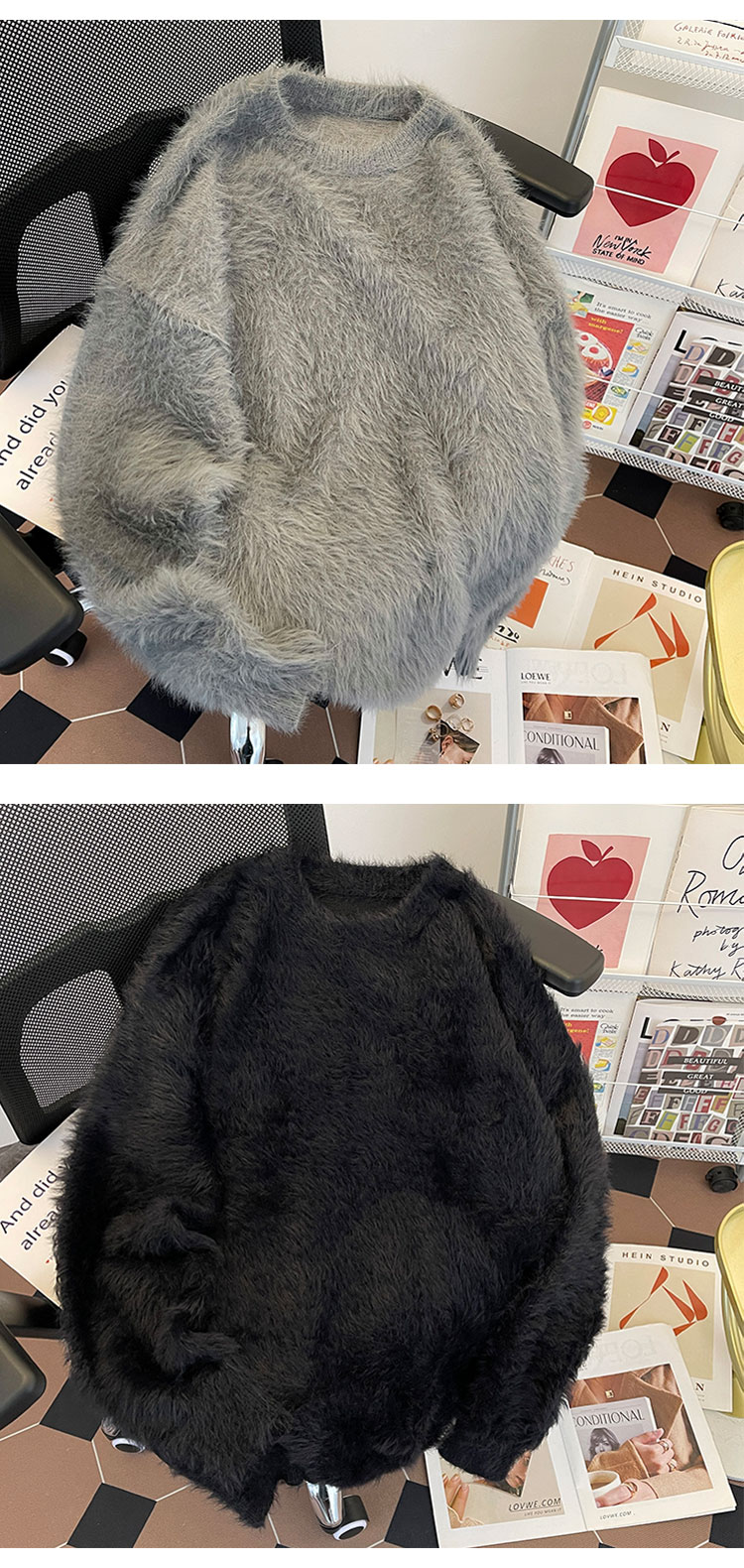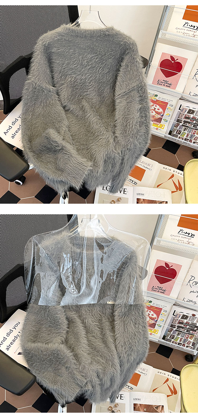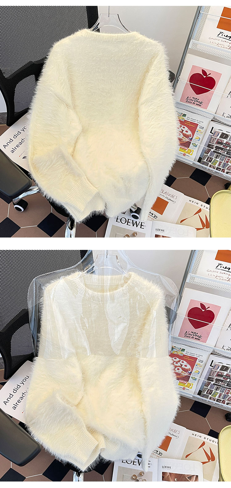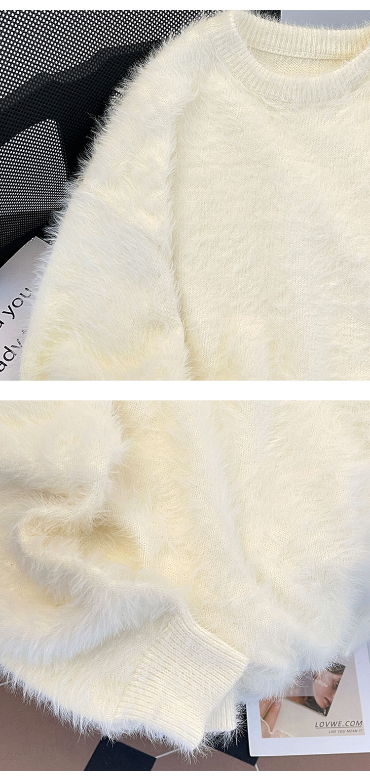 2025秋冬純色水貂絨長袖毛衣男女圓領套頭加厚保暖針織衫日系bf風