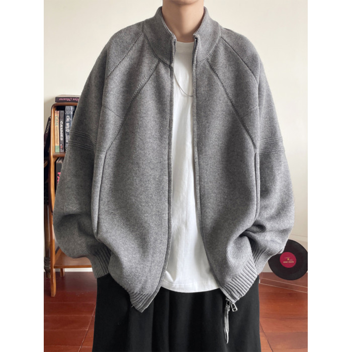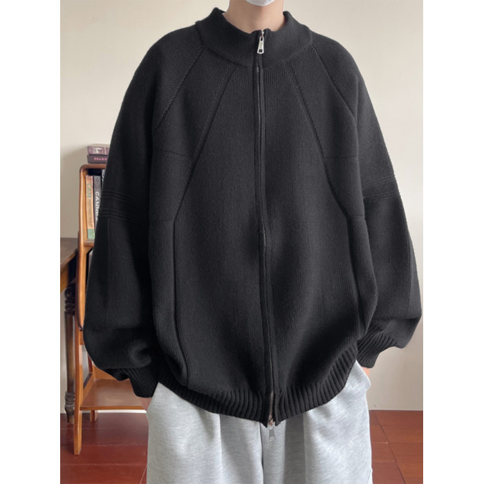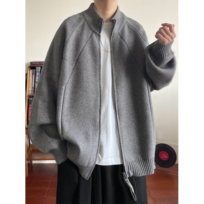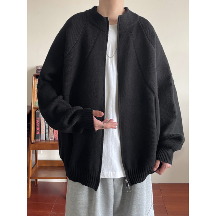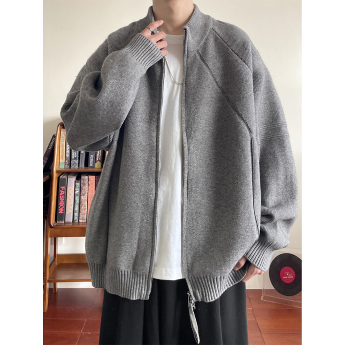 重磅慵懶風針織開衫男款冬季美式復古情侶款毛衣拉鍊設計寬松外套
