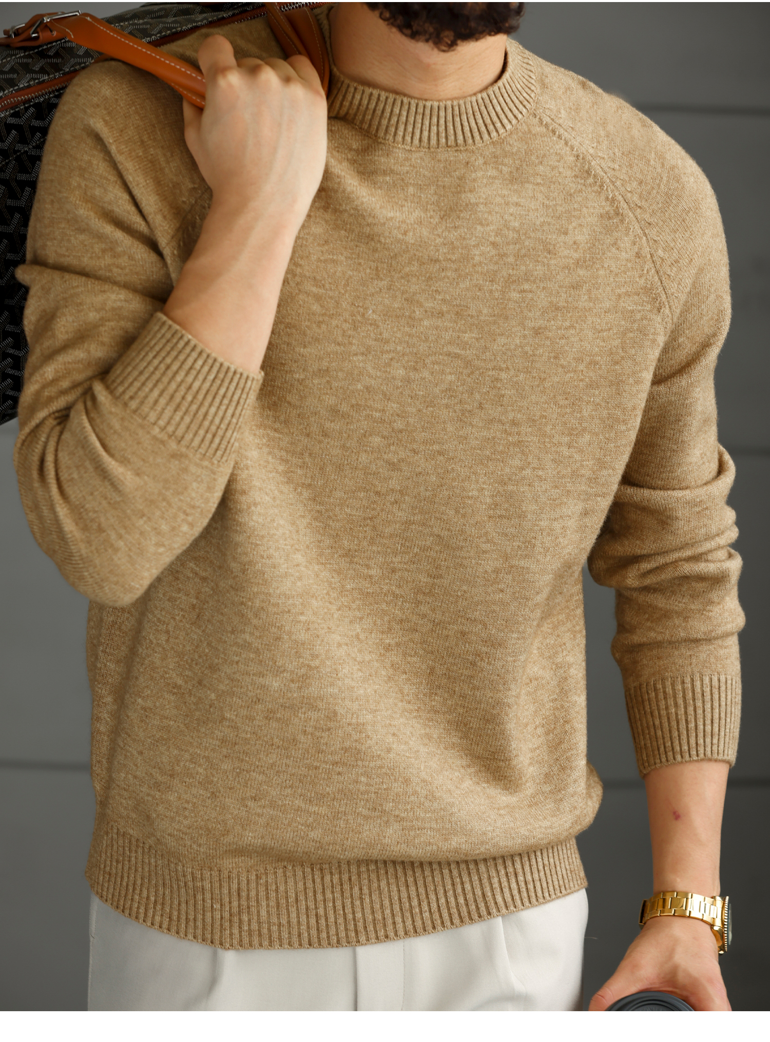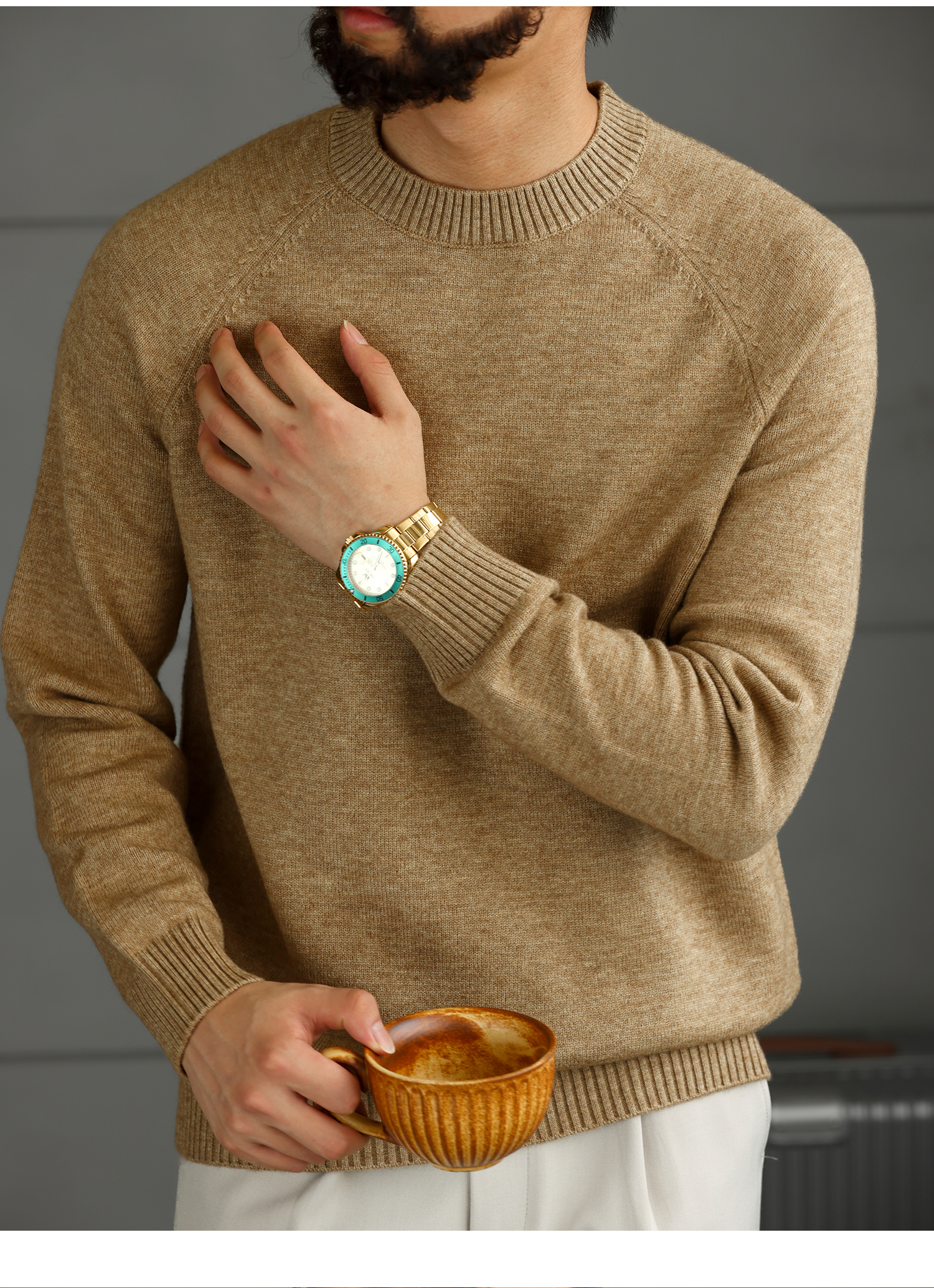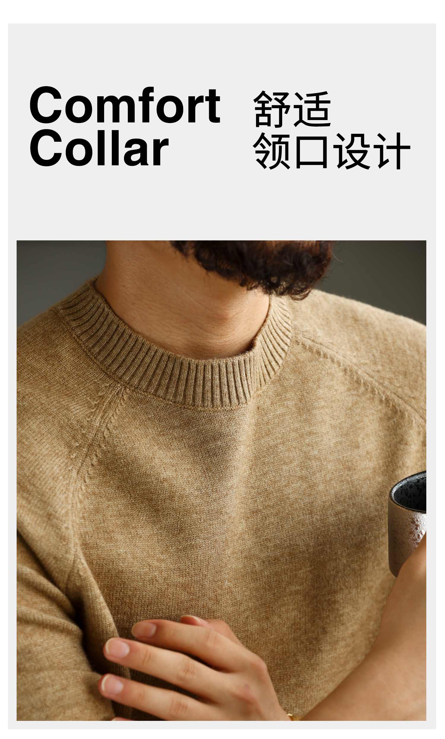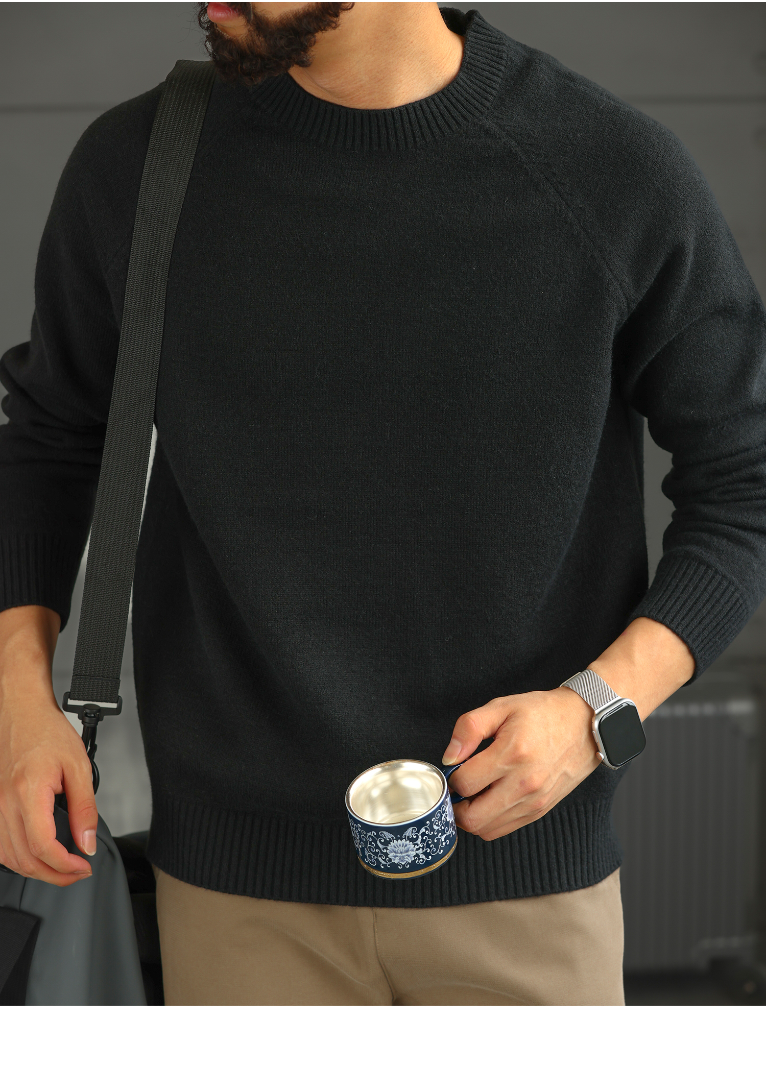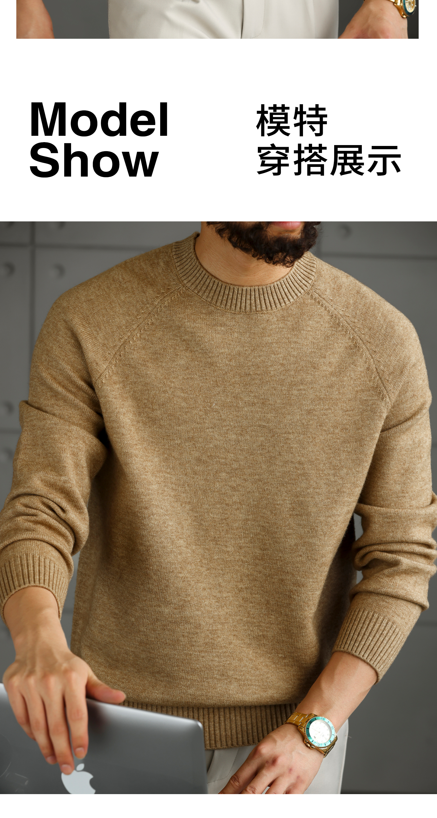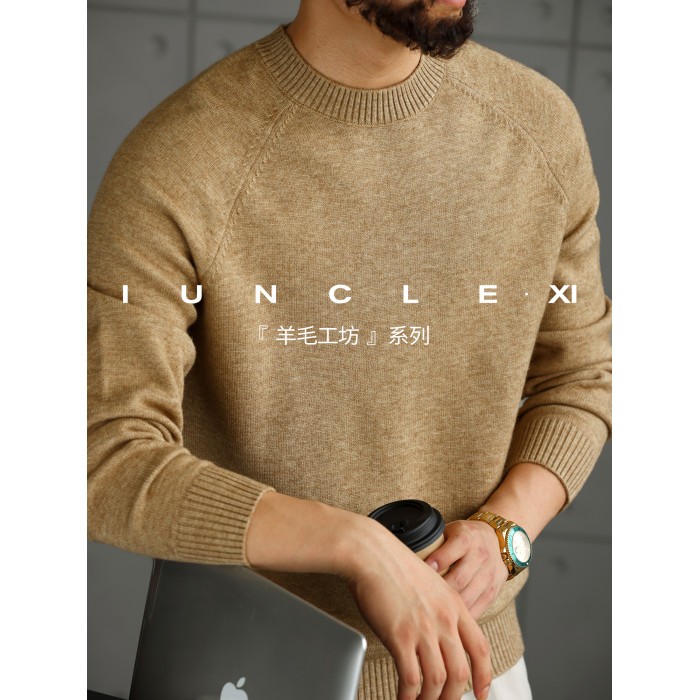 IUNCLEXI【羊毛工坊】抗起球圓領毛衣男士秋冬保暖套頭針織打底衫