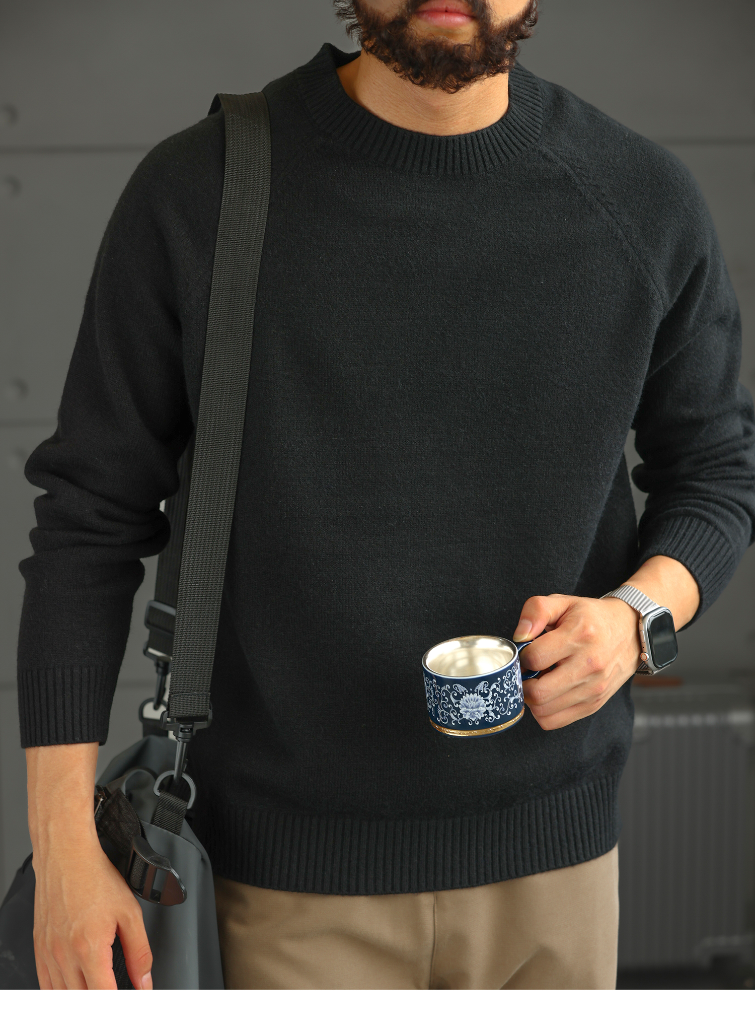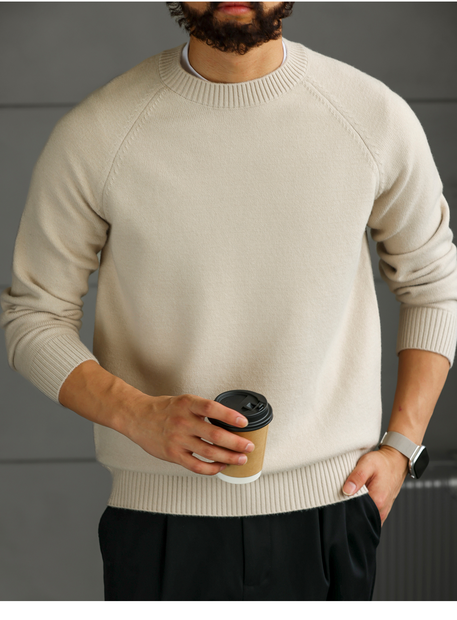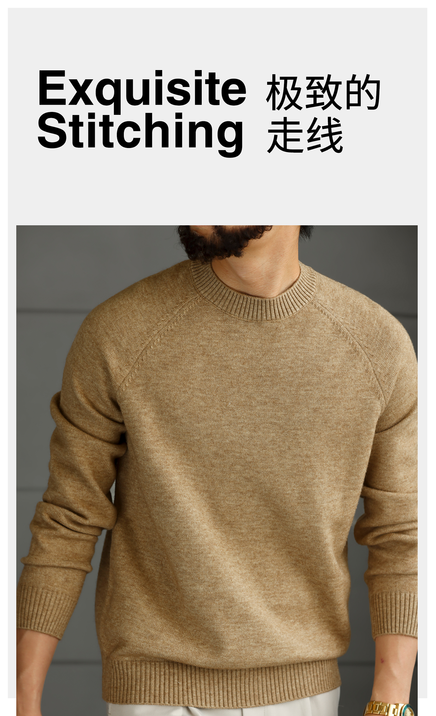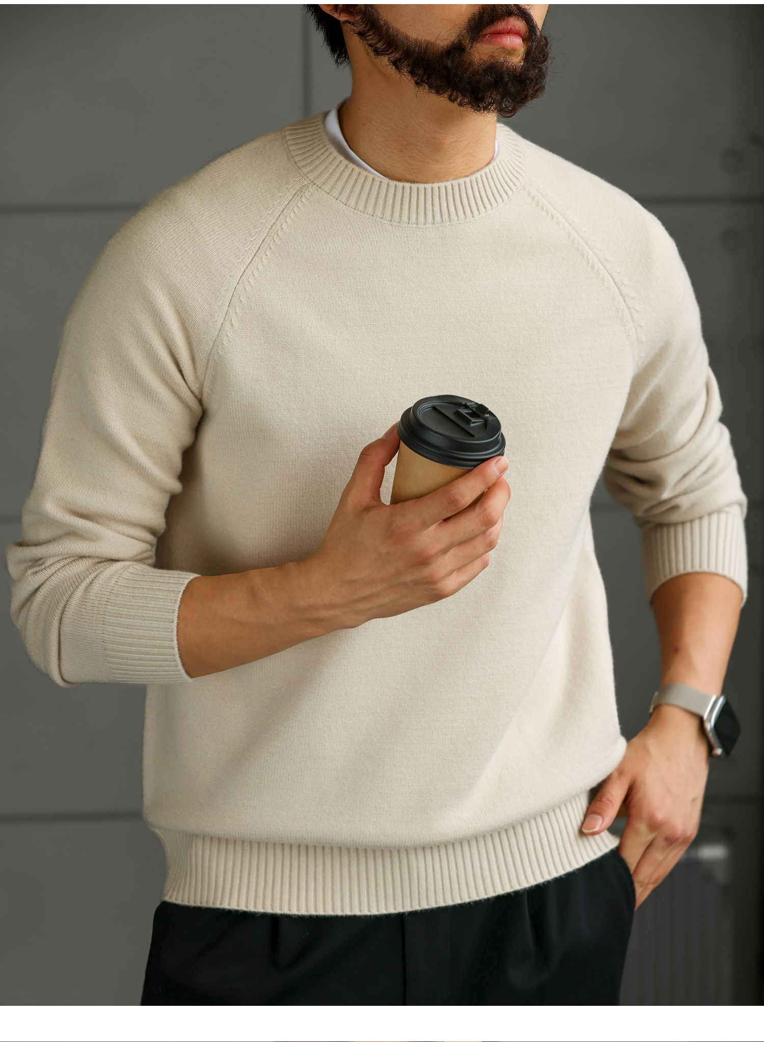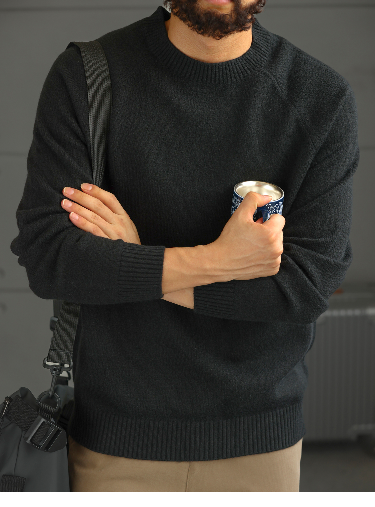 IUNCLEXI【羊毛工坊】抗起球圓領毛衣男士秋冬保暖套頭針織打底衫