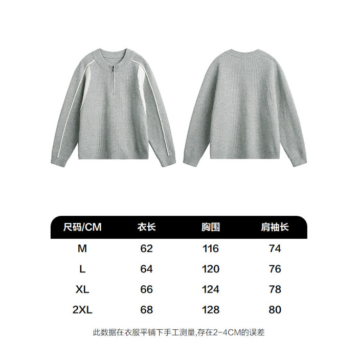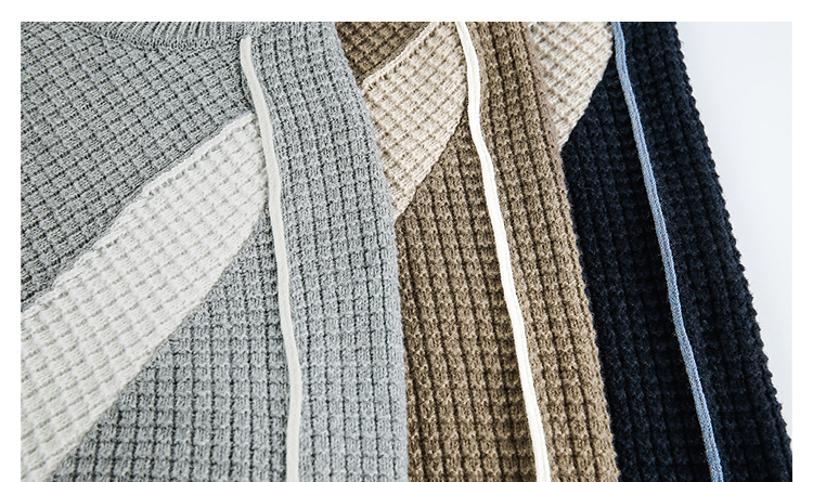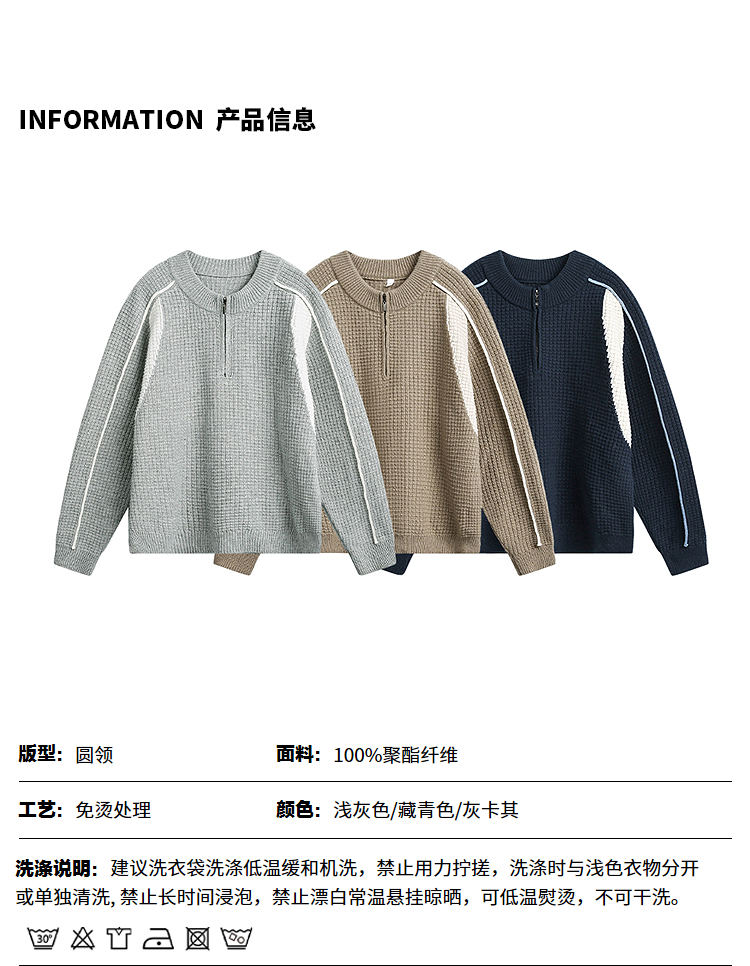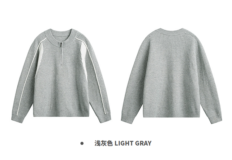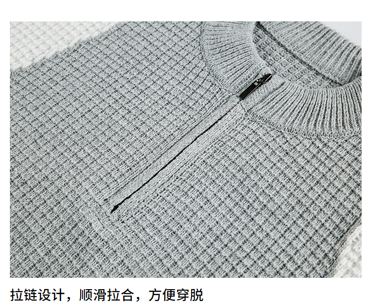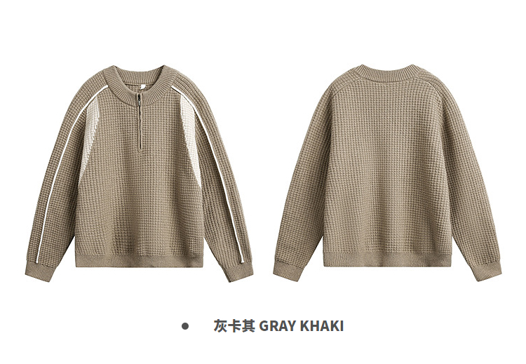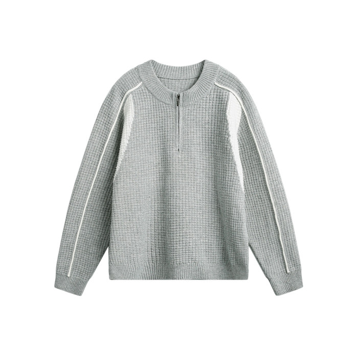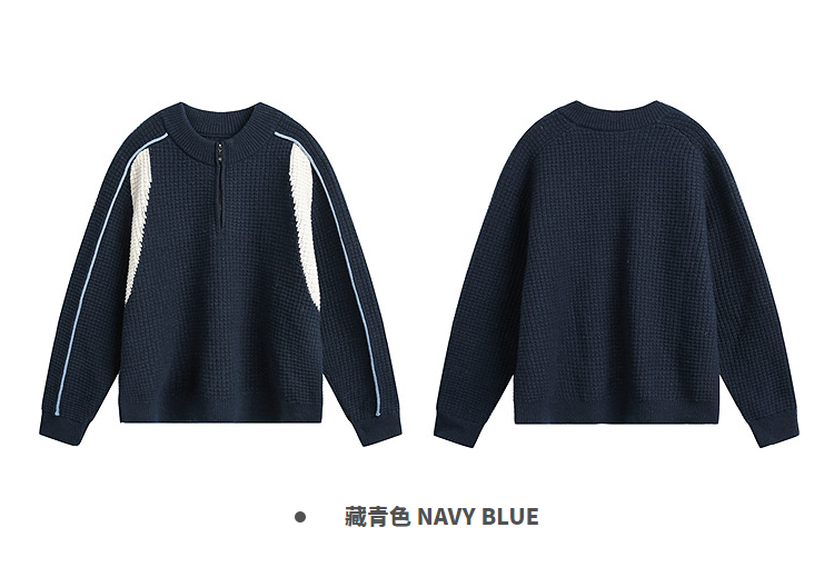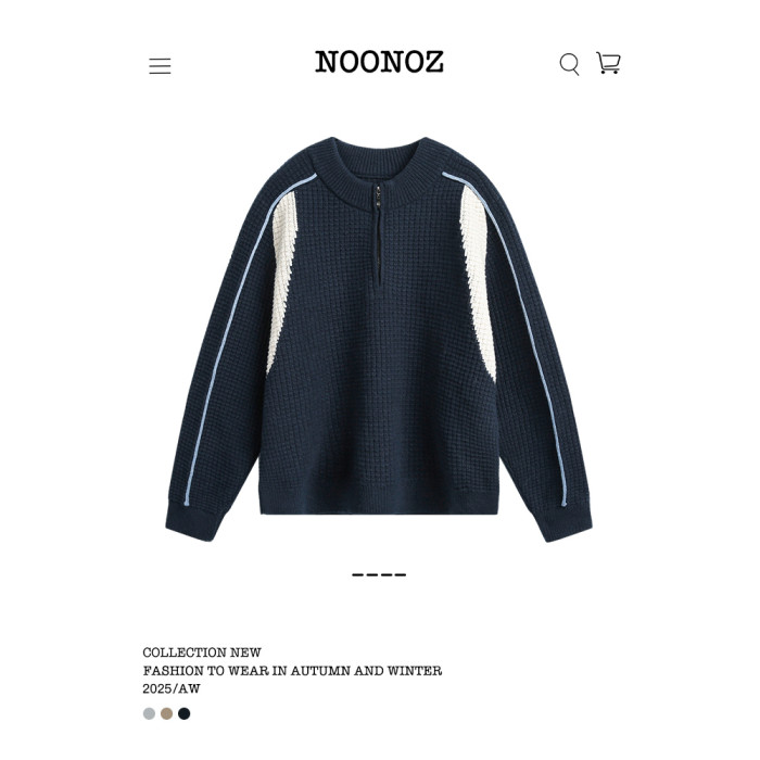NOONOZ華夫格拼色半拉鍊毛衣男秋冬潮牌氛圍感保暖中性風針織上衣