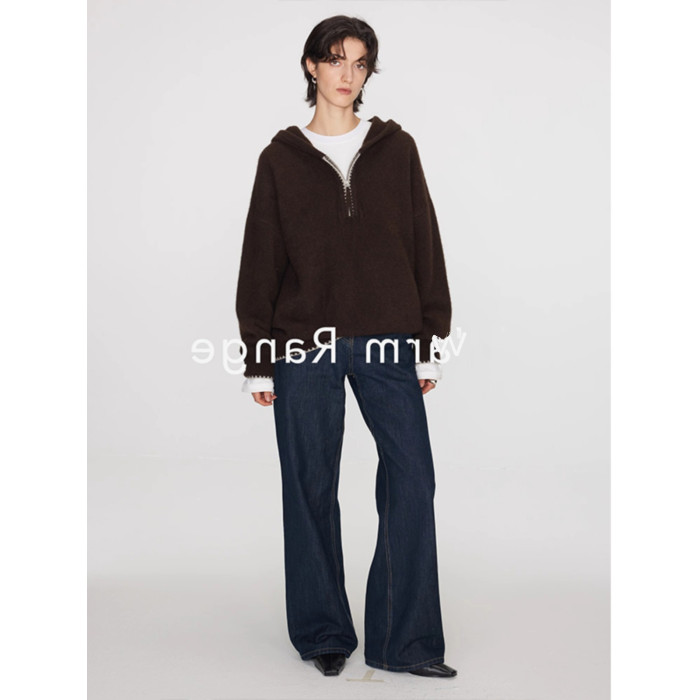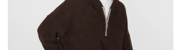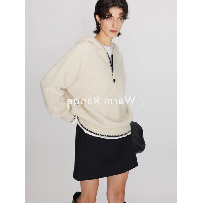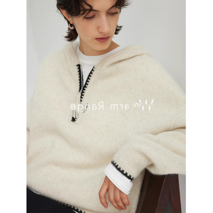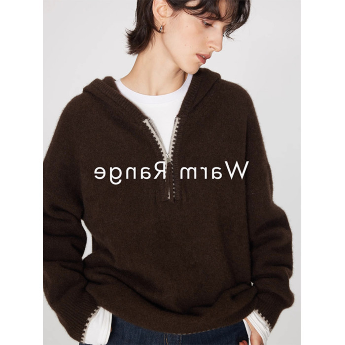 半拉鍊連帽毛衣女秋冬老錢風穿搭慵懶寬松套頭針織衫內搭帽衫上衣