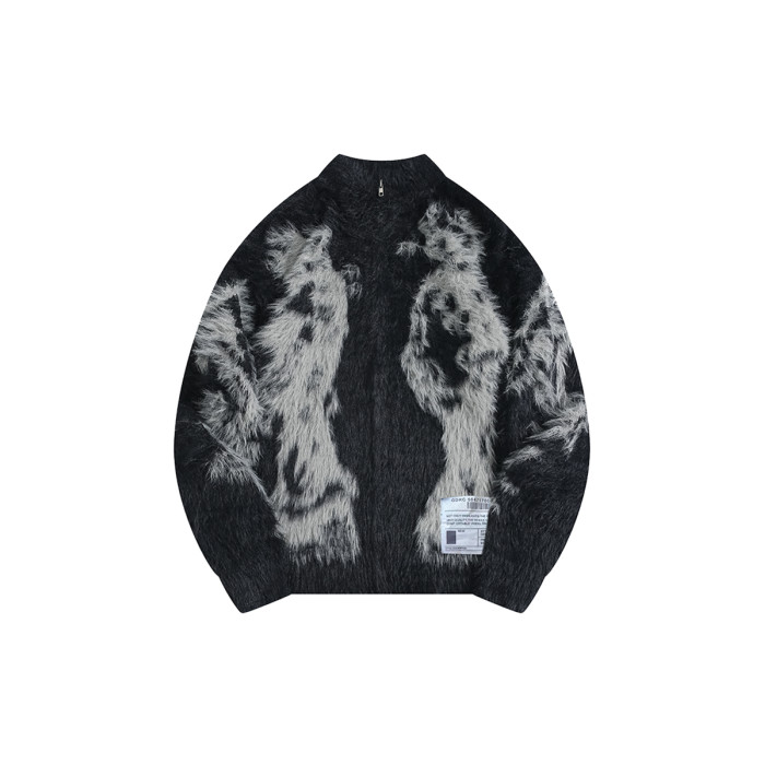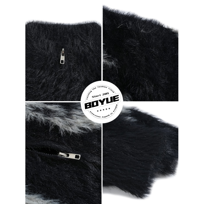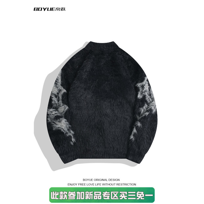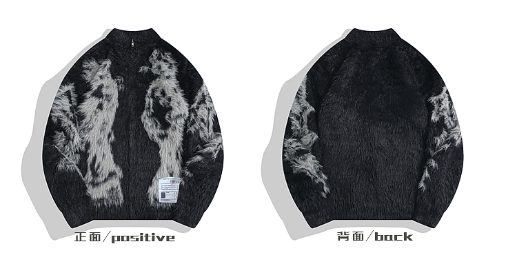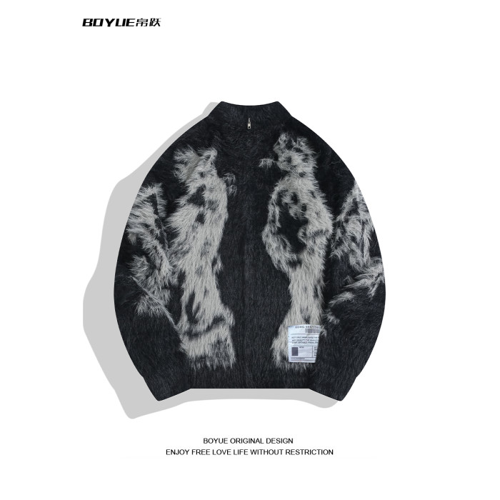 BOYUE帛躍美式黑色小衆提花拉鍊針織衫個性休閒痞帥毛衣外套男女