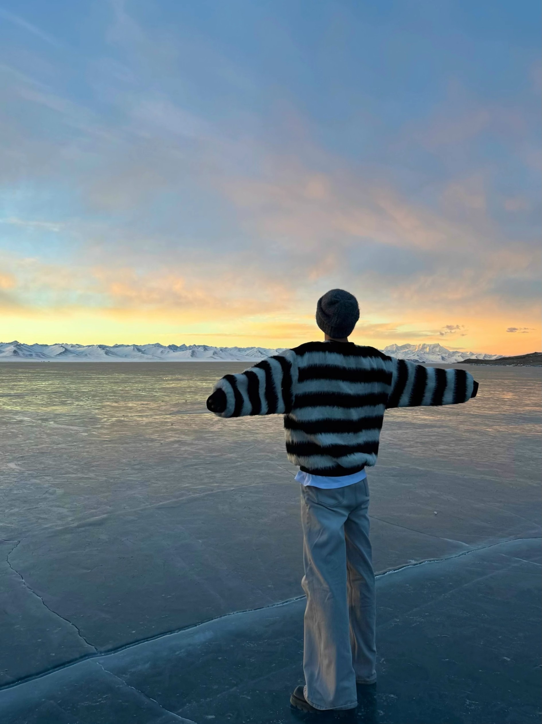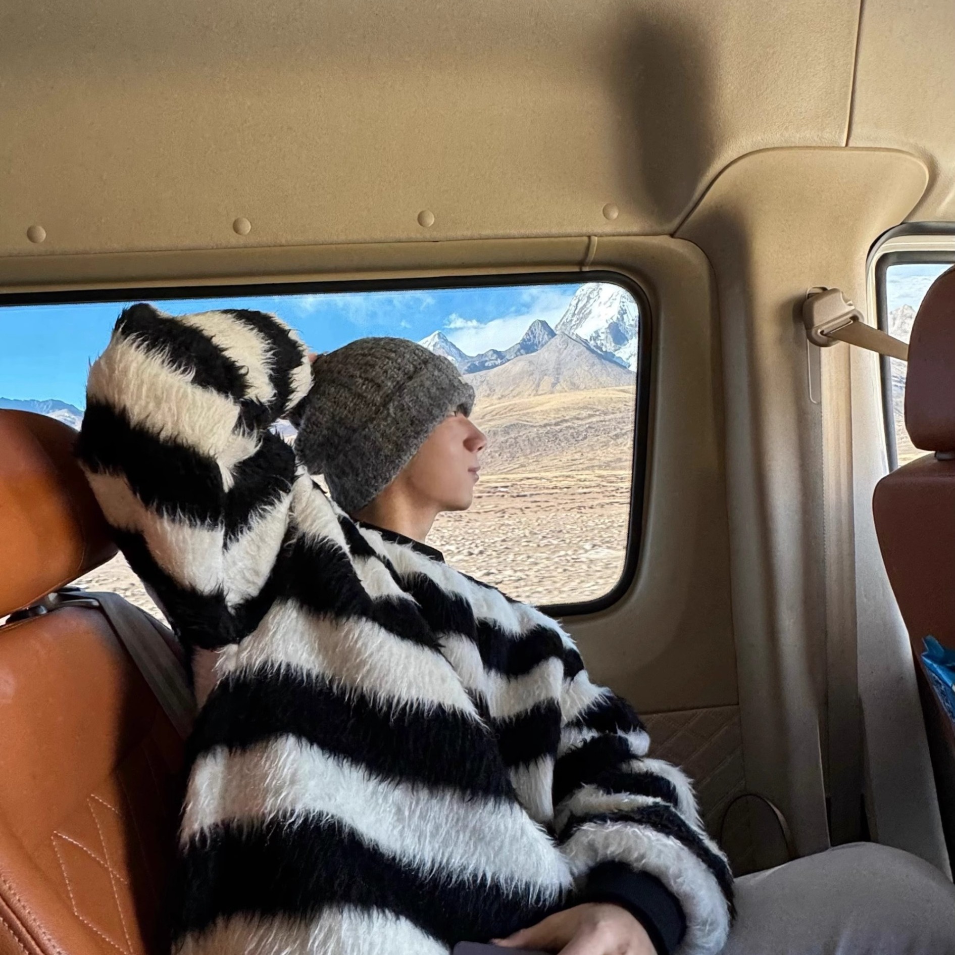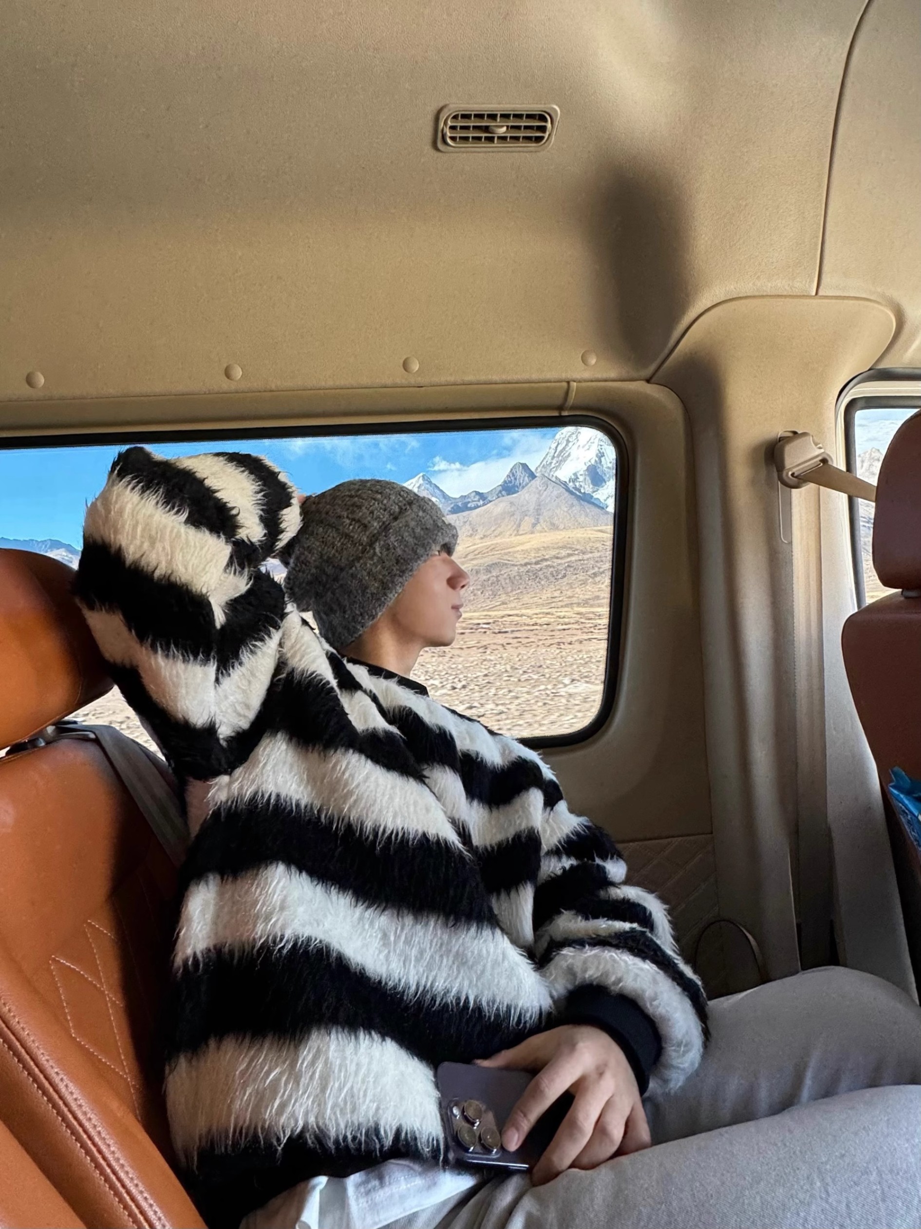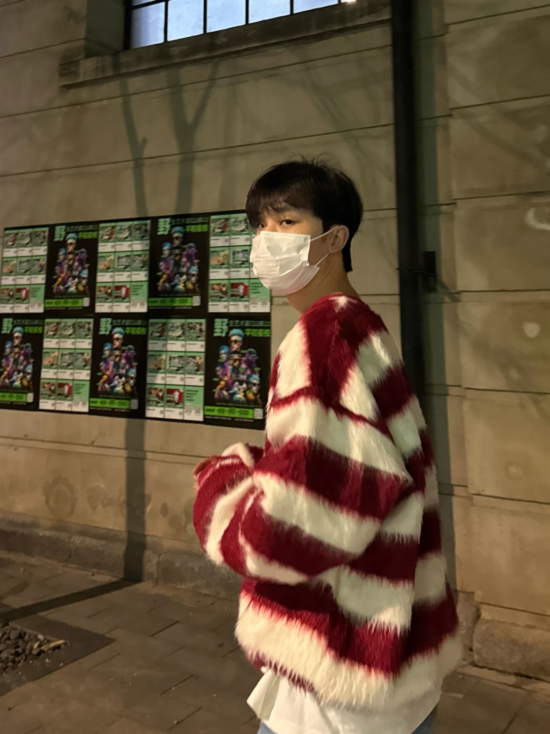 水貂絨條紋情侶毛衣男秋冬季韓版寬松針織衫oversize圓領軟糯上衣