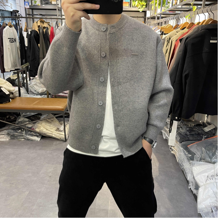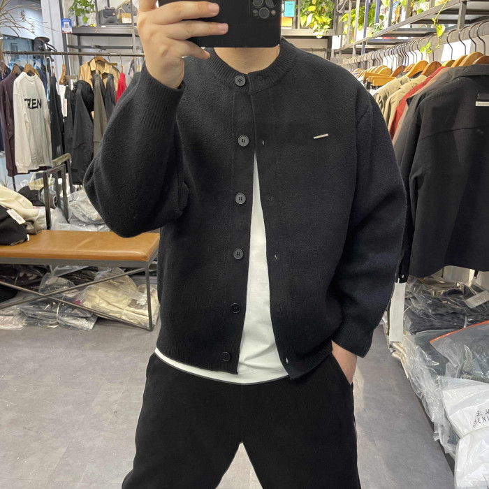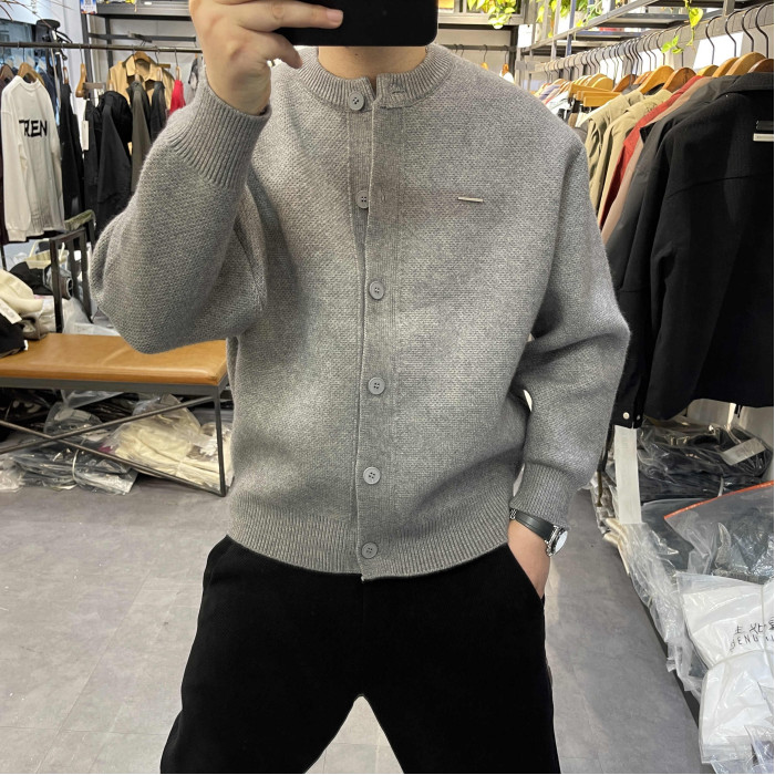 美式復古圓領針織開衫男秋冬季加厚時尚潮流韓版寬松帥氣毛衣外套
