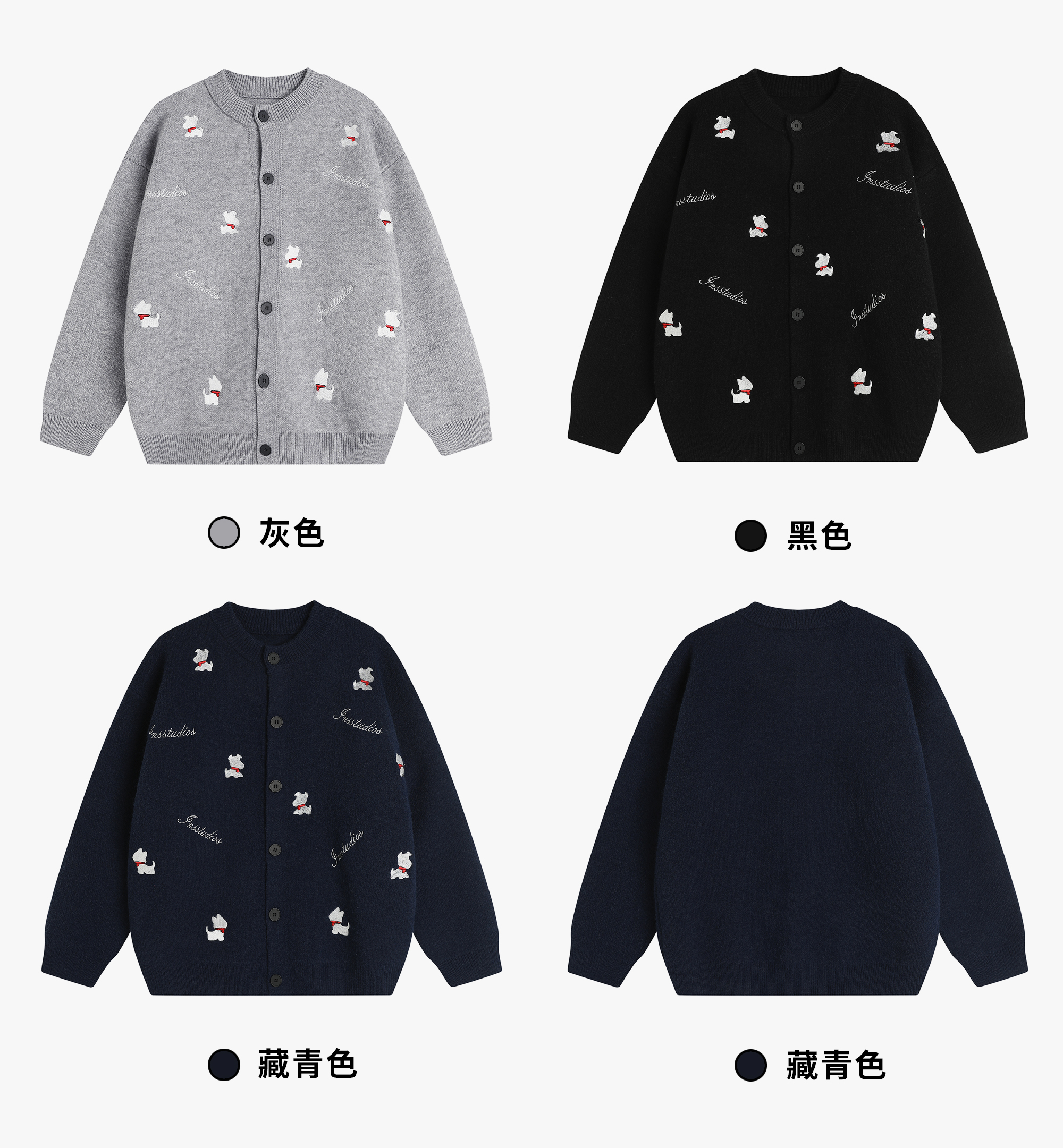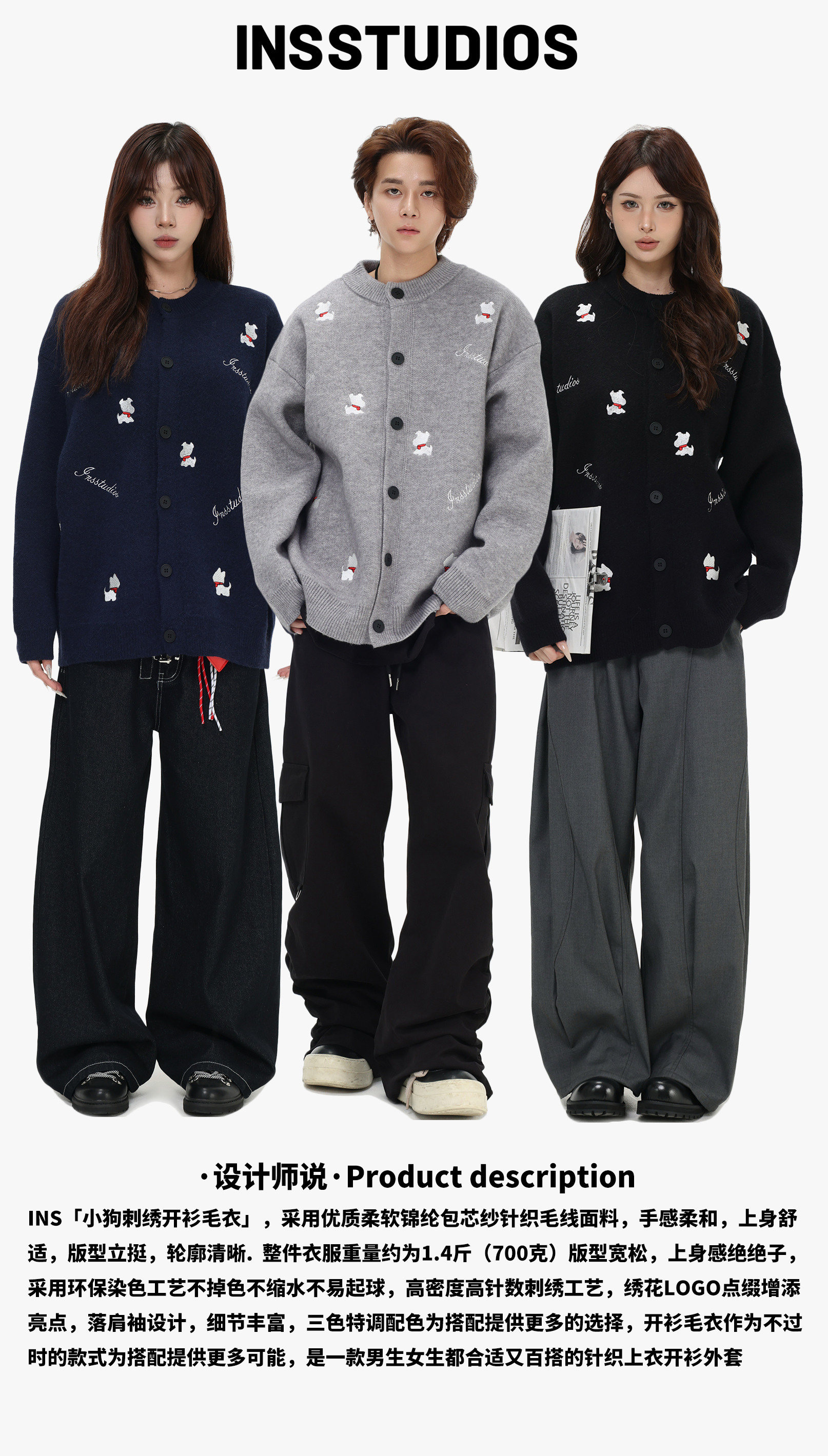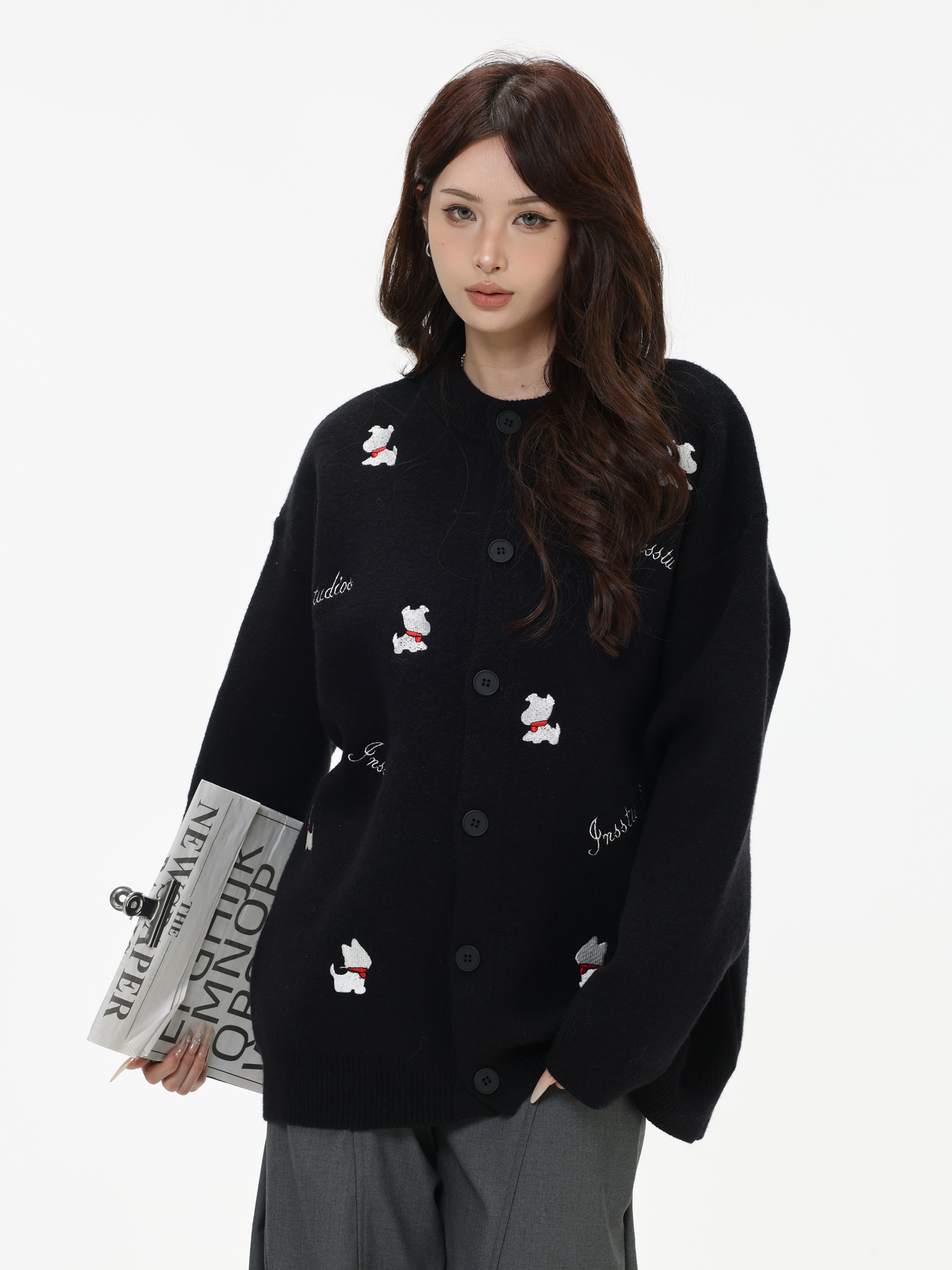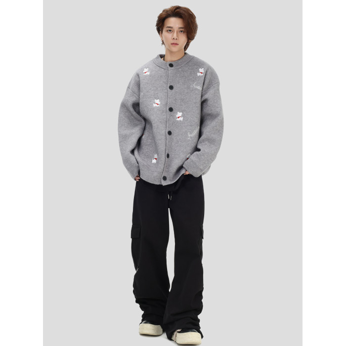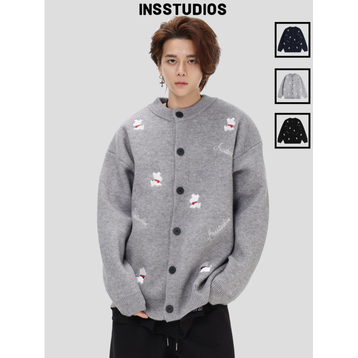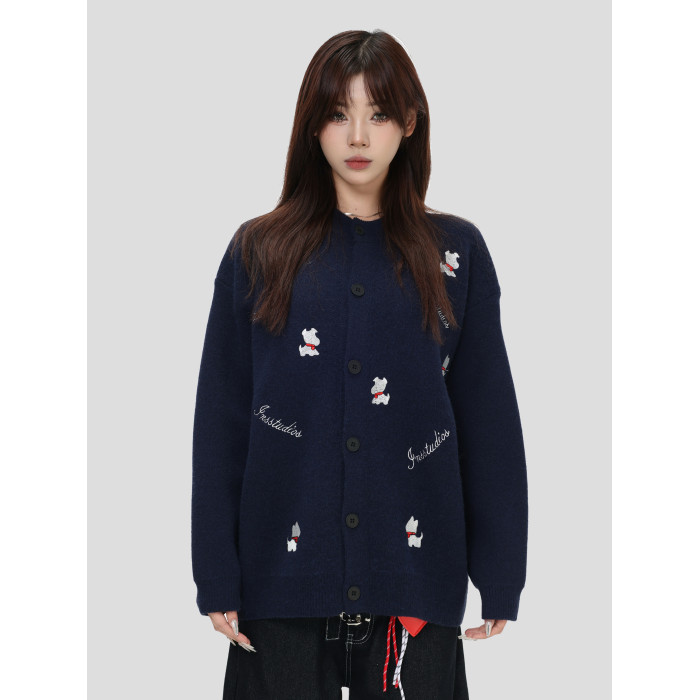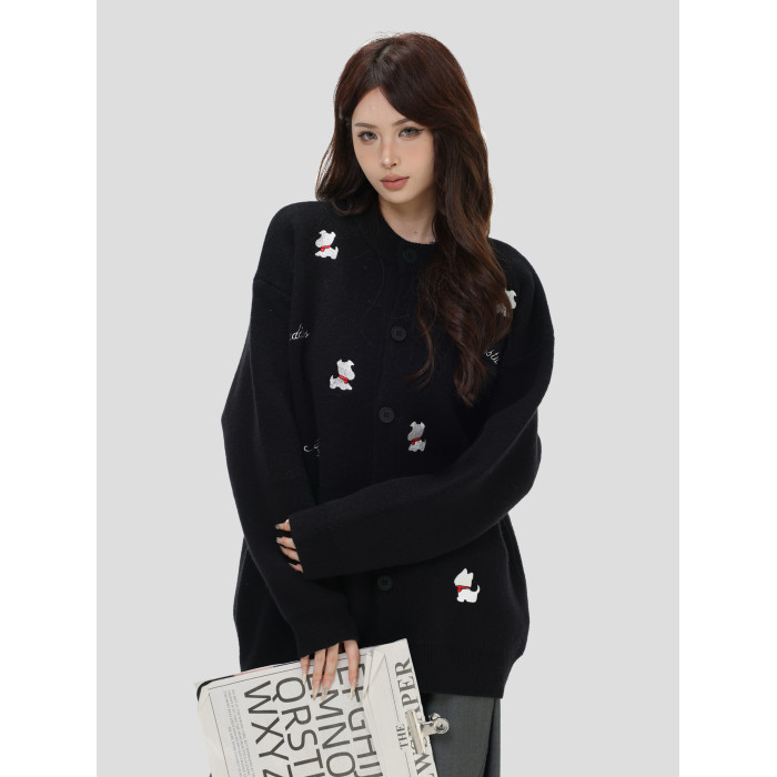 INSstudios 國潮美式「小狗刺綉開衫毛衣」寬松休閒百搭針織外套