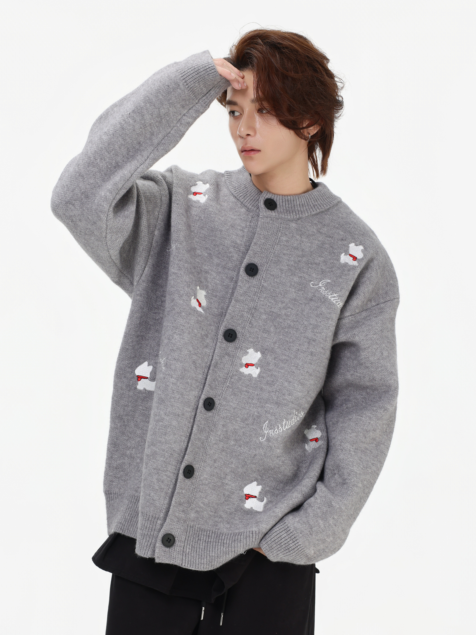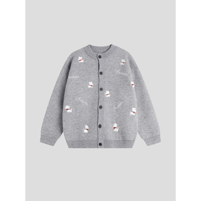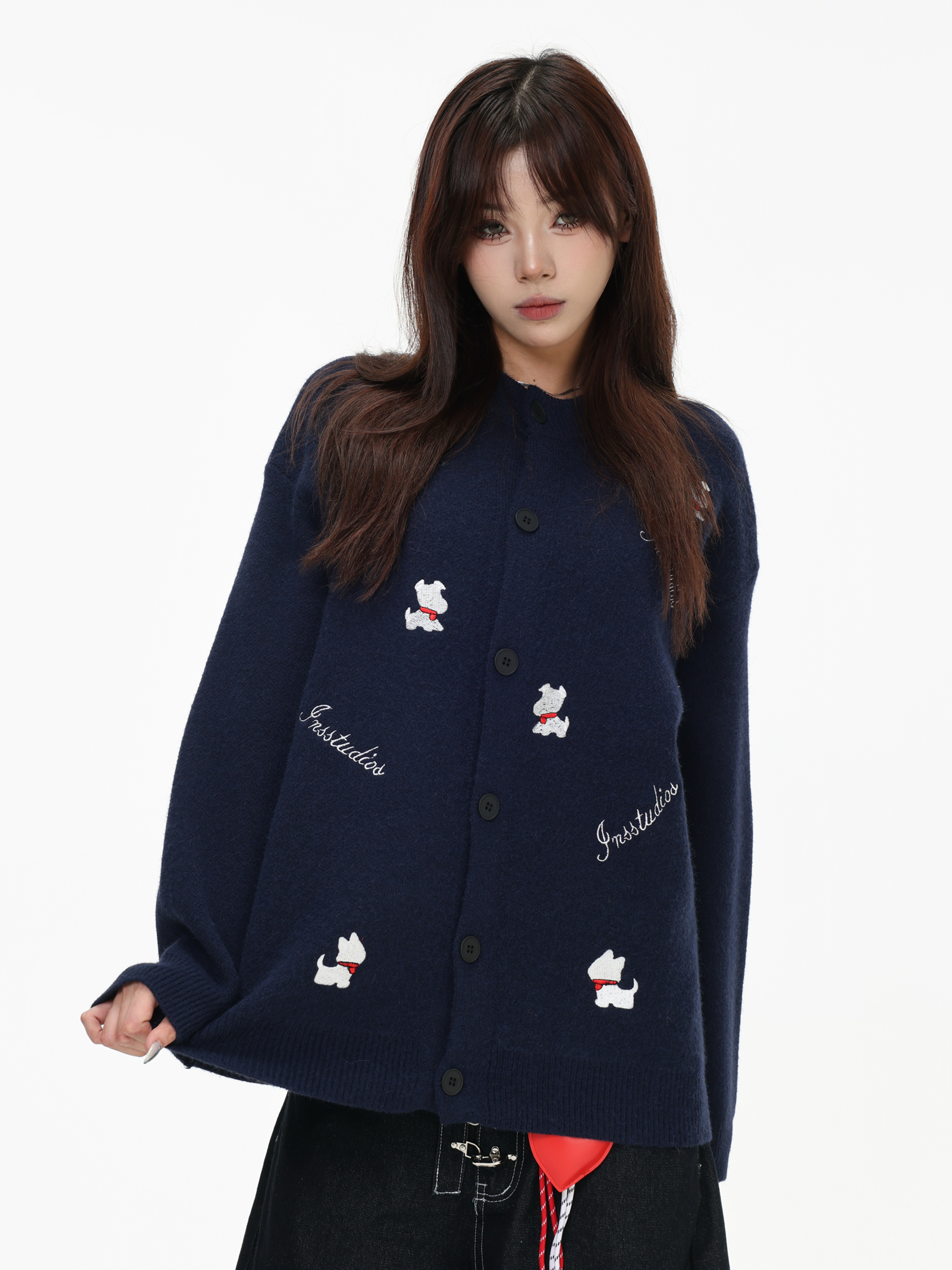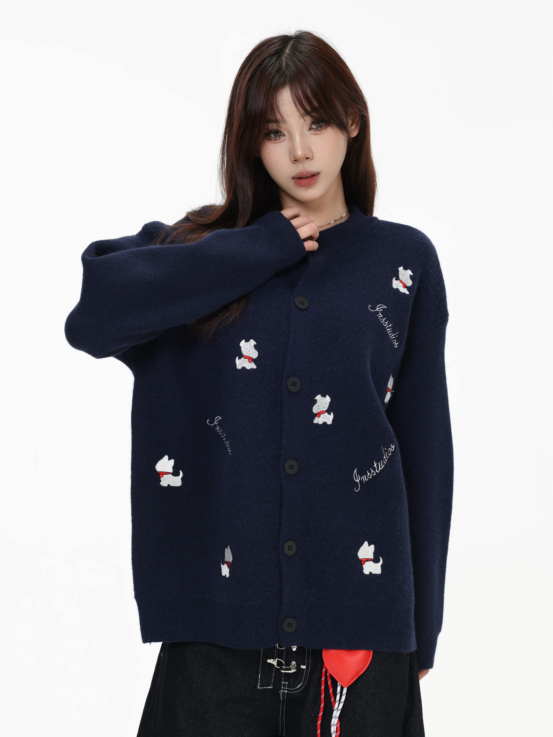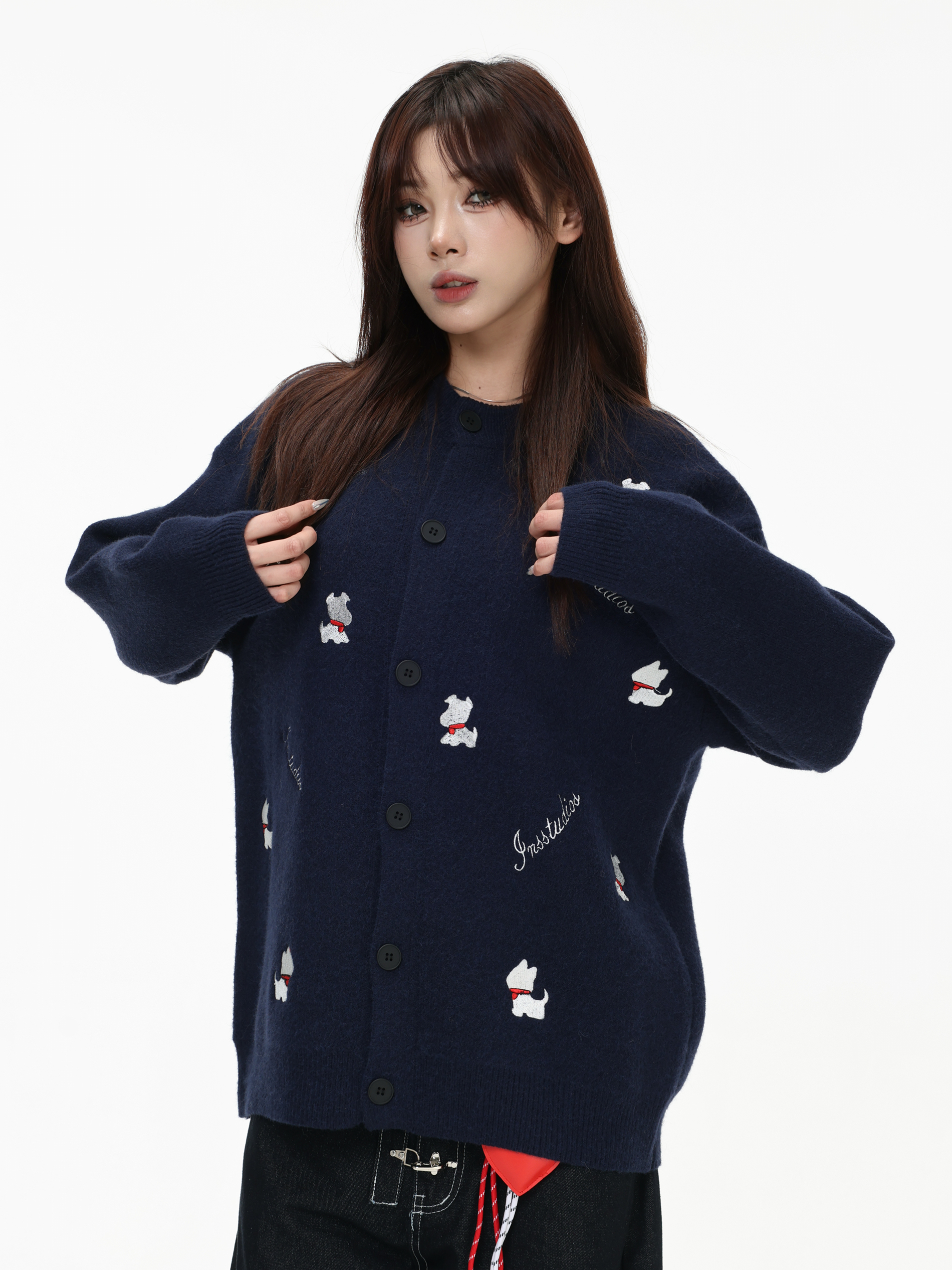 INSstudios 國潮美式「小狗刺綉開衫毛衣」寬松休閒百搭針織外套