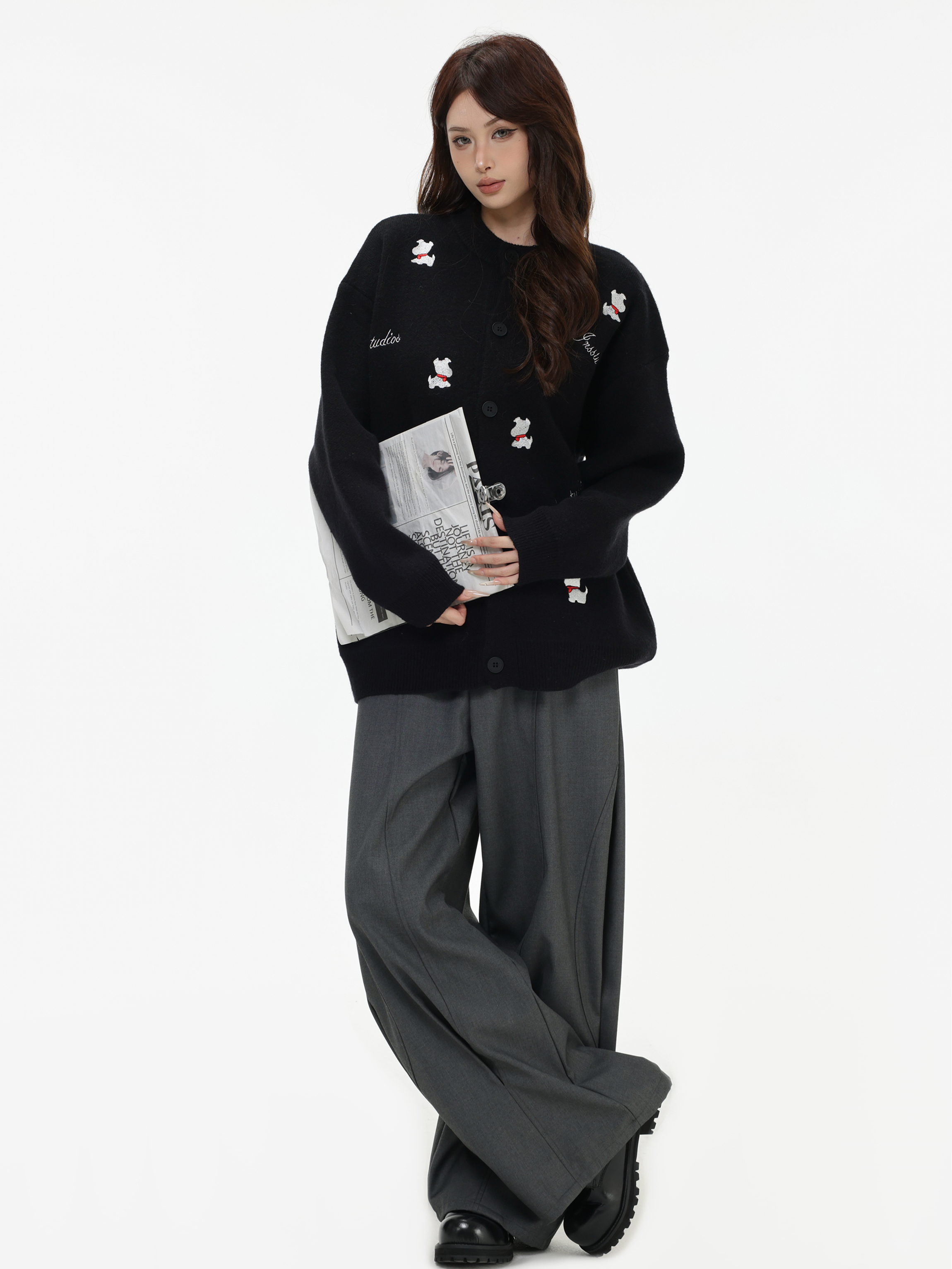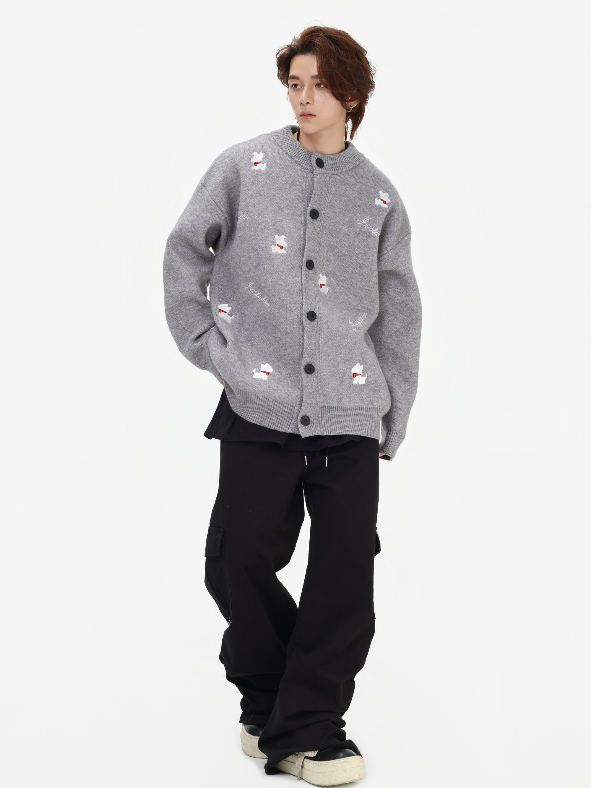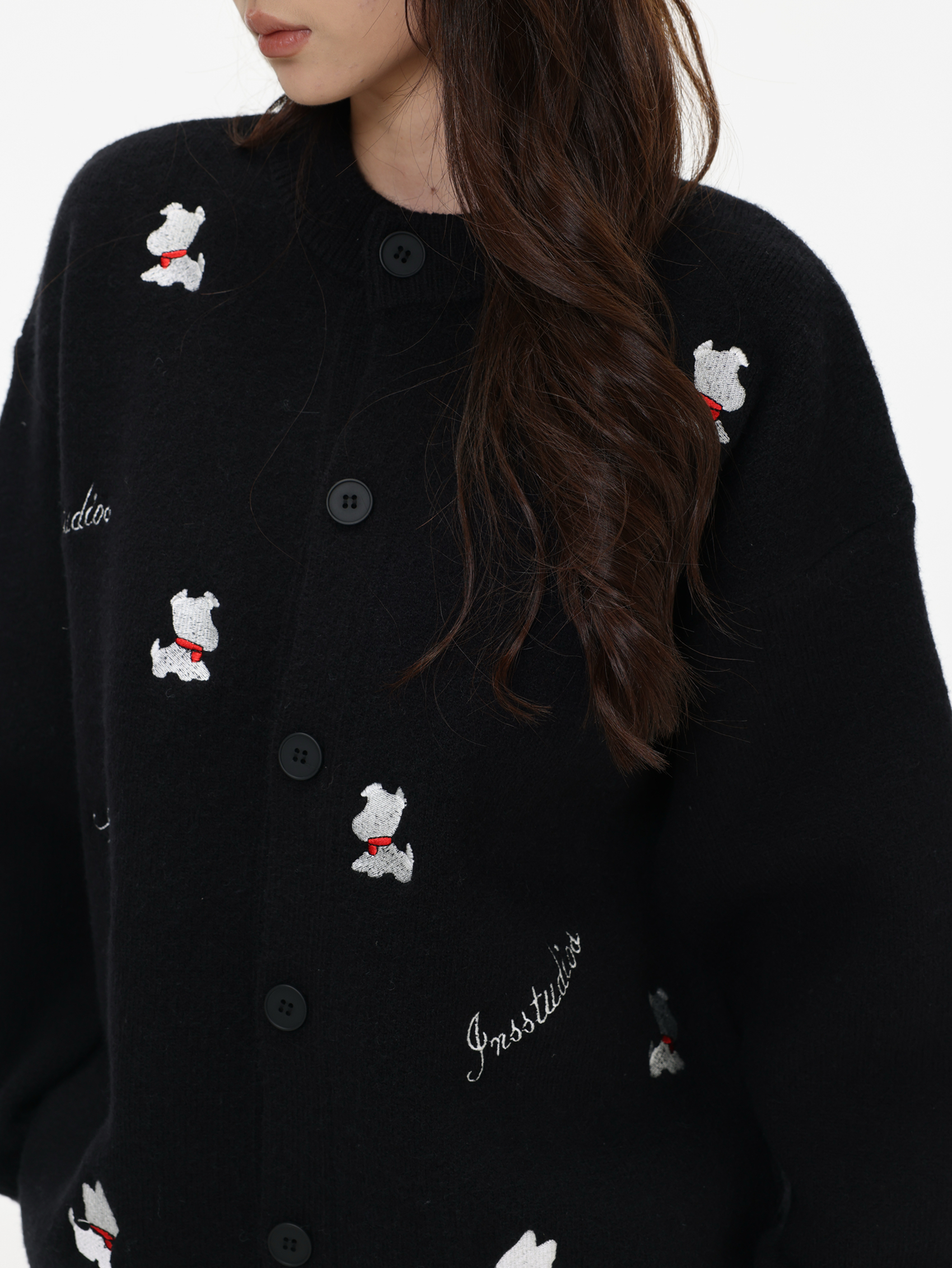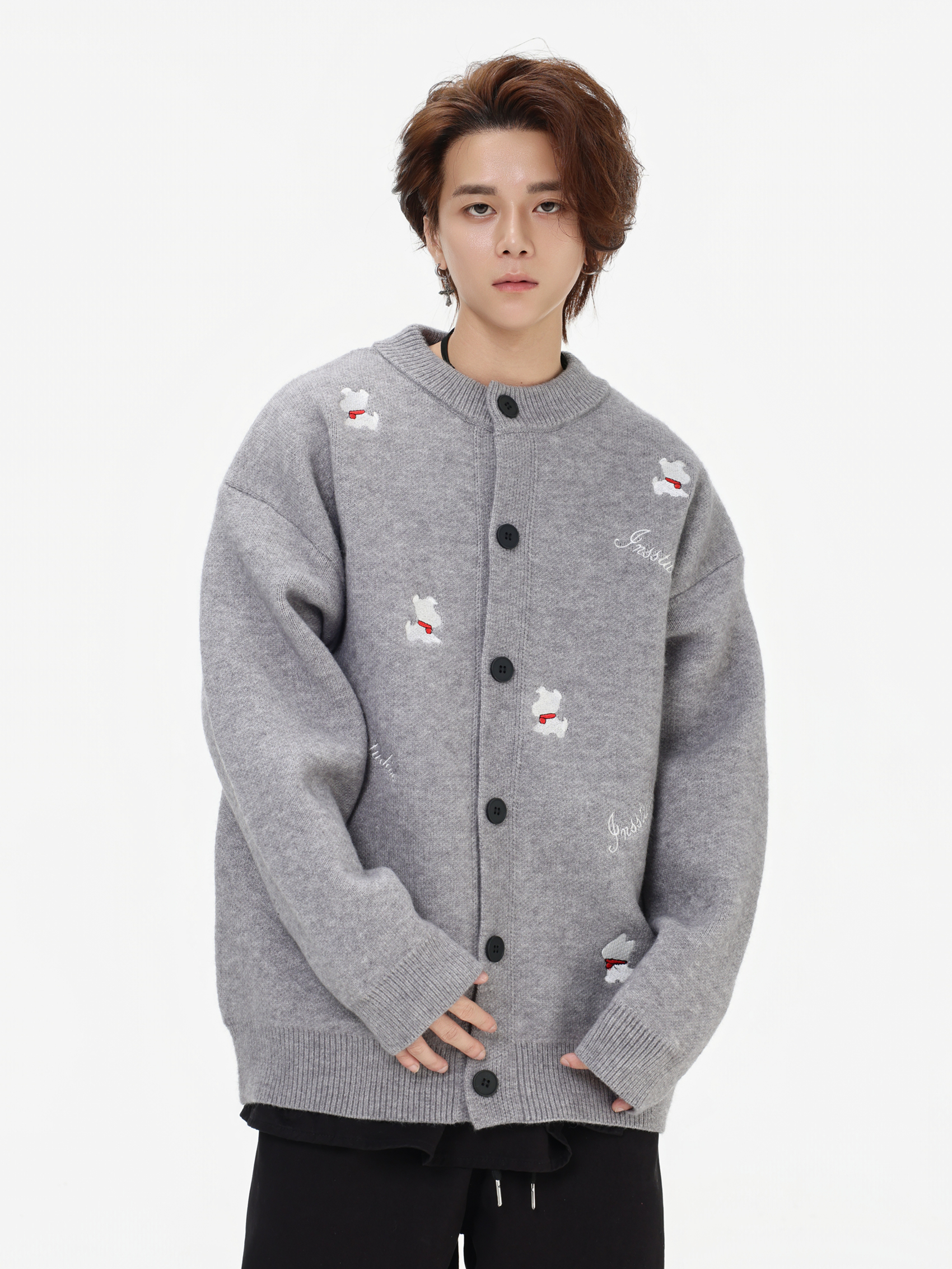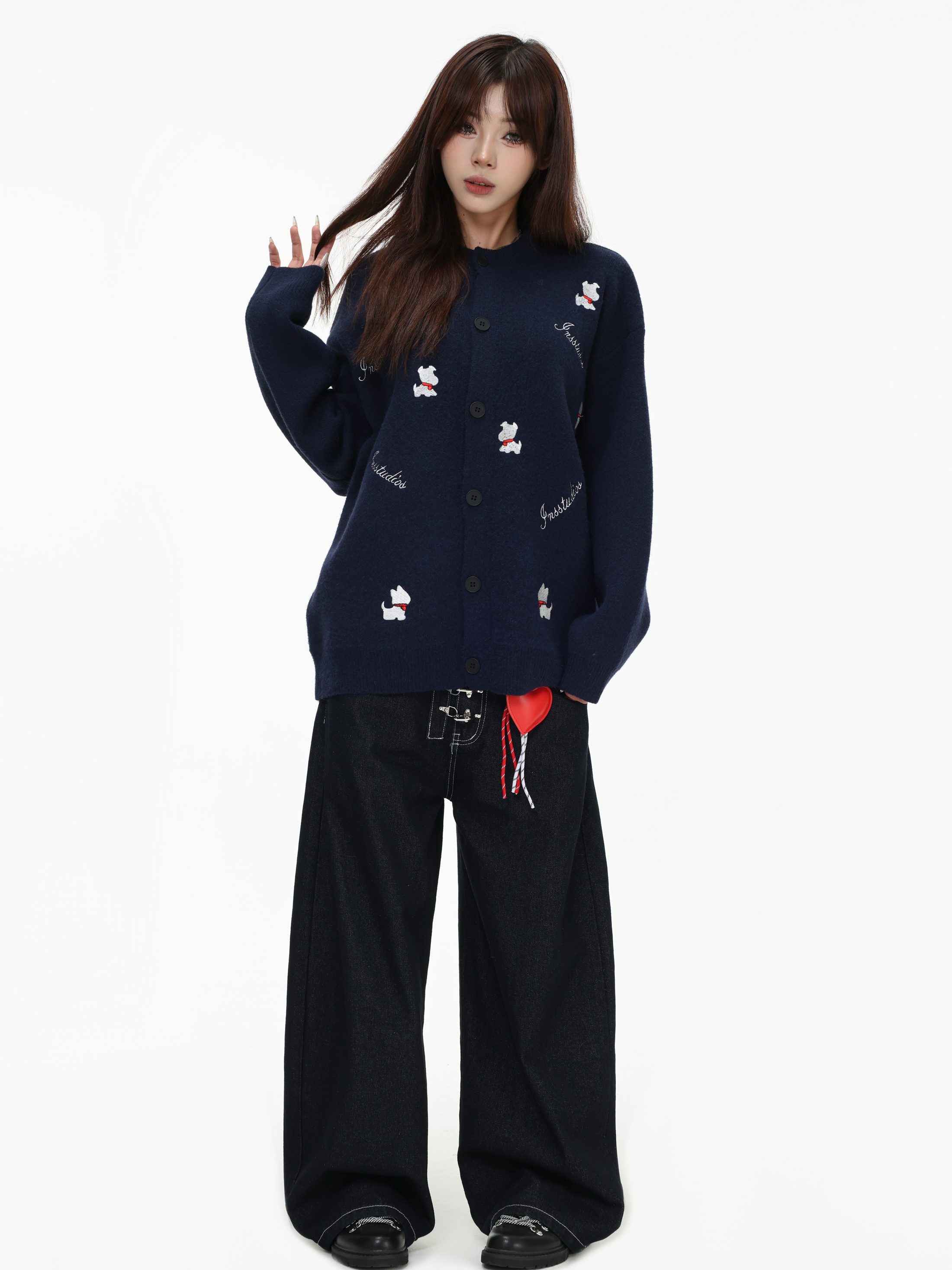 INSstudios 國潮美式「小狗刺綉開衫毛衣」寬松休閒百搭針織外套