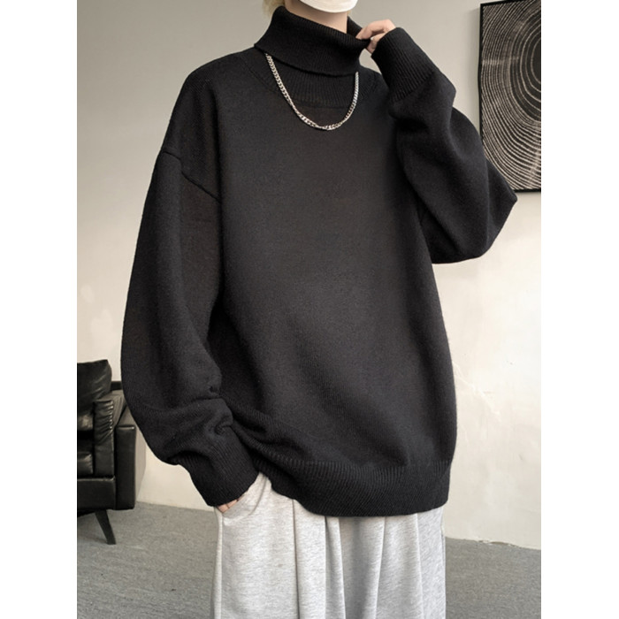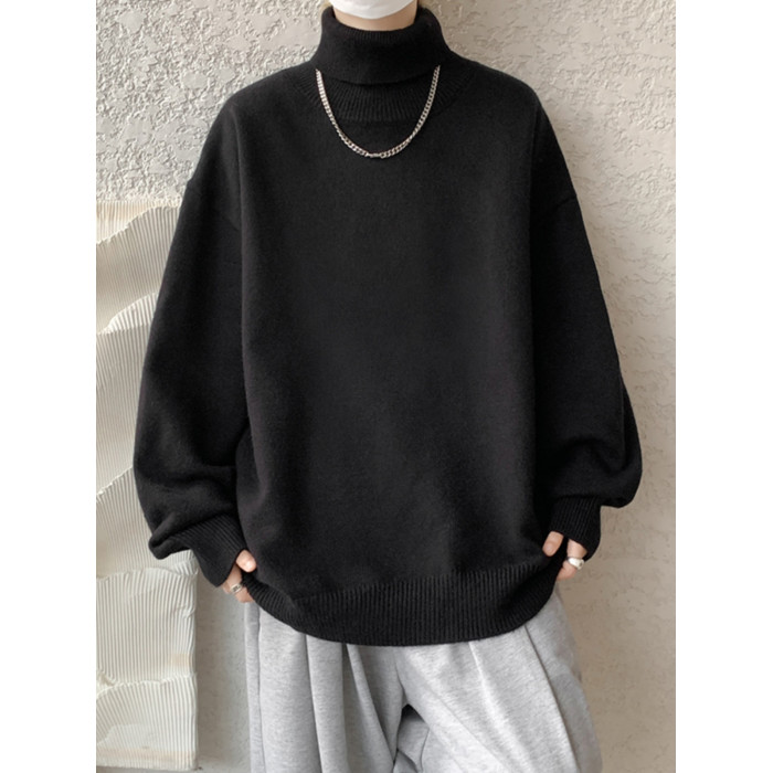 港風cleanfit可翻高領毛衣男冬季加厚特大碼冬裝內搭打底衫上衣冬