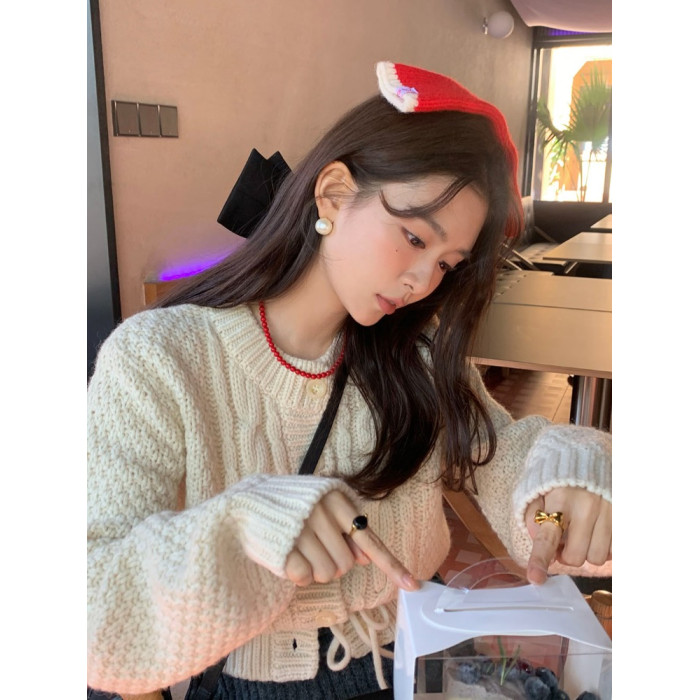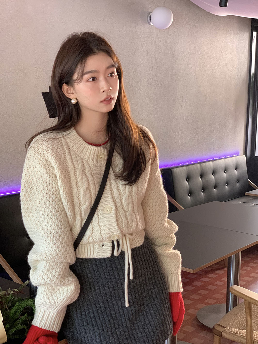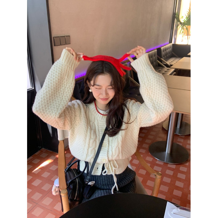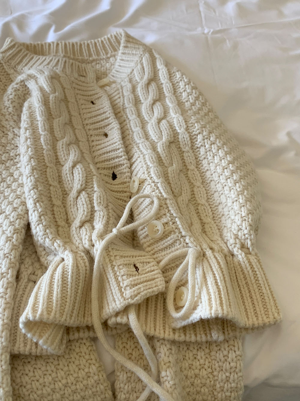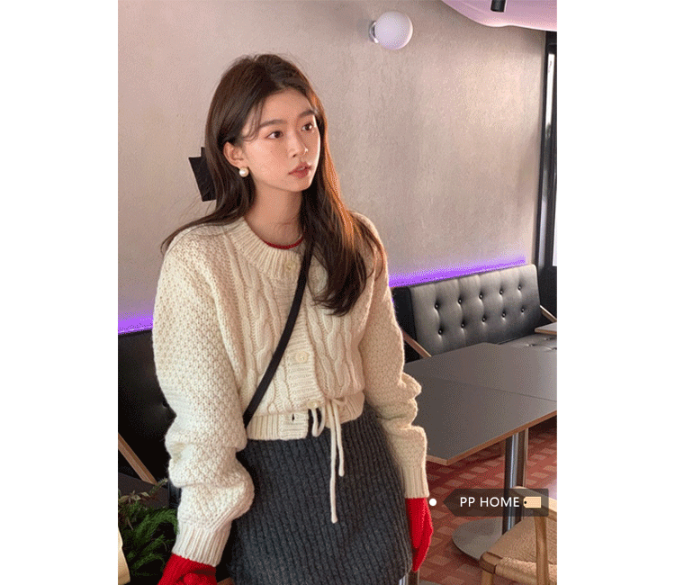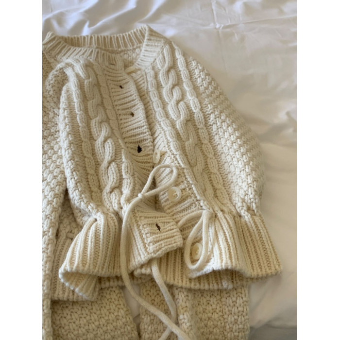 PPHOME溫柔設計感綁帶收腰麻花毛衣女秋冬韓系高級感寬松針織開衫