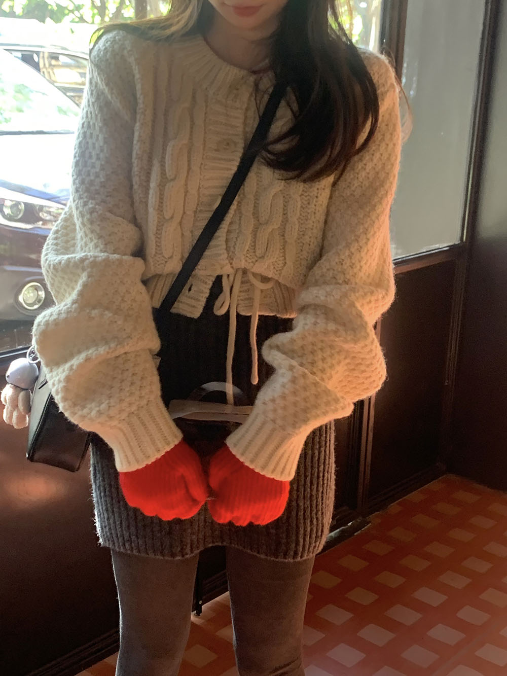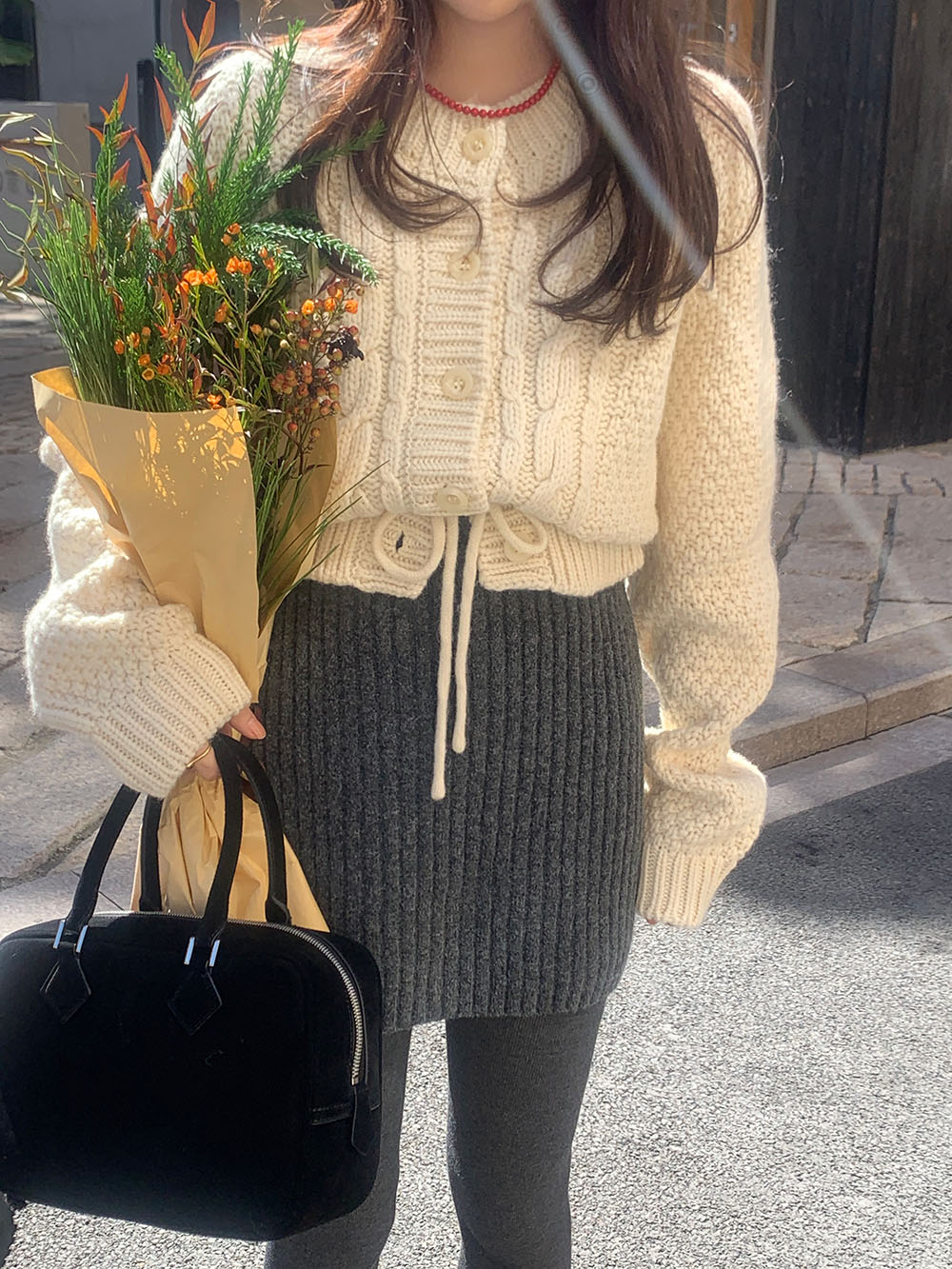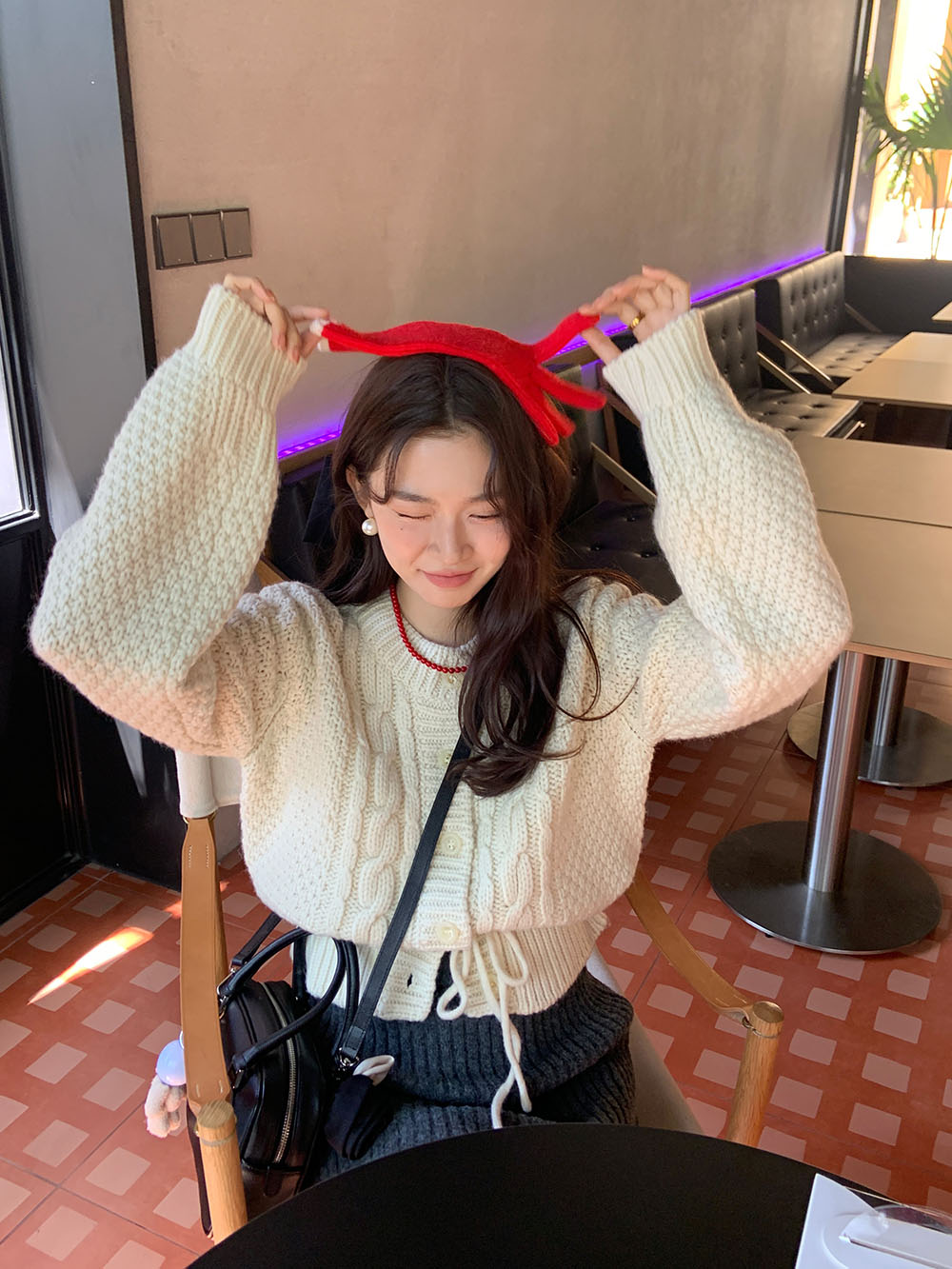 PPHOME溫柔設計感綁帶收腰麻花毛衣女秋冬韓系高級感寬松針織開衫