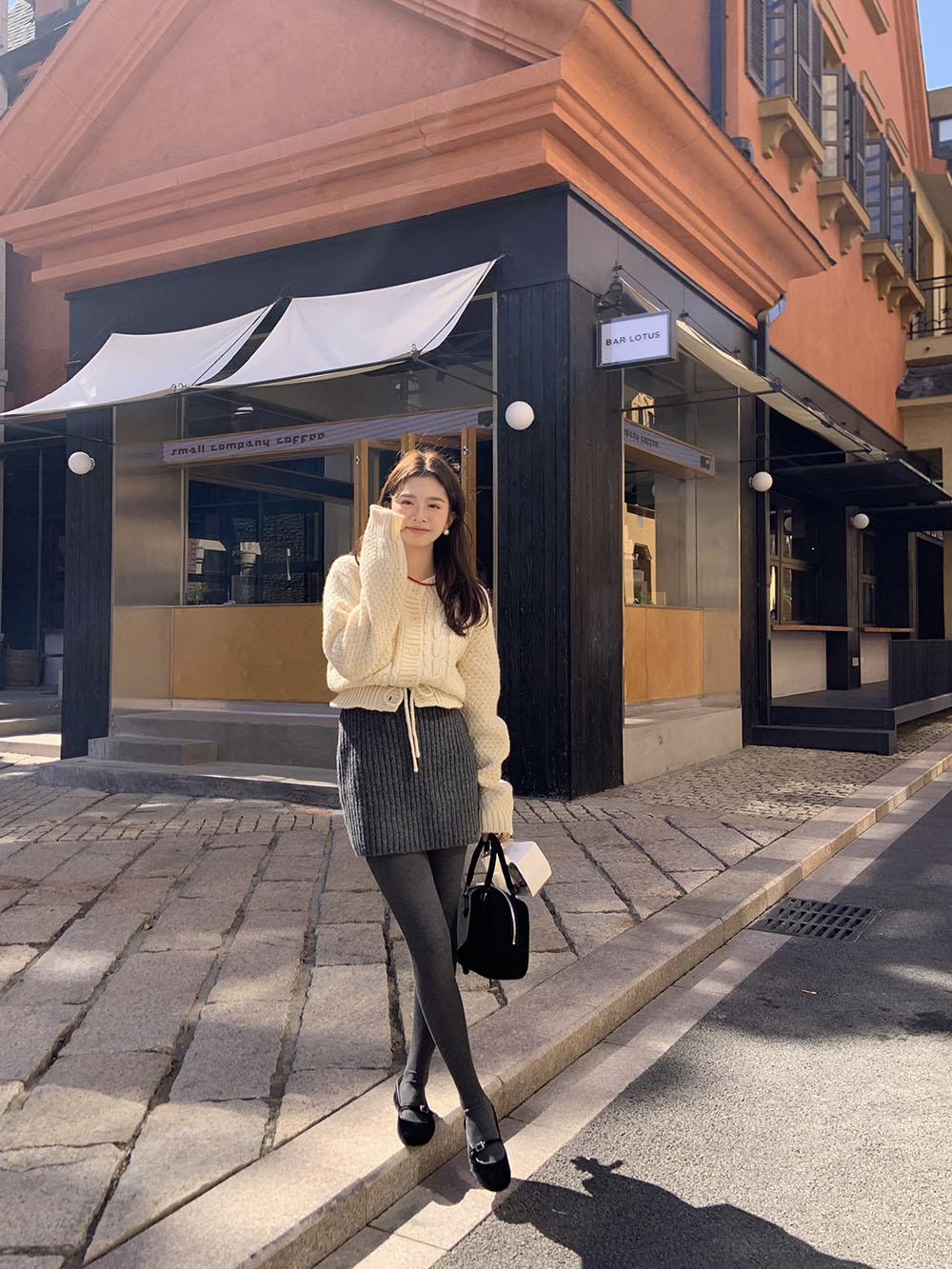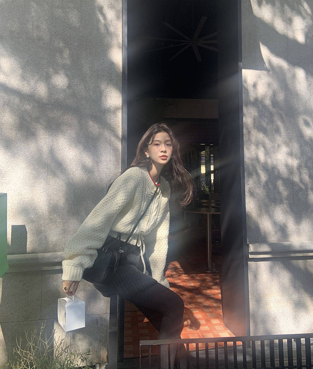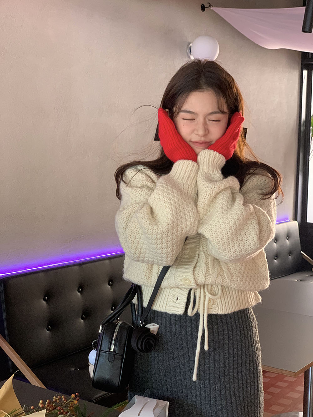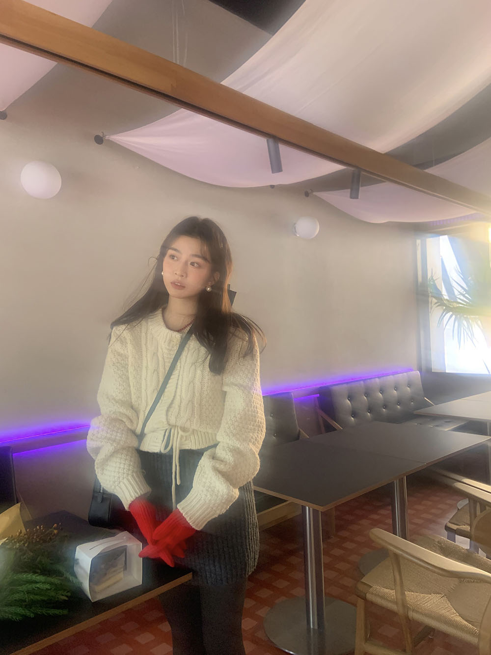 PPHOME溫柔設計感綁帶收腰麻花毛衣女秋冬韓系高級感寬松針織開衫
