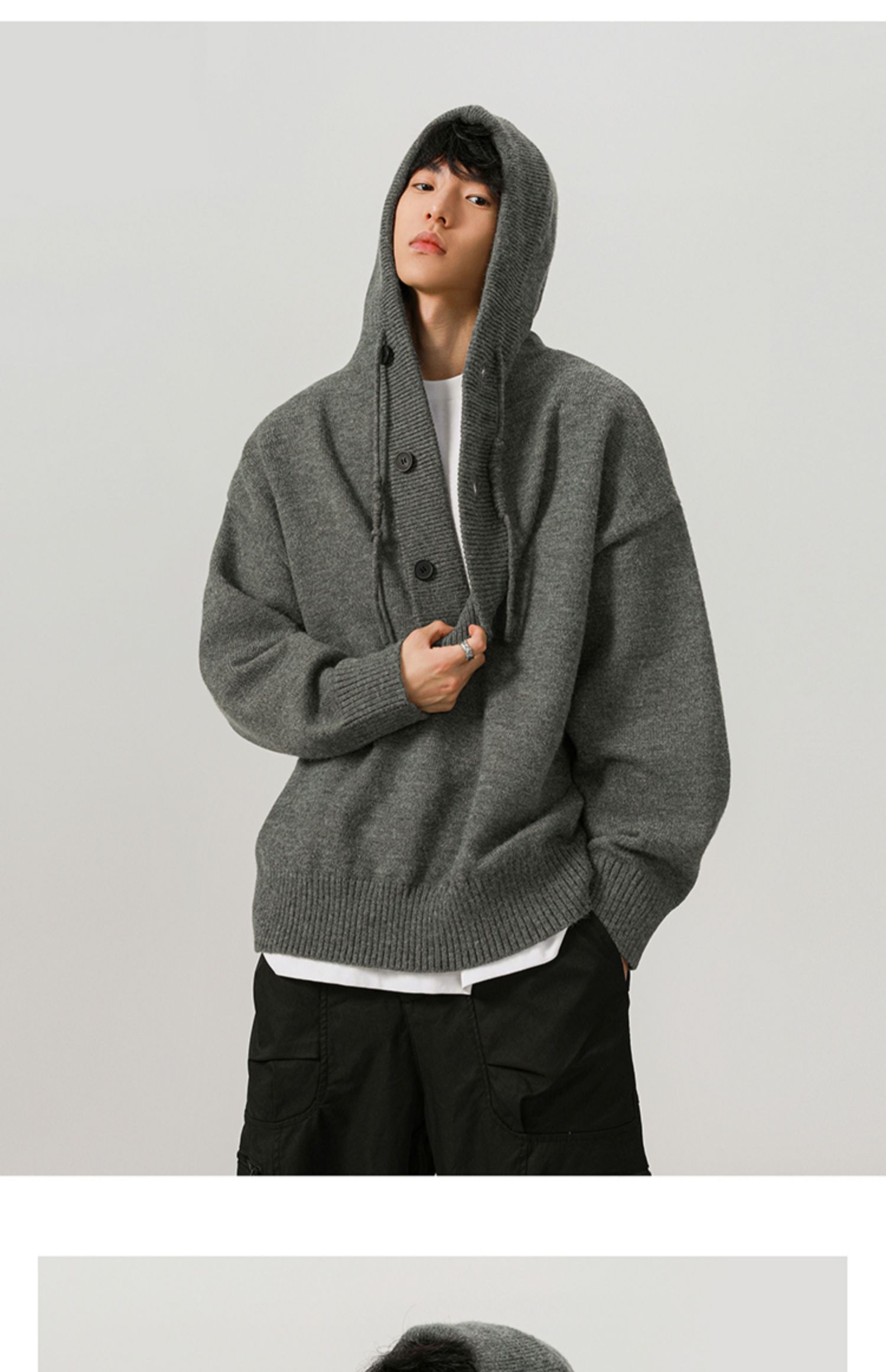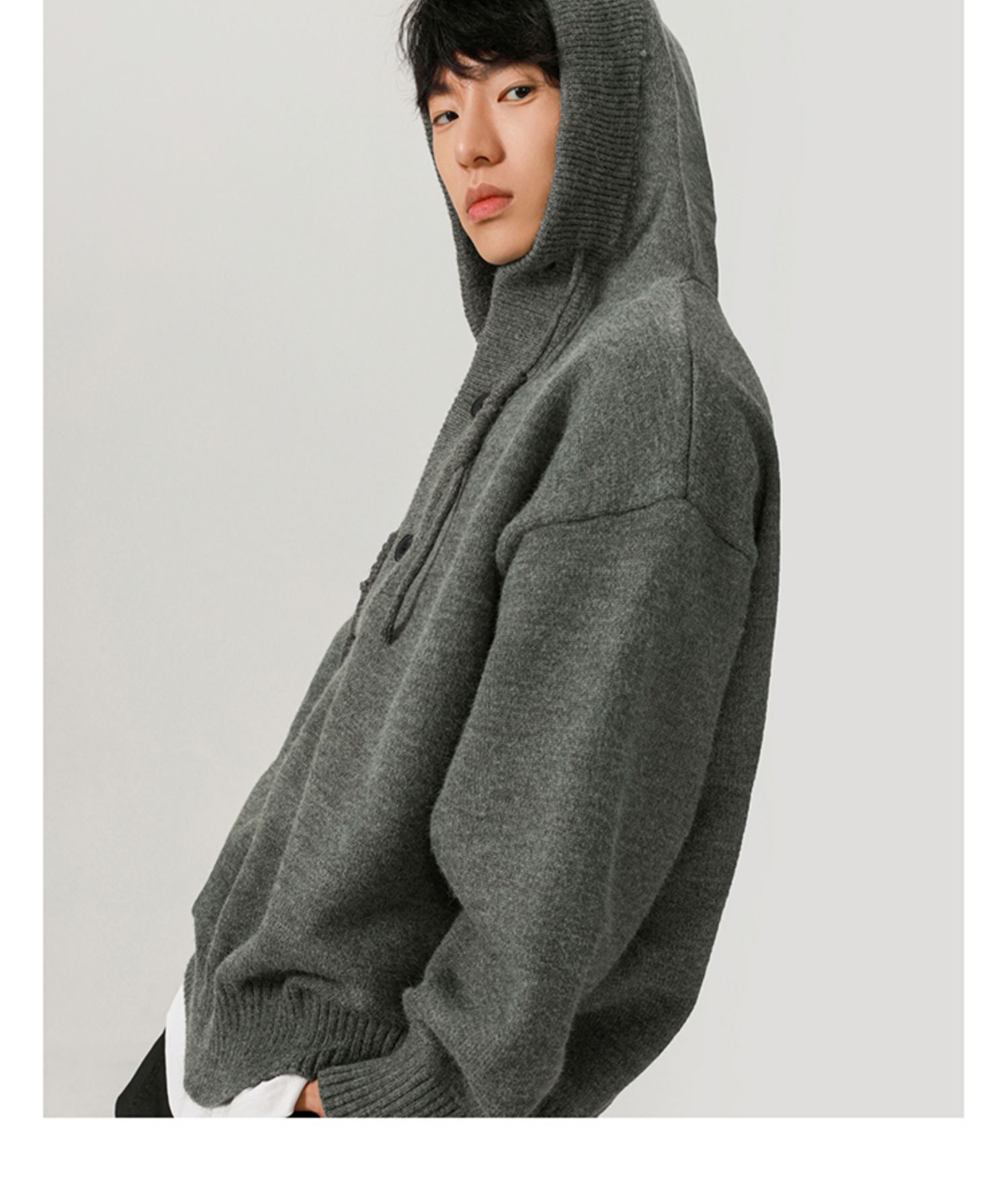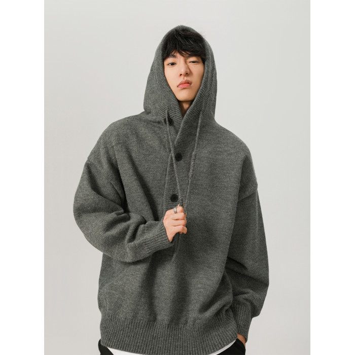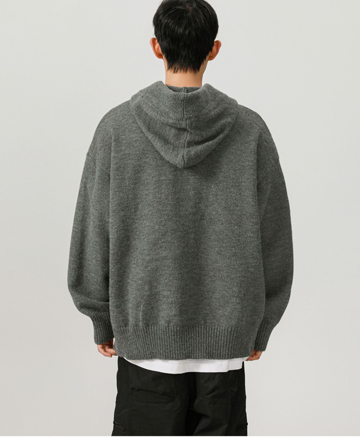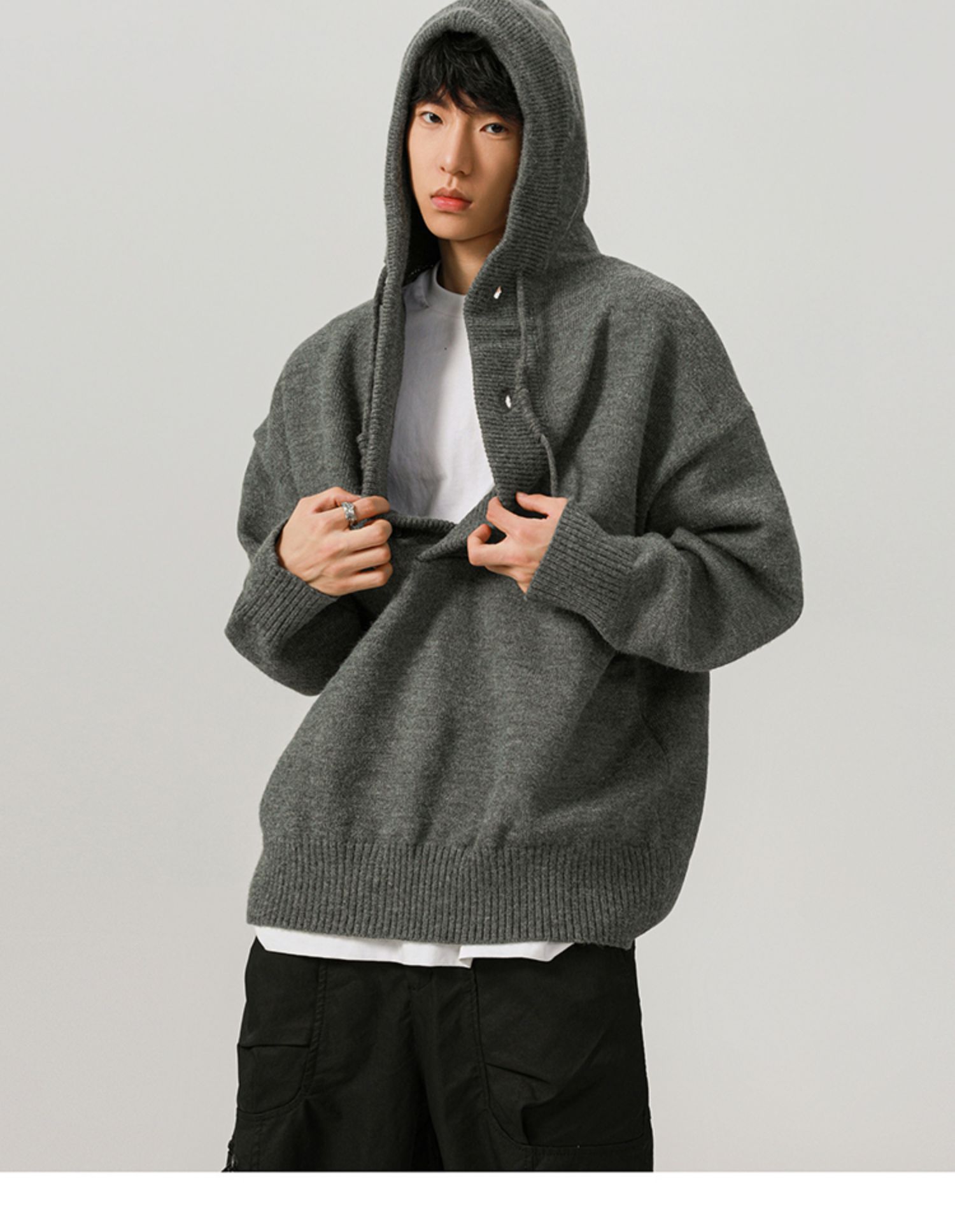 灰色重磅連帽毛衣男女秋冬美式潮牌寬松復古慵懶風百搭針織衫外套