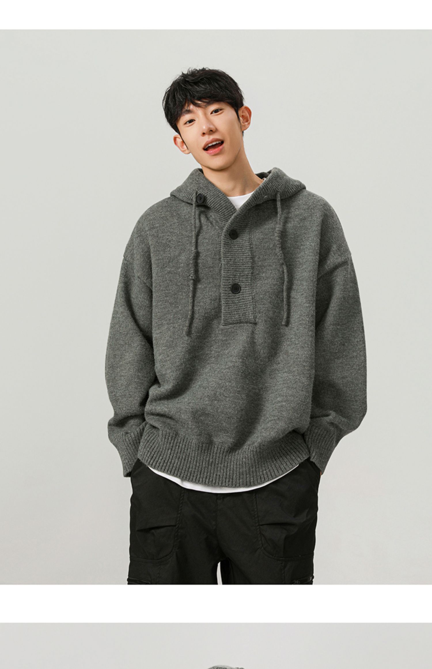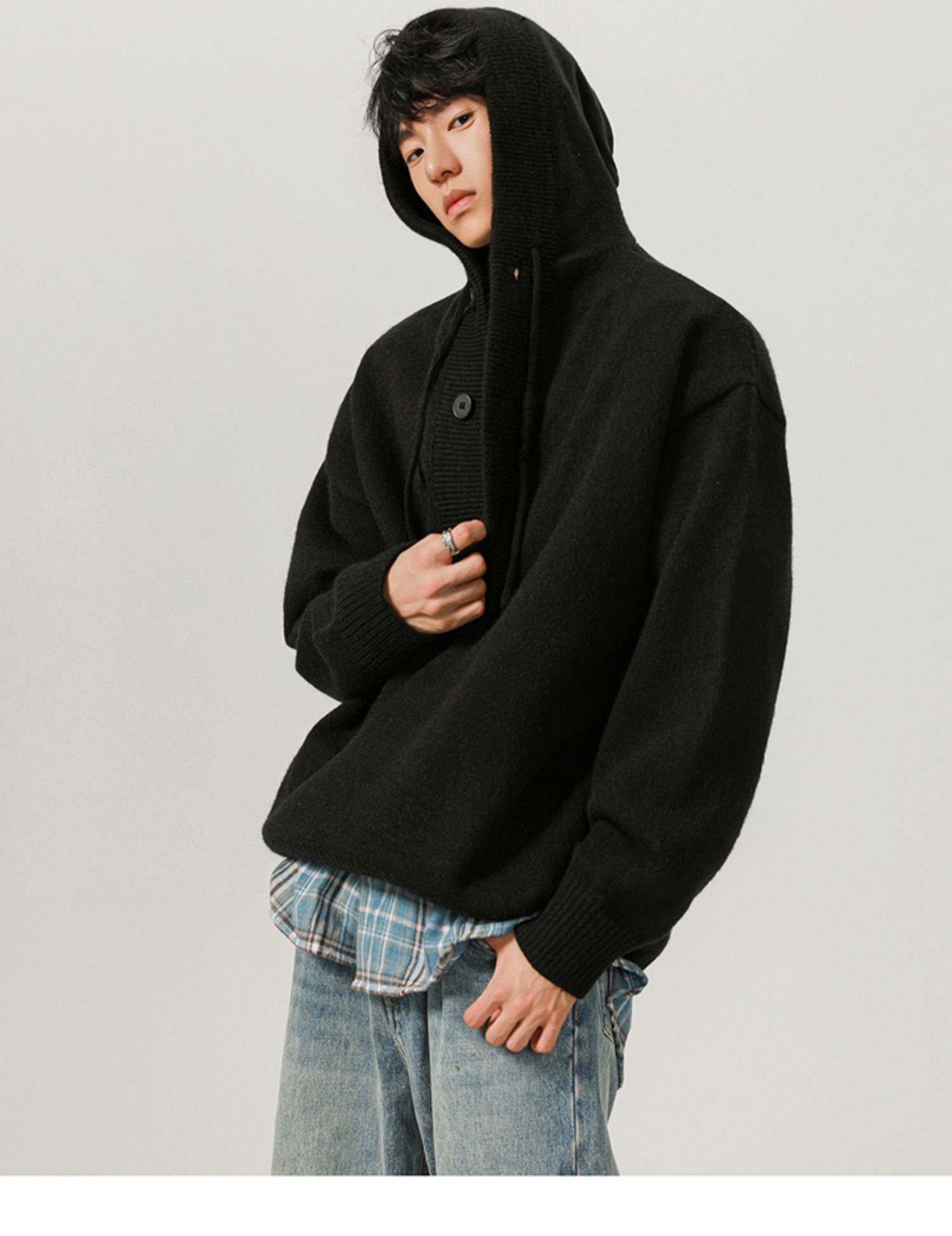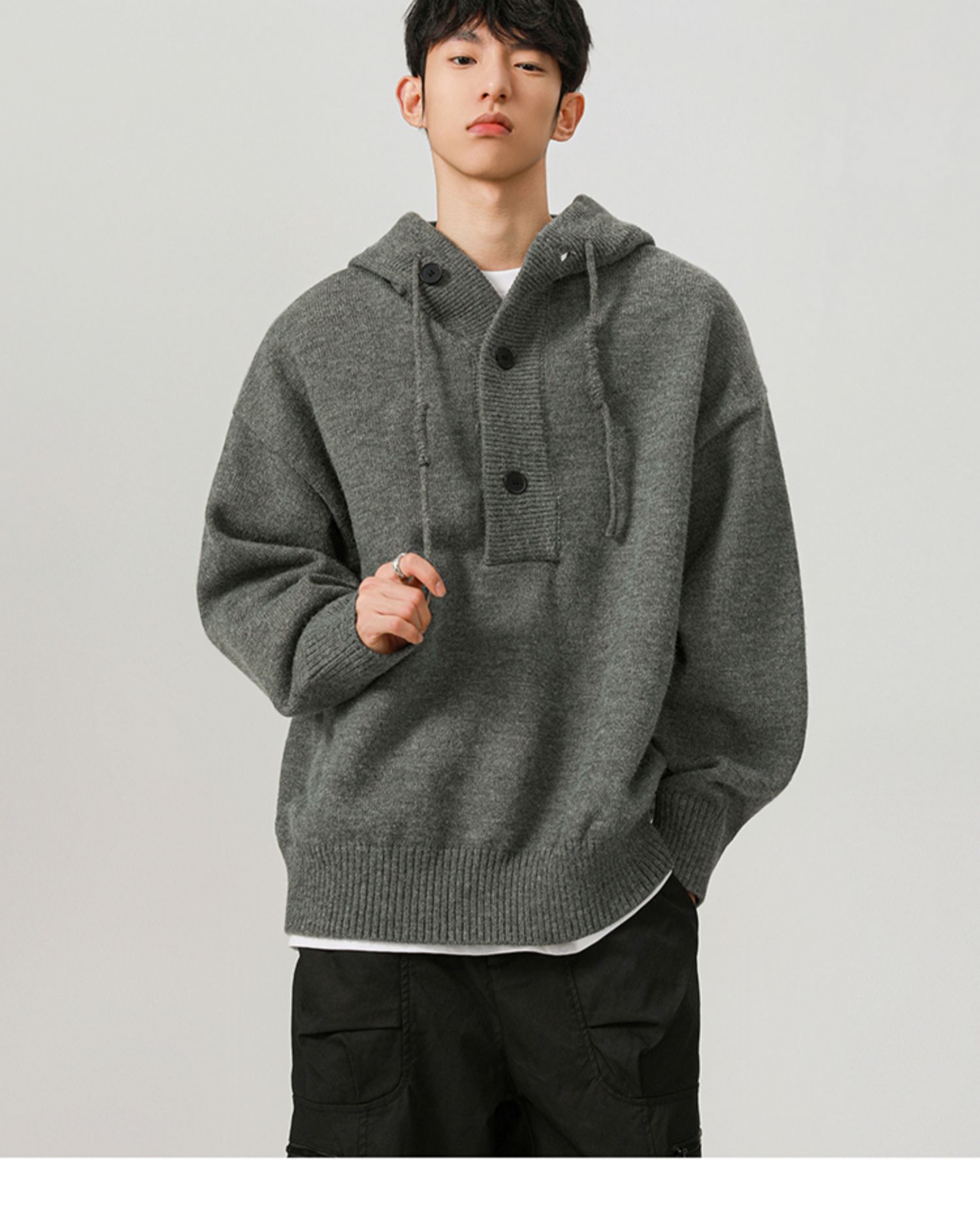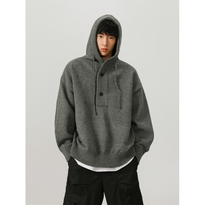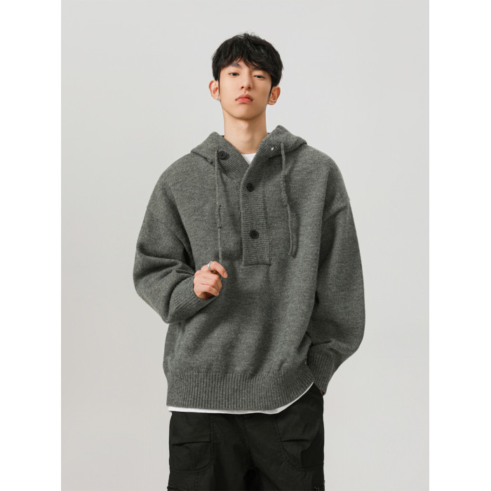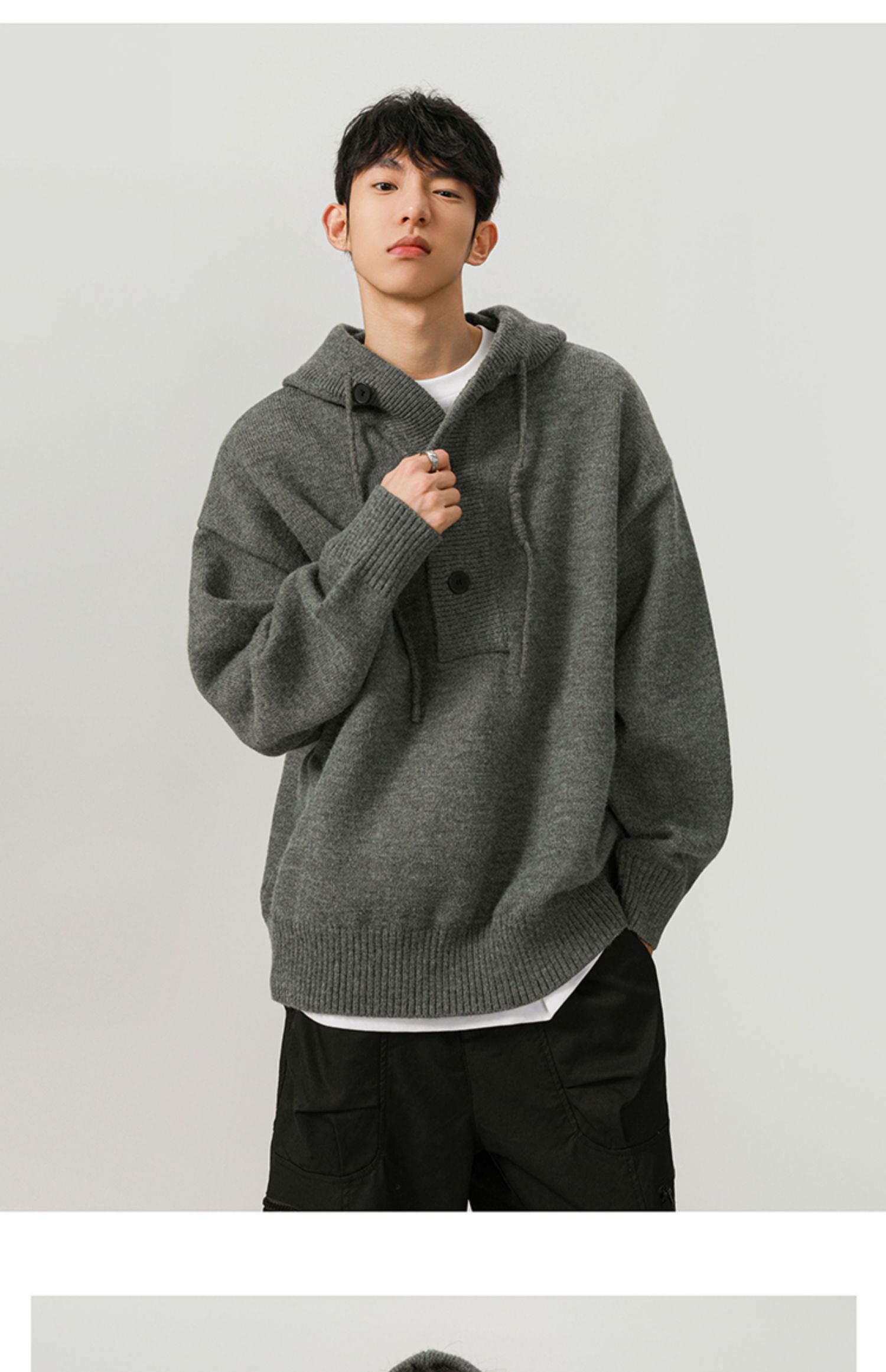 灰色重磅連帽毛衣男女秋冬美式潮牌寬松復古慵懶風百搭針織衫外套