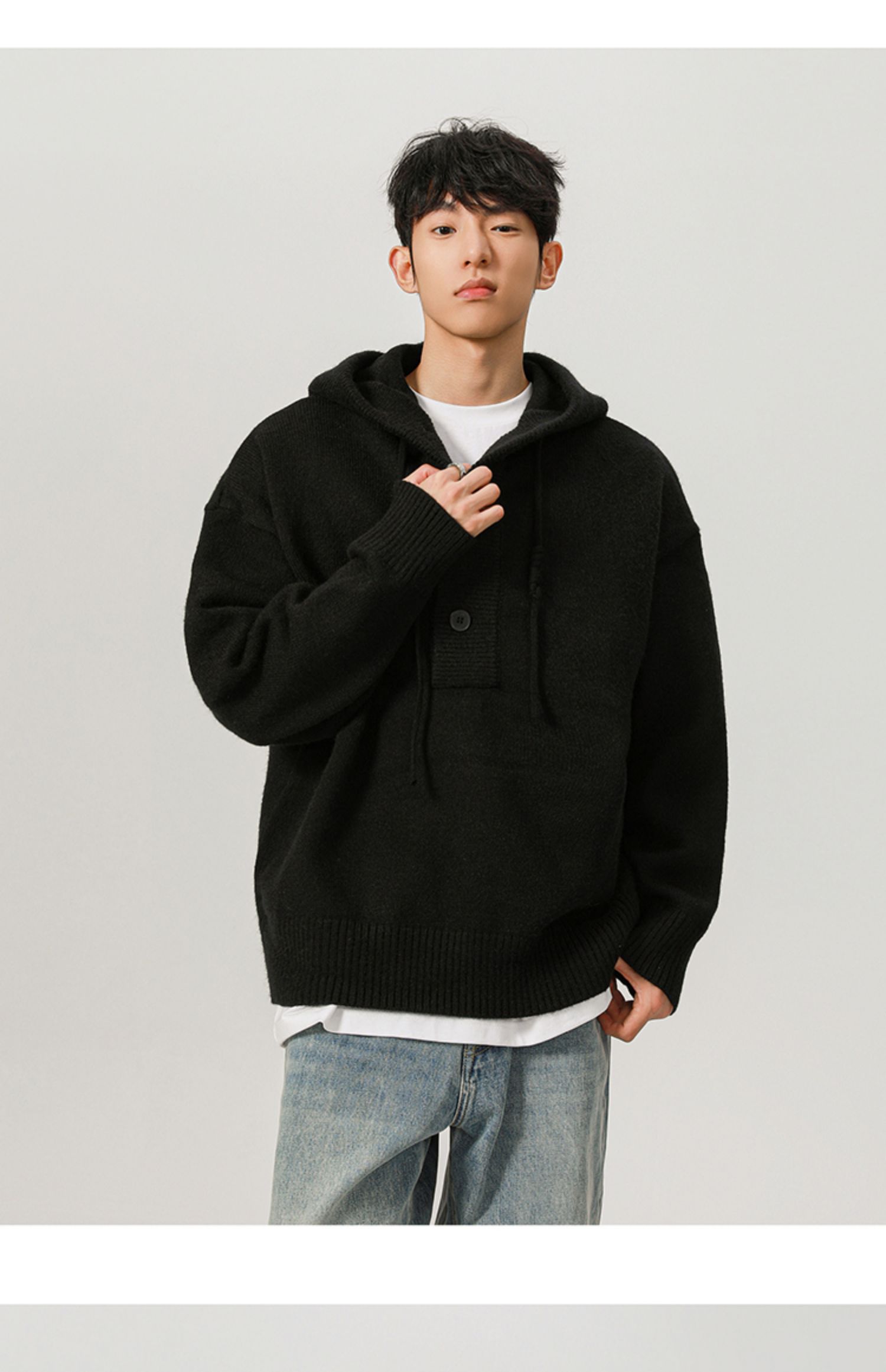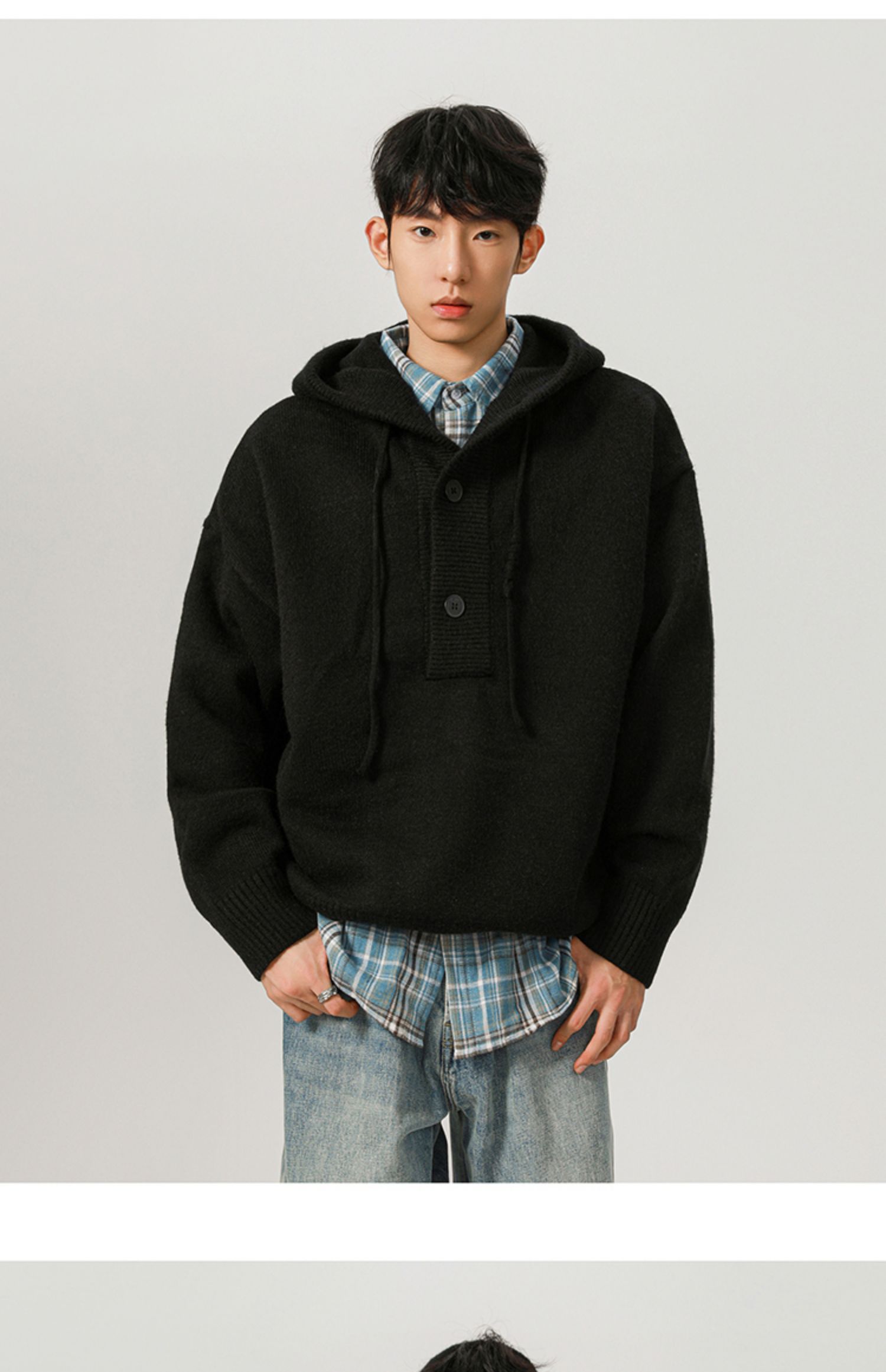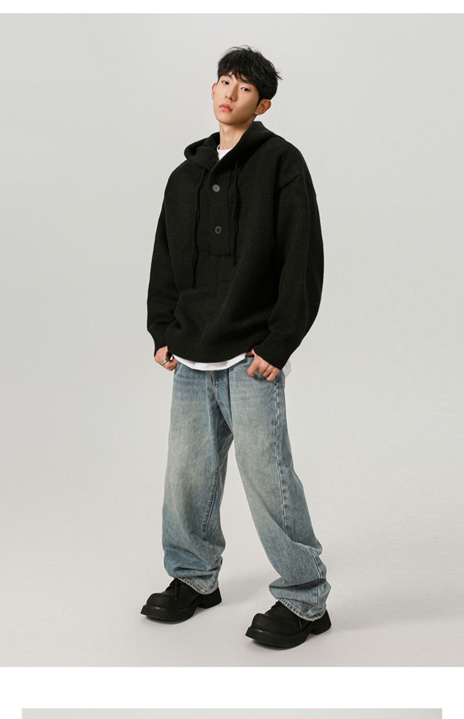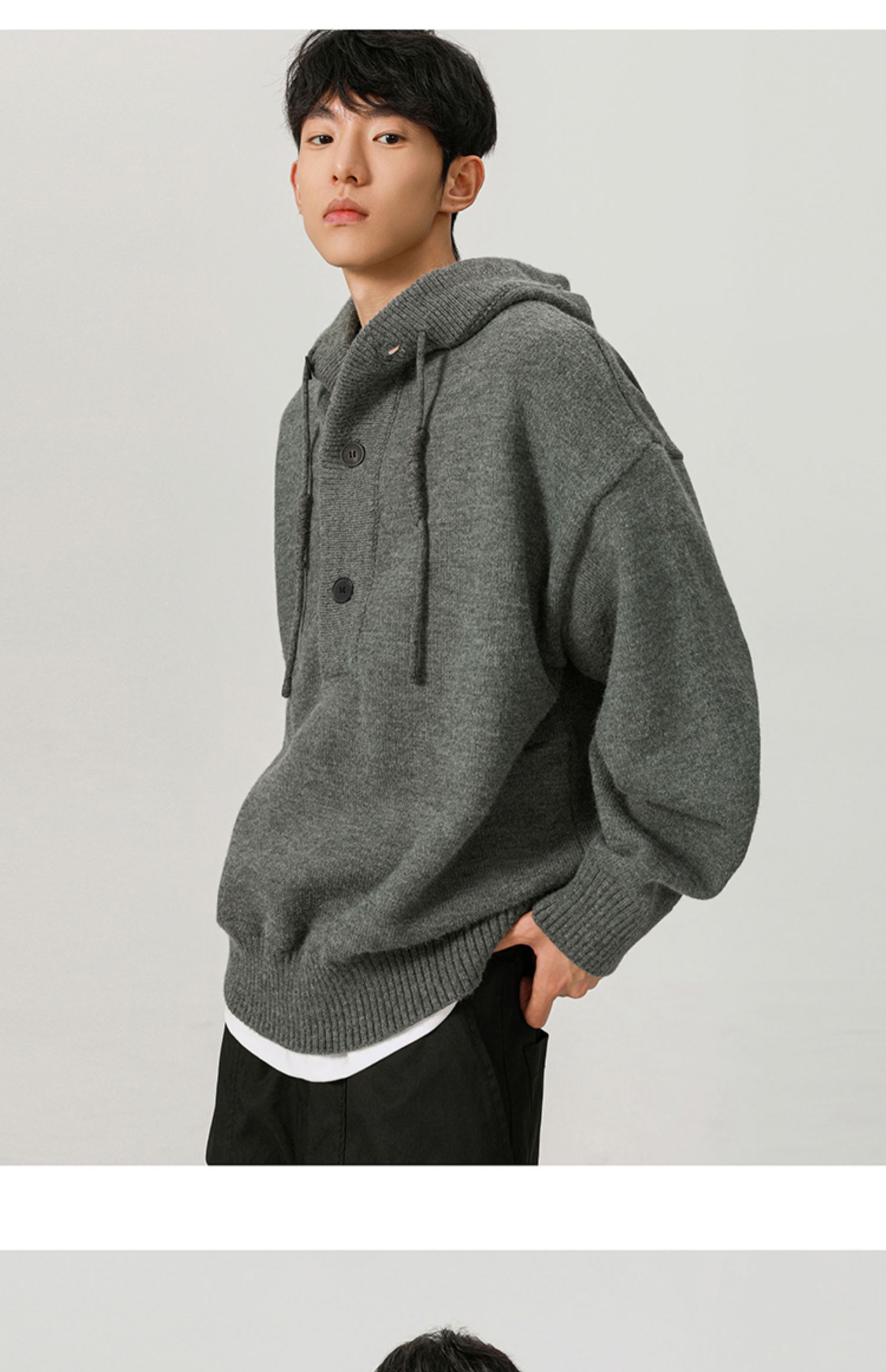 灰色重磅連帽毛衣男女秋冬美式潮牌寬松復古慵懶風百搭針織衫外套