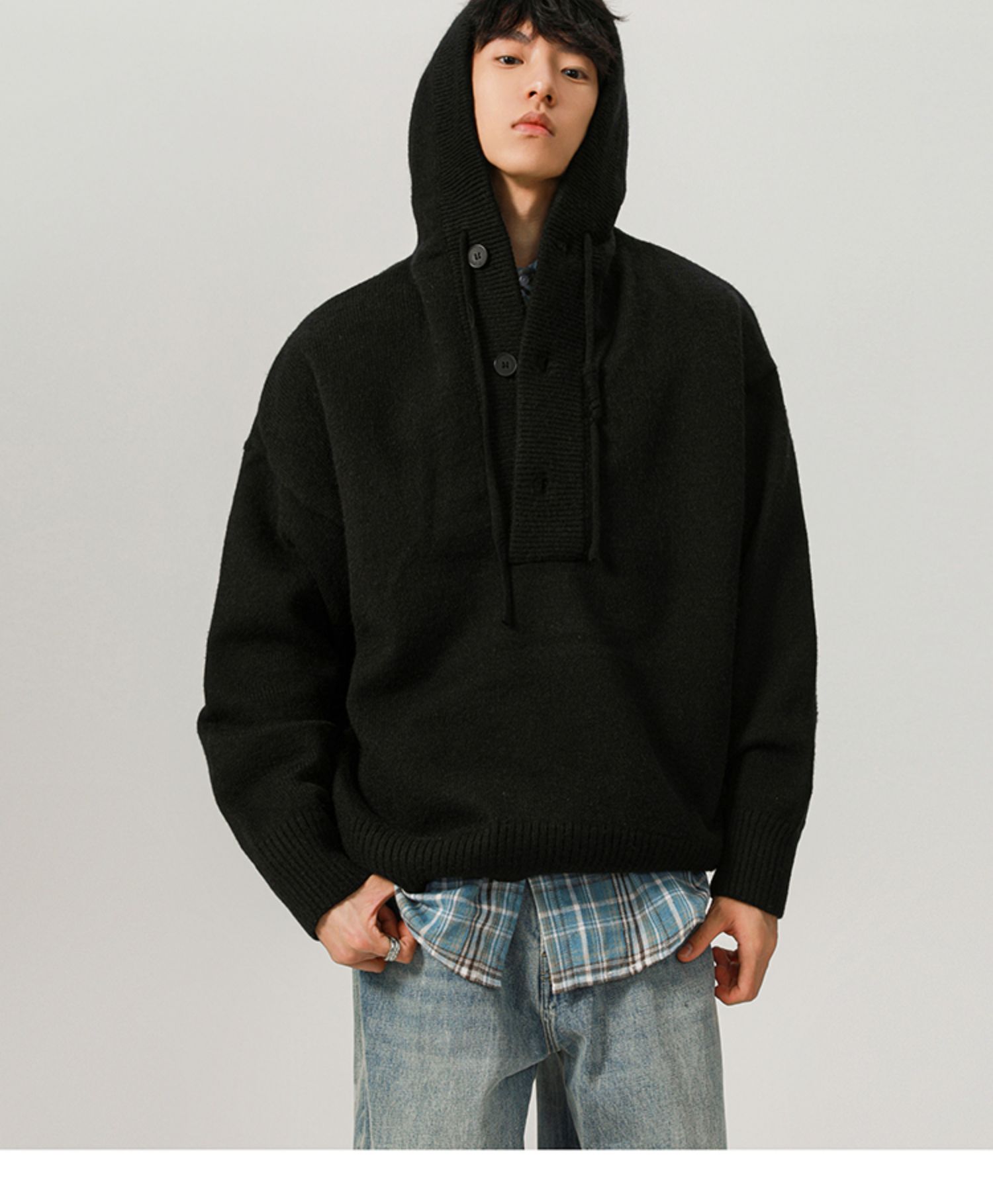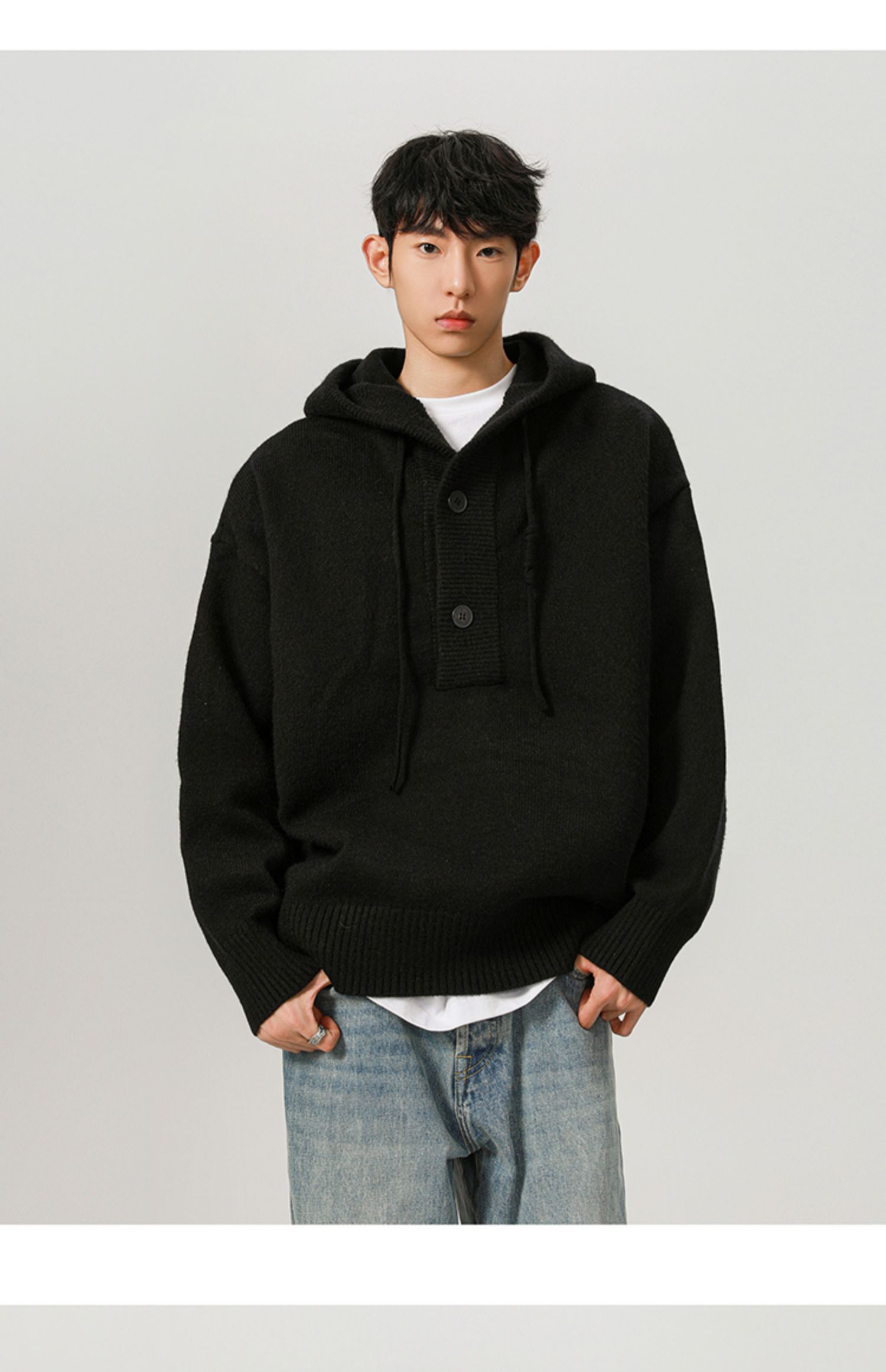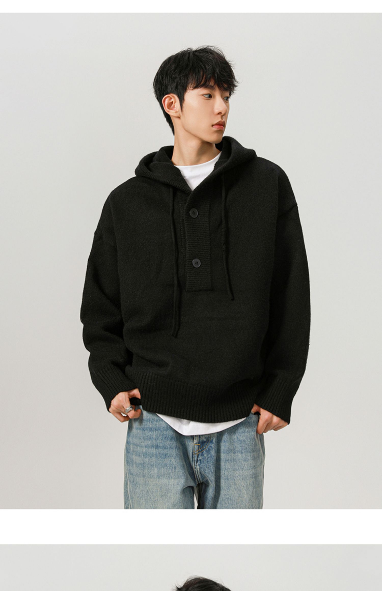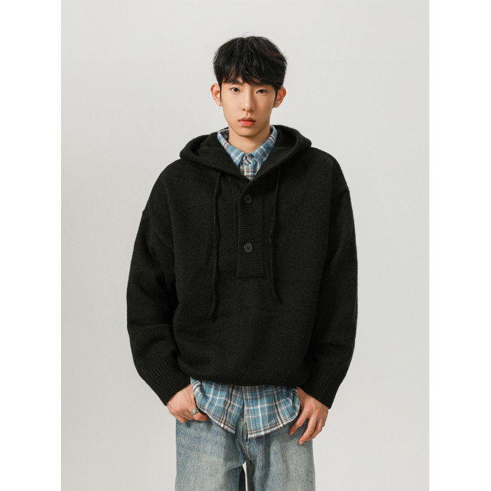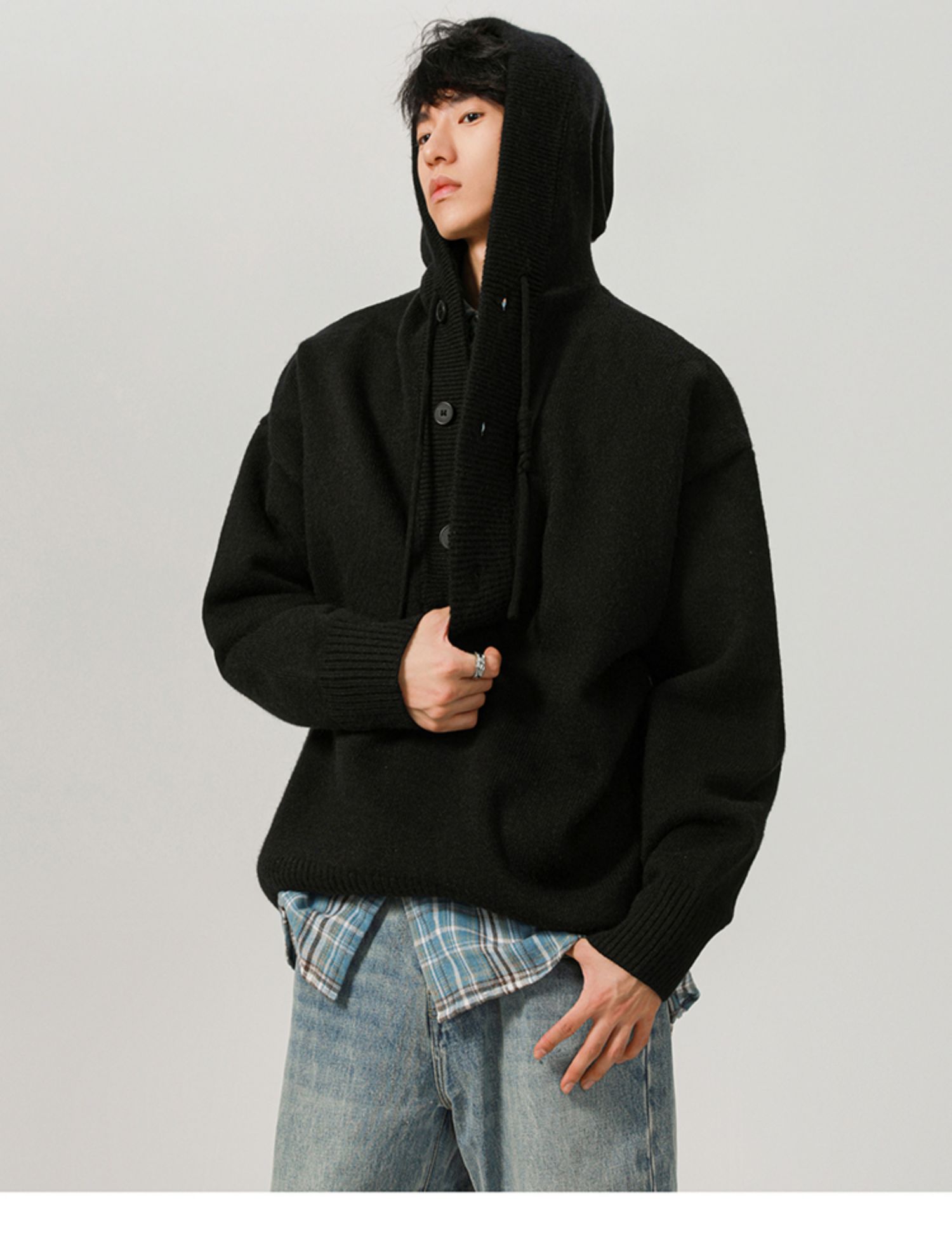 灰色重磅連帽毛衣男女秋冬美式潮牌寬松復古慵懶風百搭針織衫外套