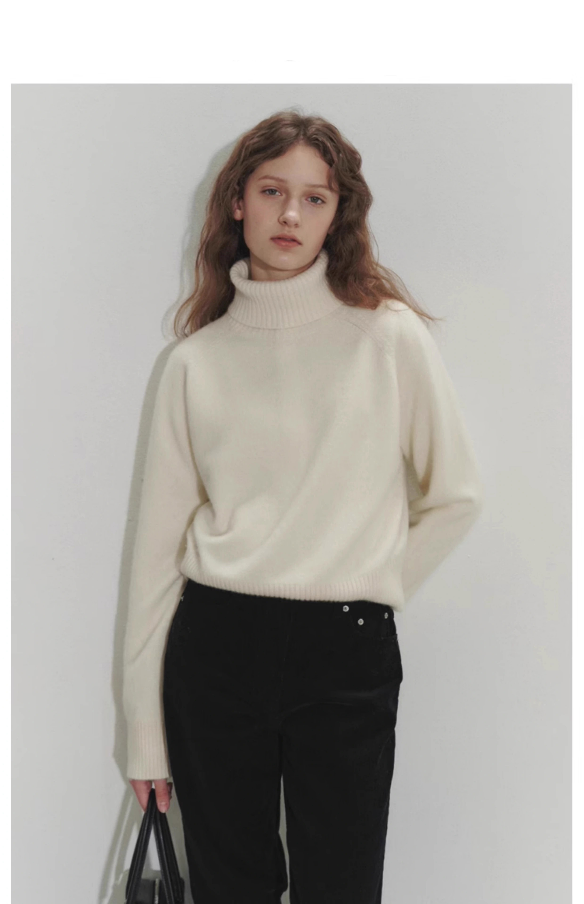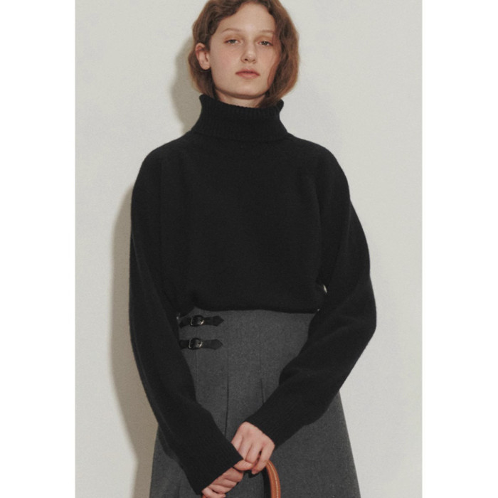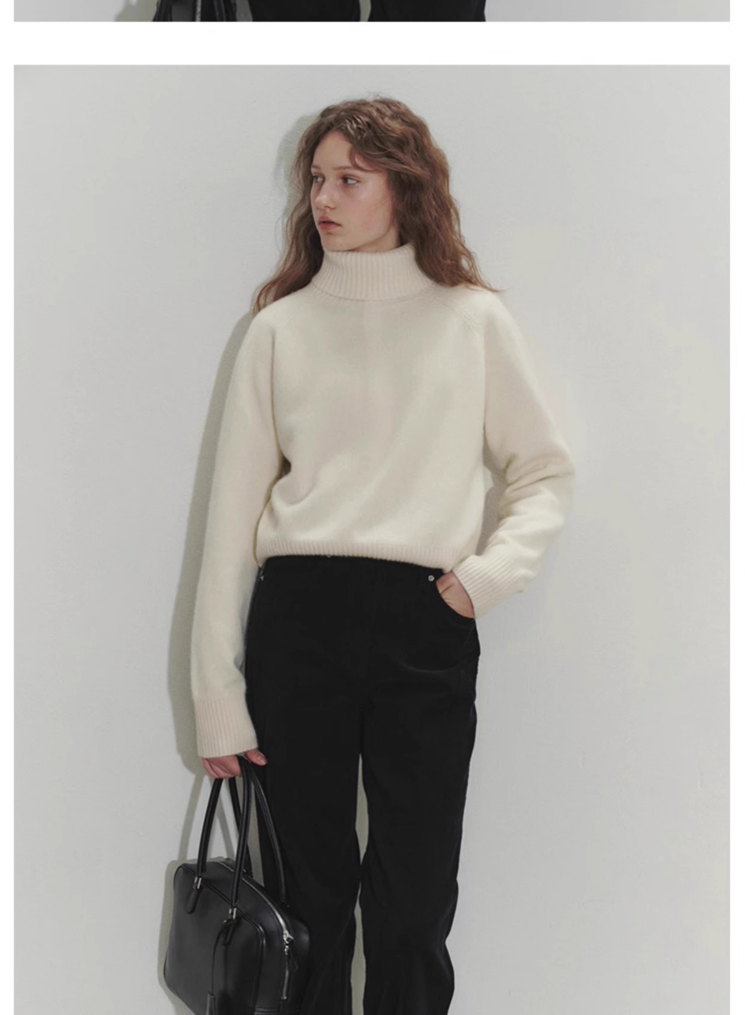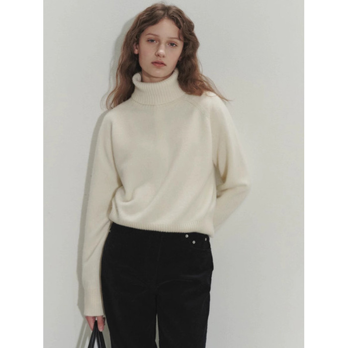 法式秋冬寬松高領白色羊毛針織衫女毛衣打底新款內搭軟糯上衣加厚