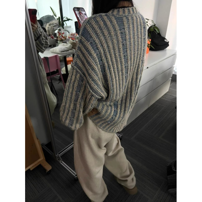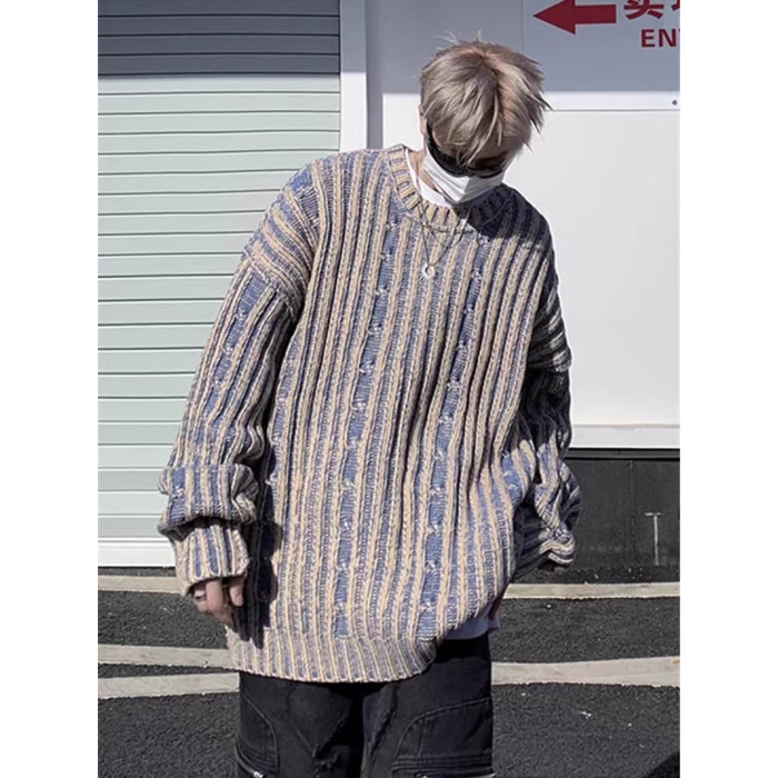 cleanfit復古條紋撞色毛衣男女冬季高街潮牌情侶小衆慵懶風針織衫