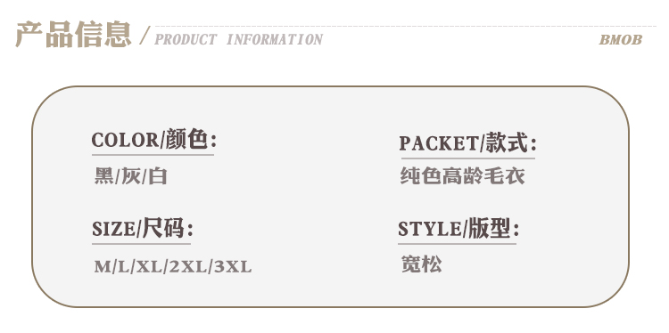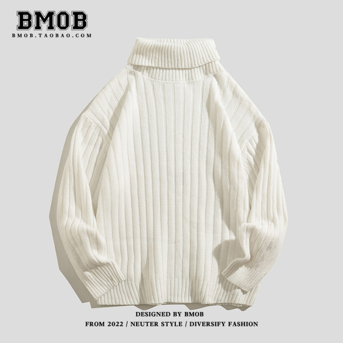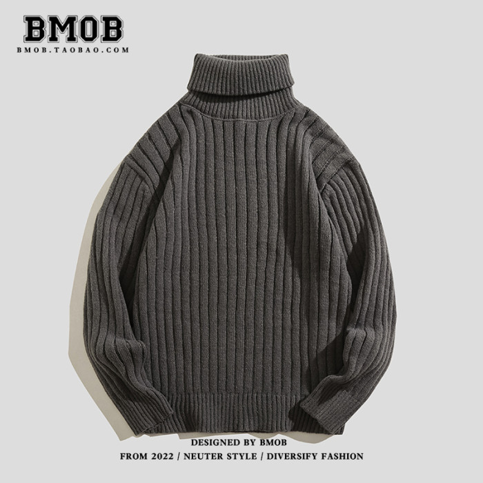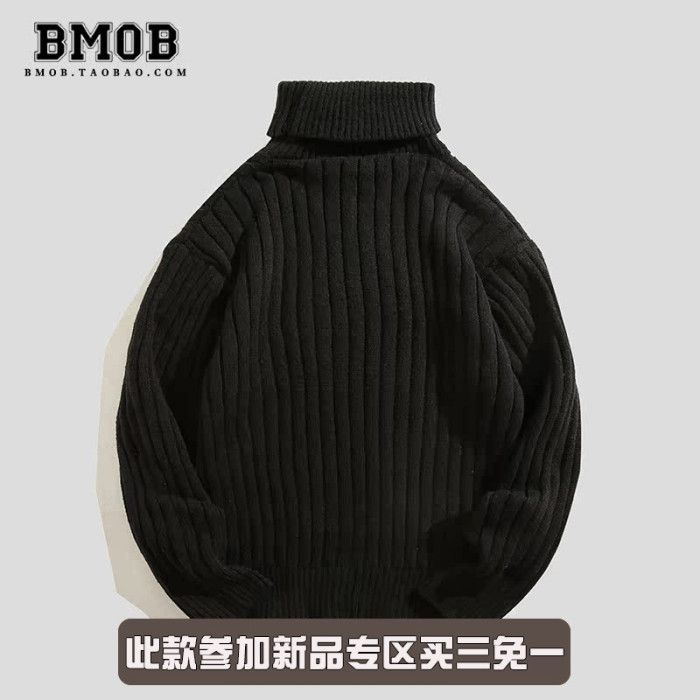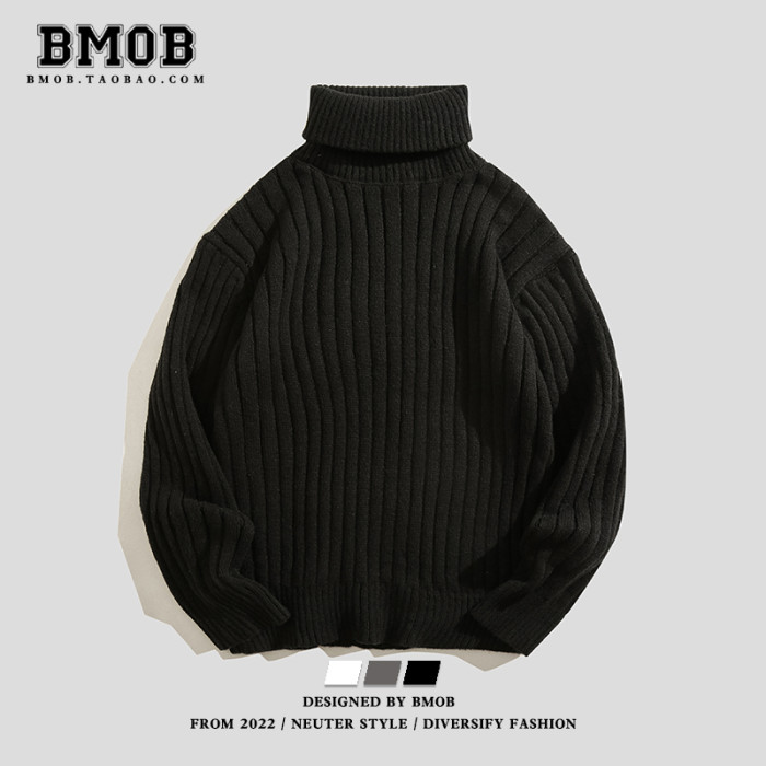 BMOB秋冬季加厚保暖高領毛衣男士ins潮流簡約百搭軟糯針織打底衫