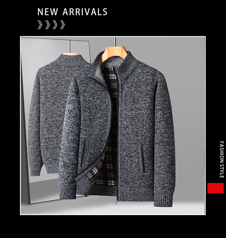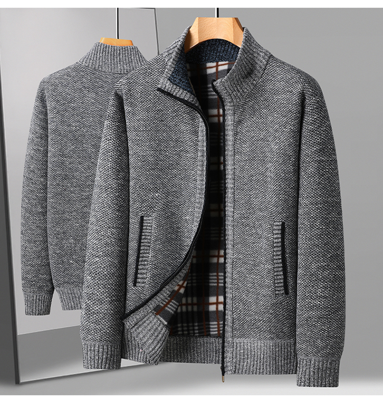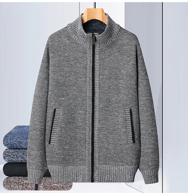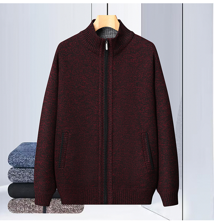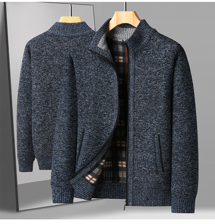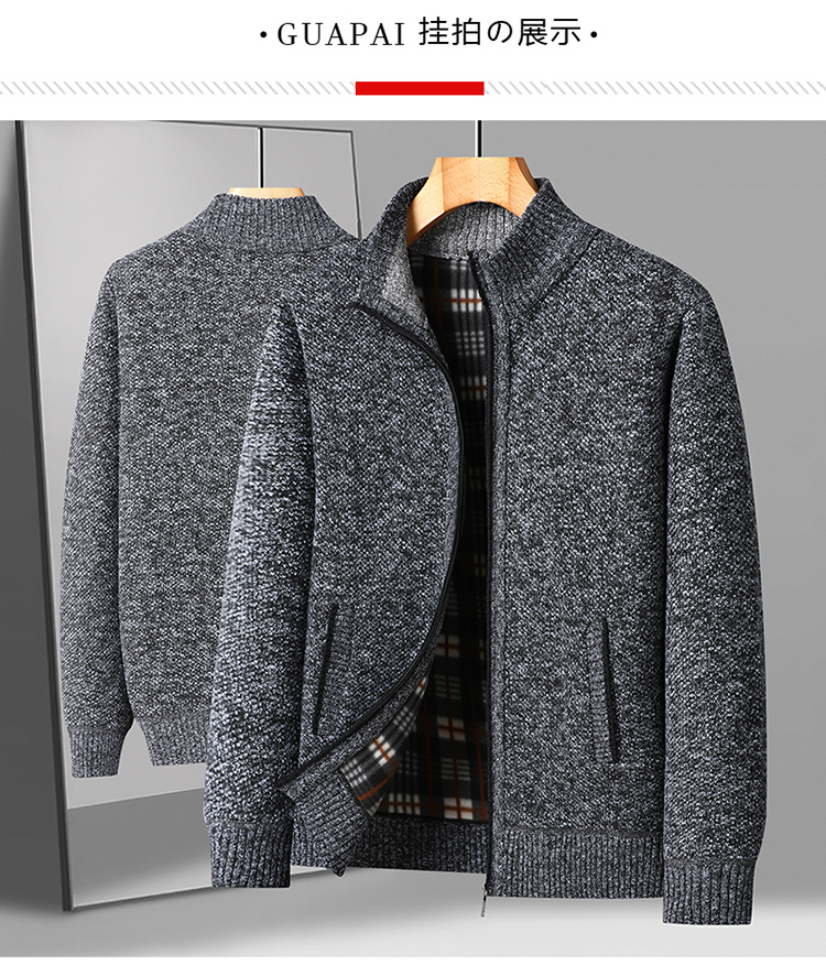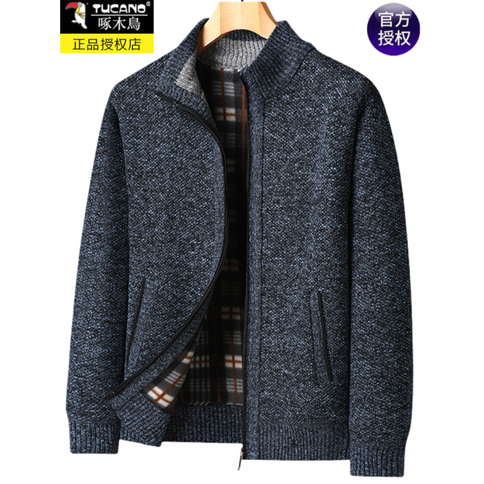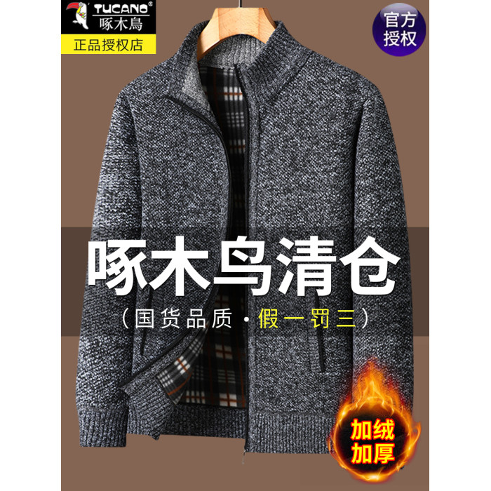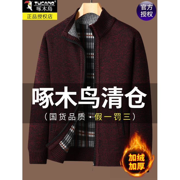 啄木鳥男士開衫2025新款秋冬季中年休閒毛衣爸爸冬裝加絨加厚外套