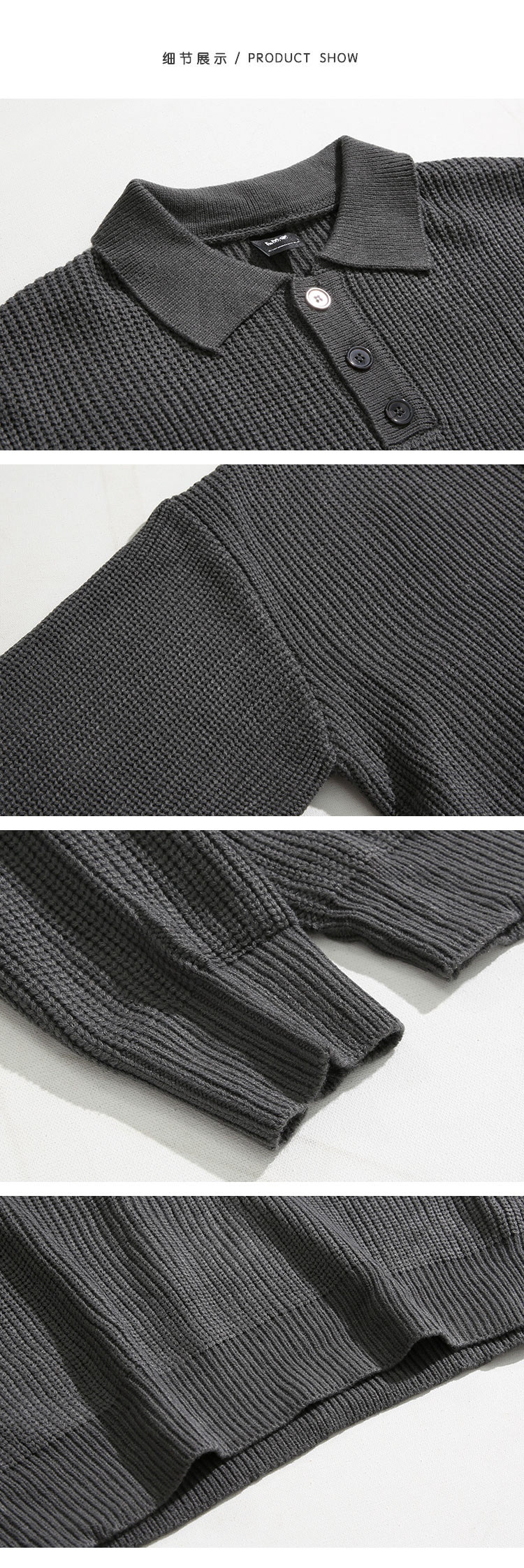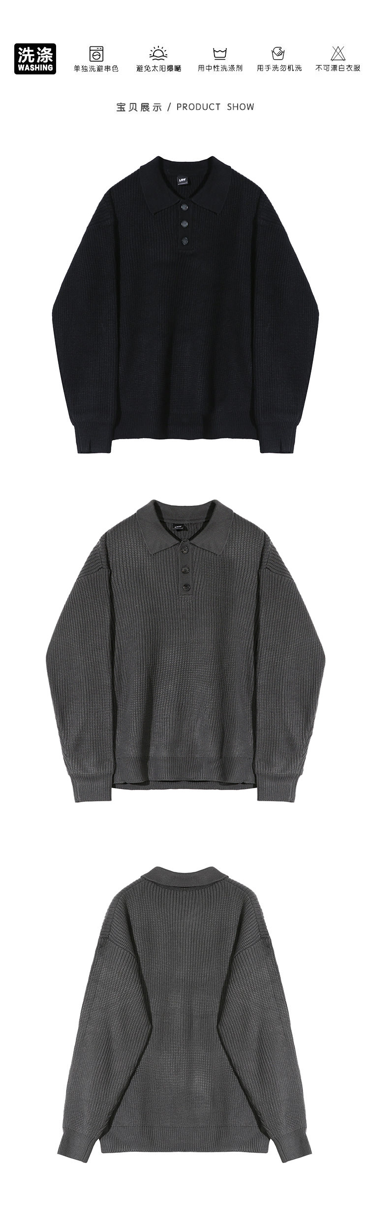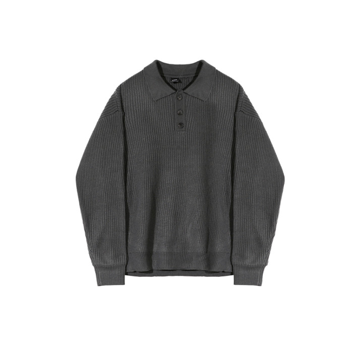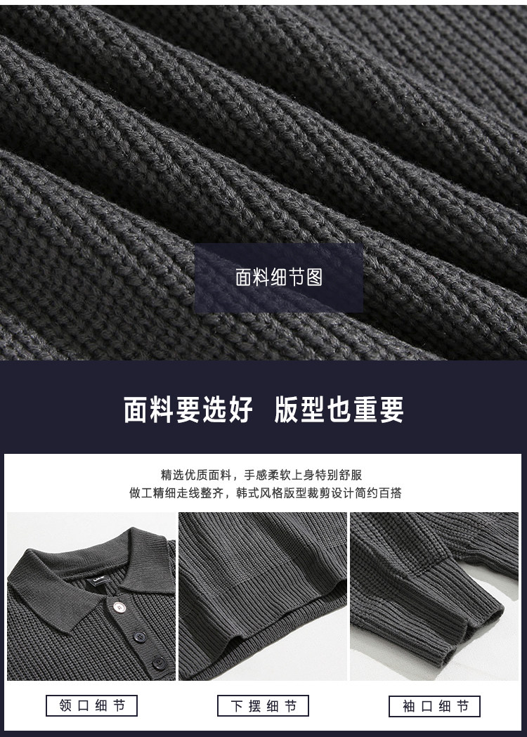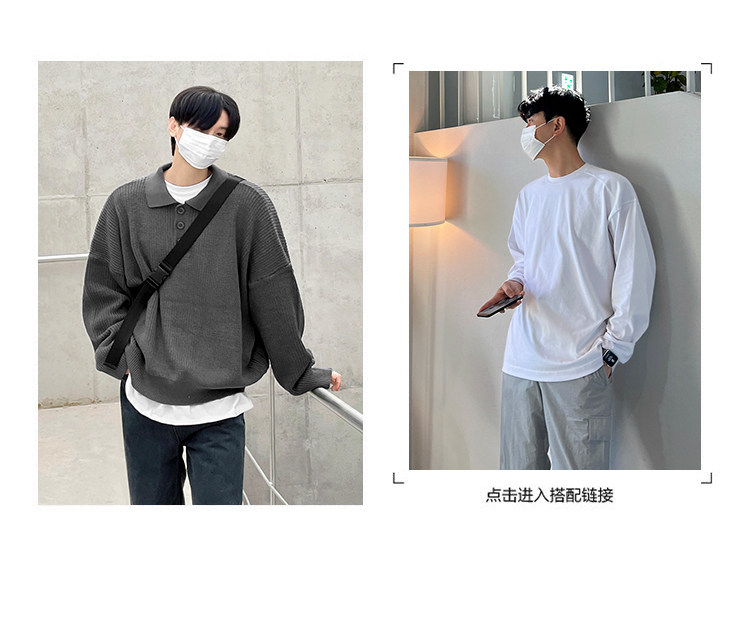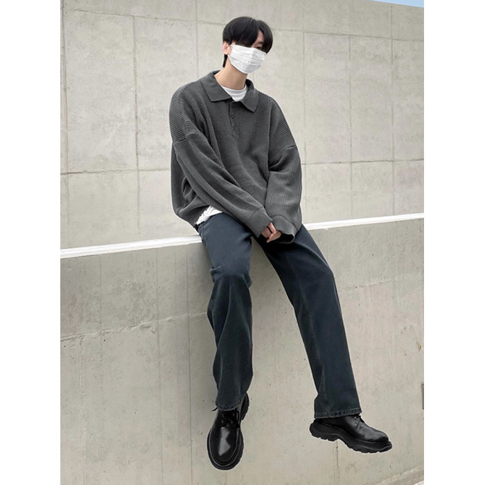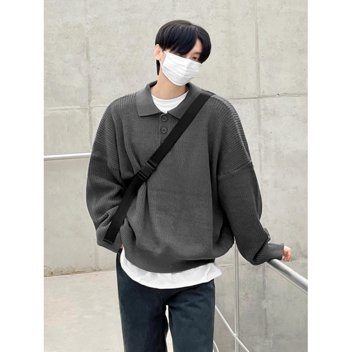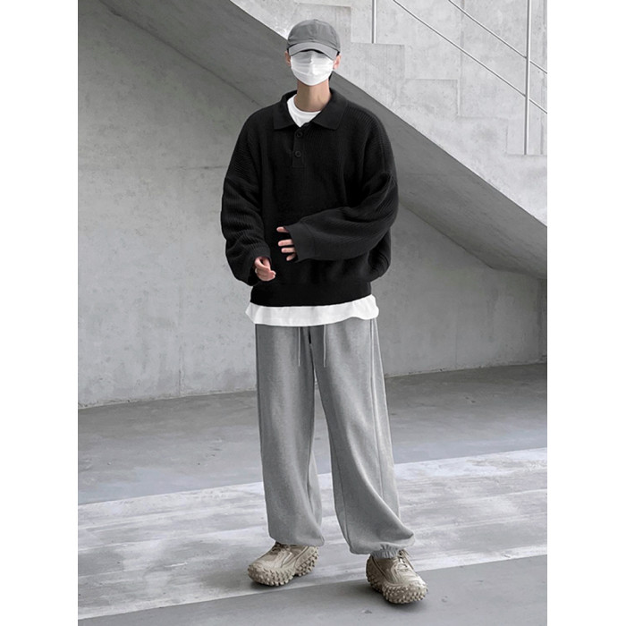 MRCYC繙領長袖毛衣男秋季韓系寬鬆高級感慵嬾風純色Polo領針織衫
