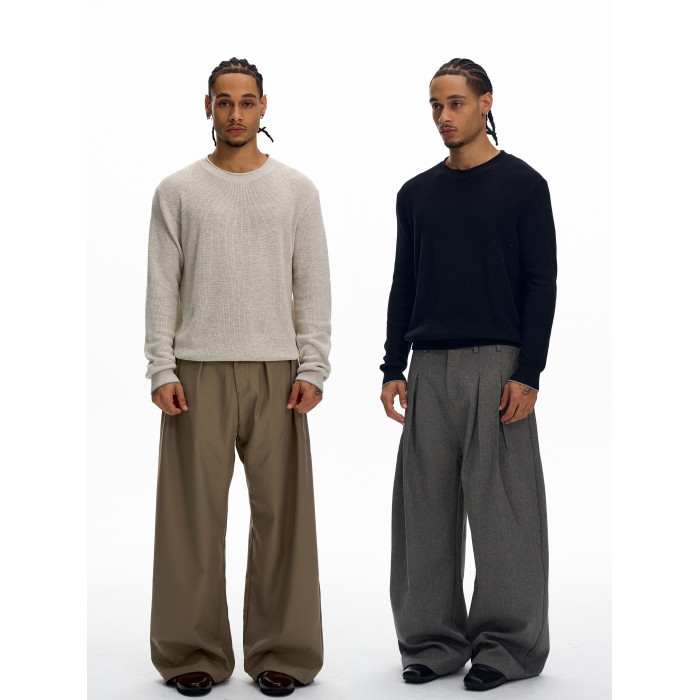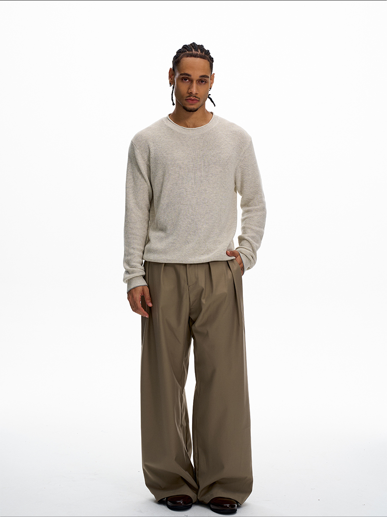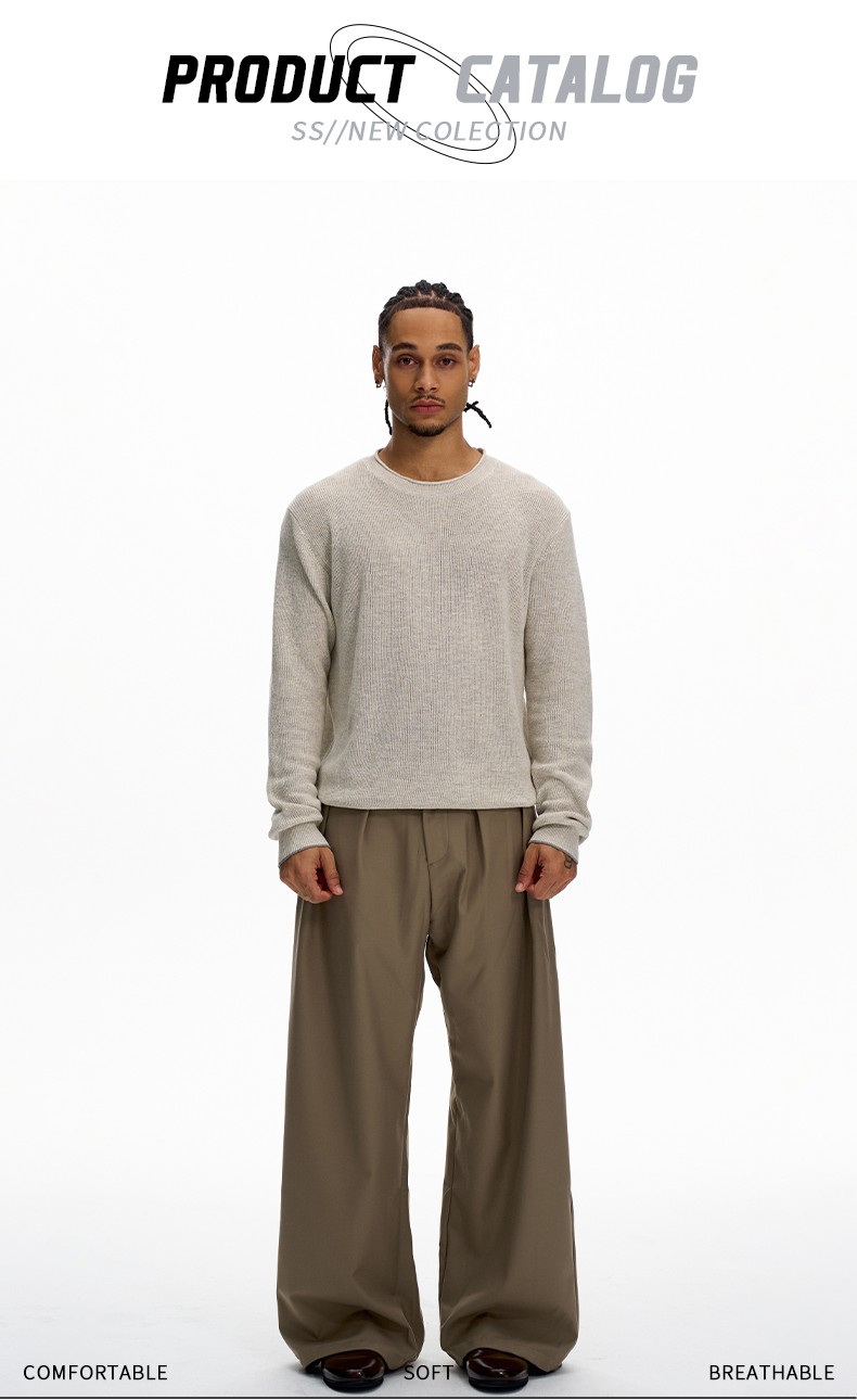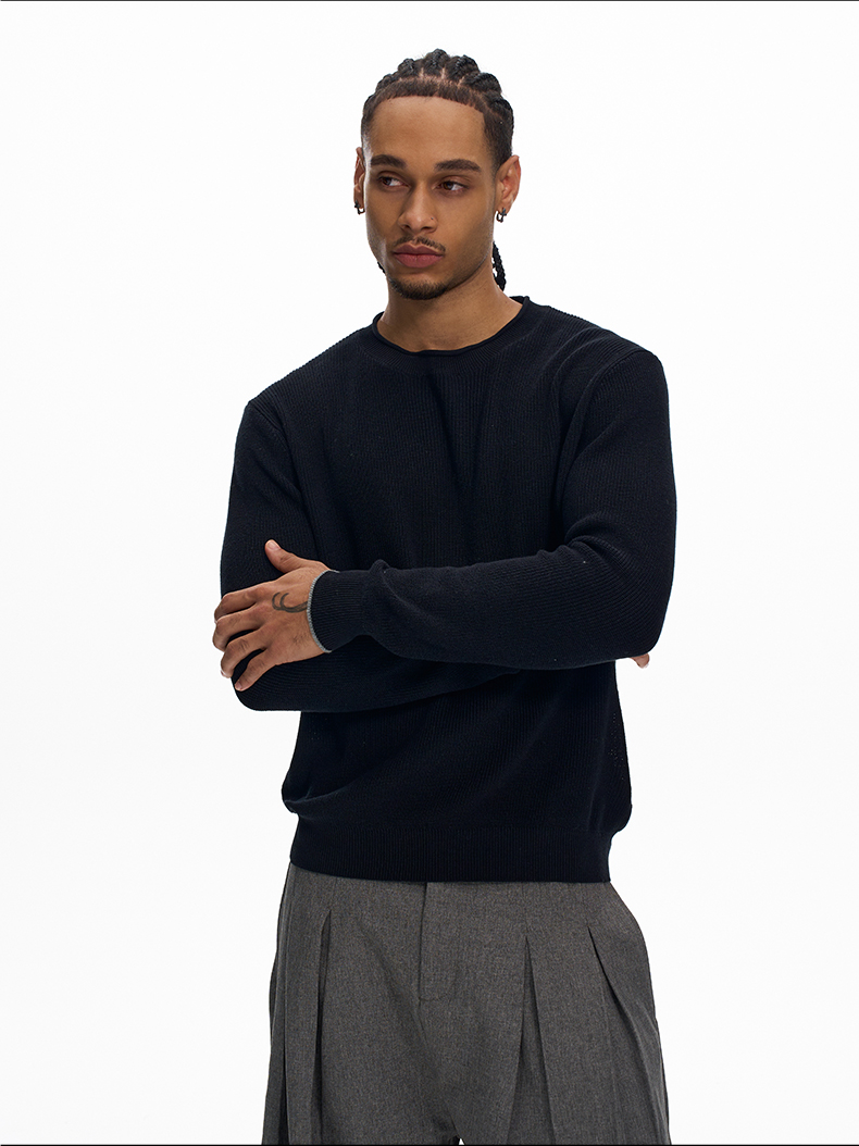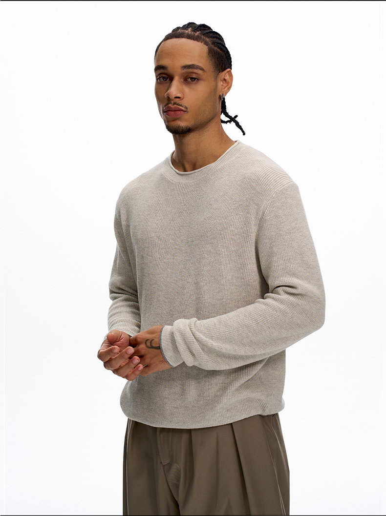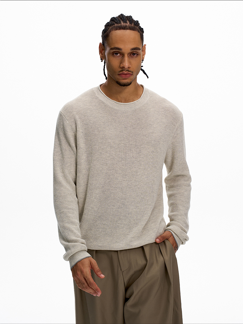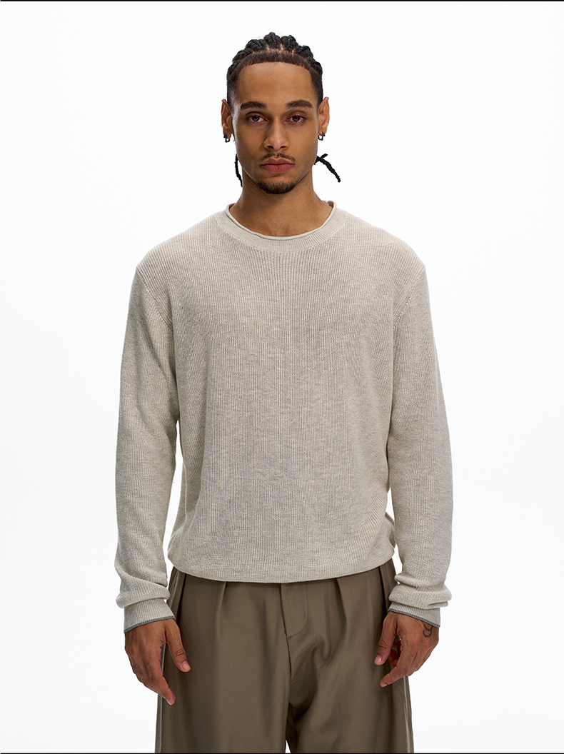 KISKO美式老錢風亞麻針織通勤休閒長袖男女極簡cleanfit內搭上衣