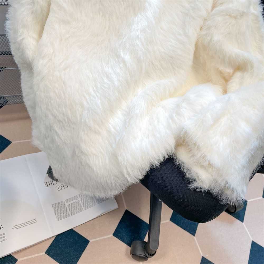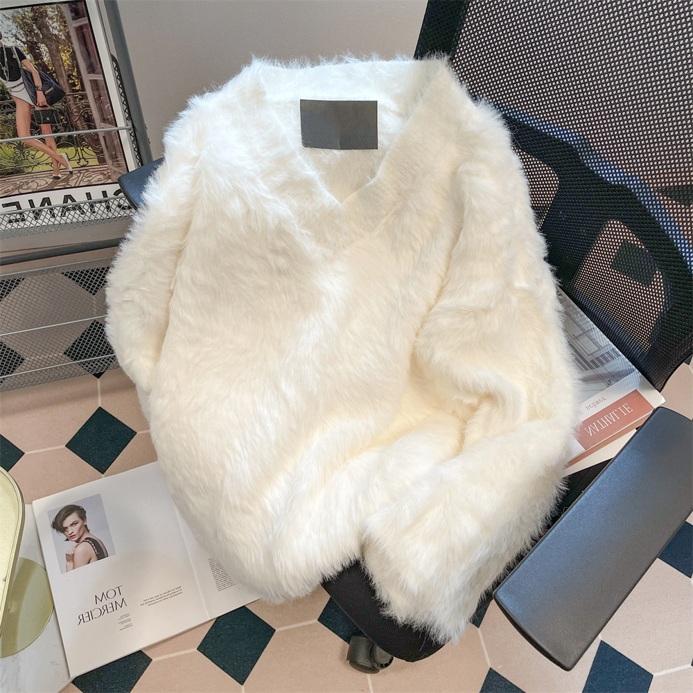 法式甜美溫柔風軟糯水貂絨v領毛衣男女冬季奶fufu加厚針織衫外套