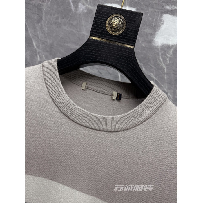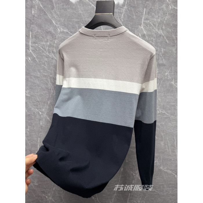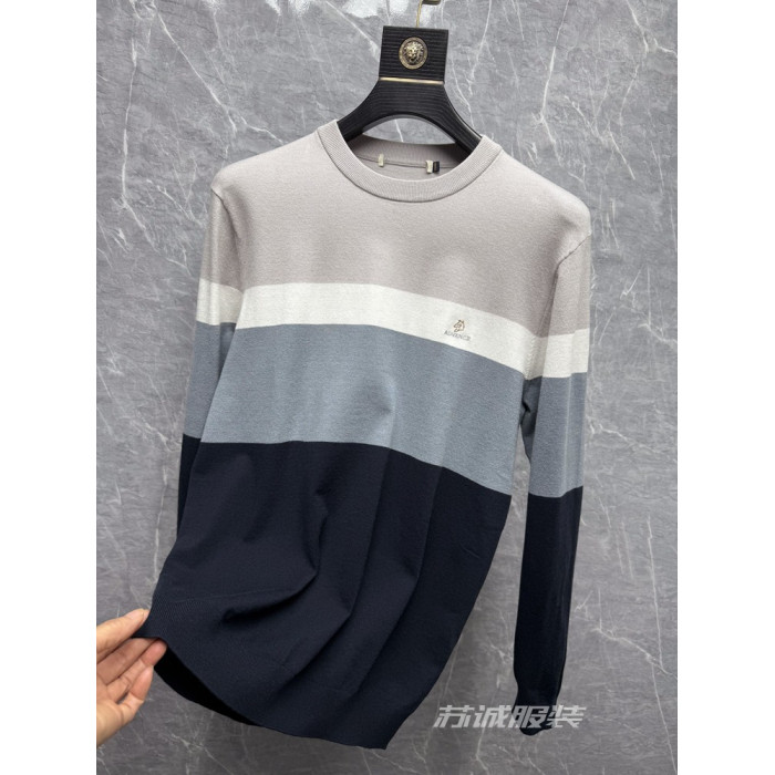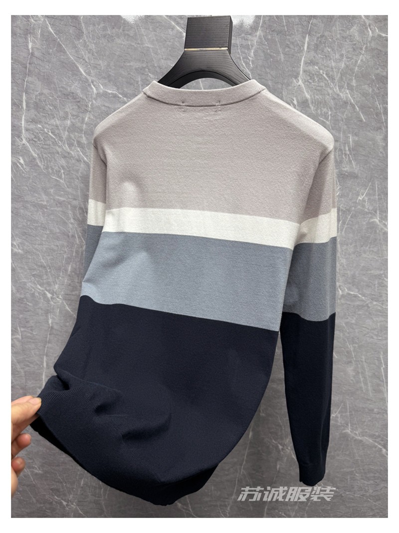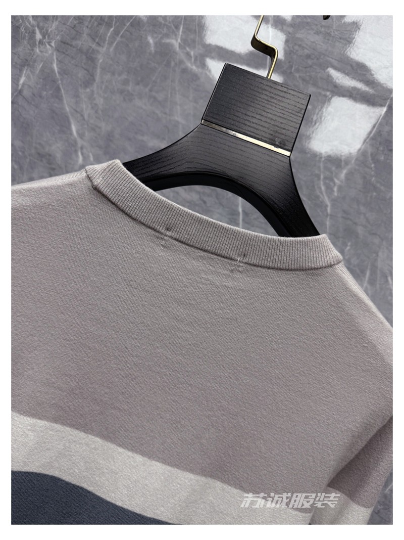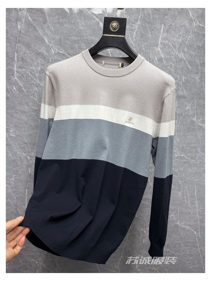 H餘單剪標拼色刺綉花胸標柔軟條紋長袖圓領毛衣毛衫針織衫春秋男