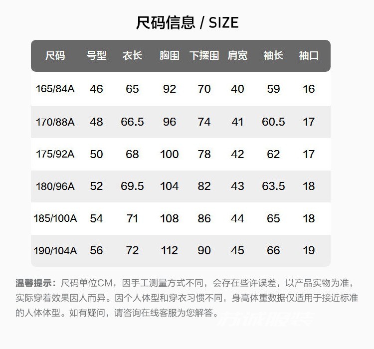 | 版型分類 | 修身型 |