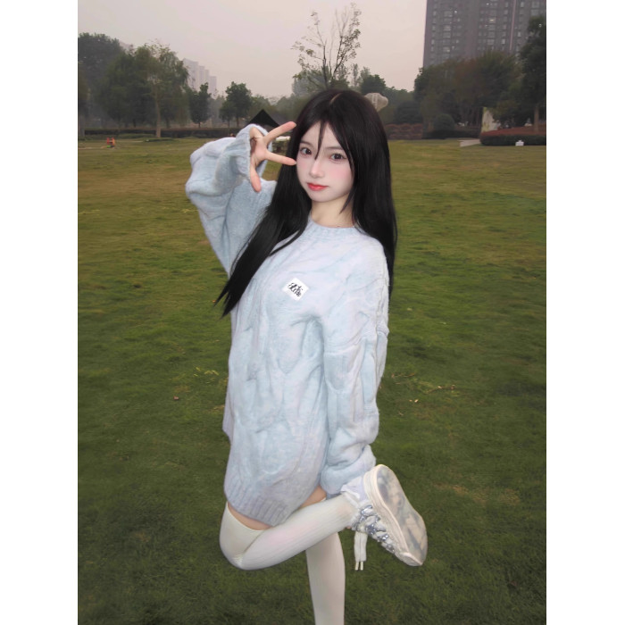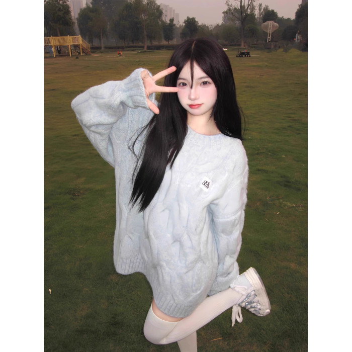甜美奶fufu軟糯麻花毛衣女秋冬寬松慵懶風圓領百搭套頭針織衫潮