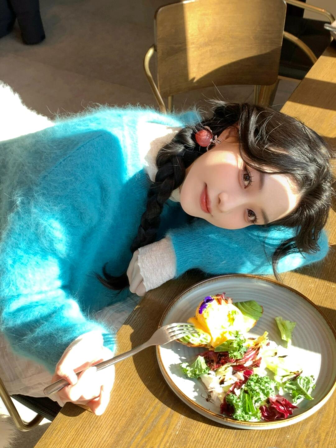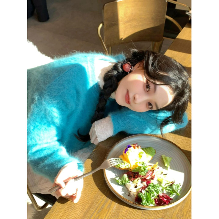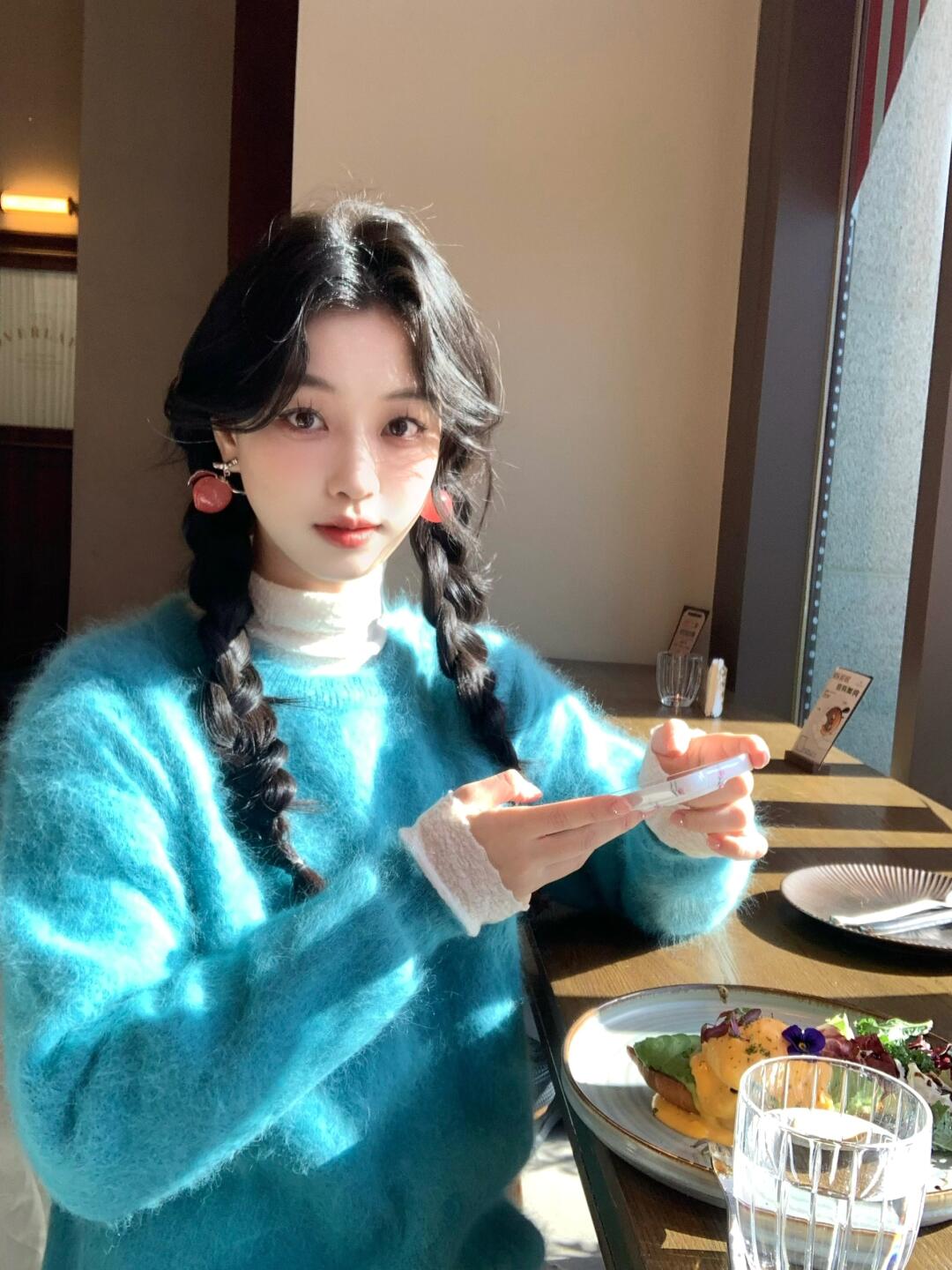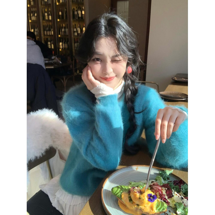 韓系寬松顯白藍色圓領軟糯水貂毛毛衣冬溫柔風別致套頭慵懶上衣女