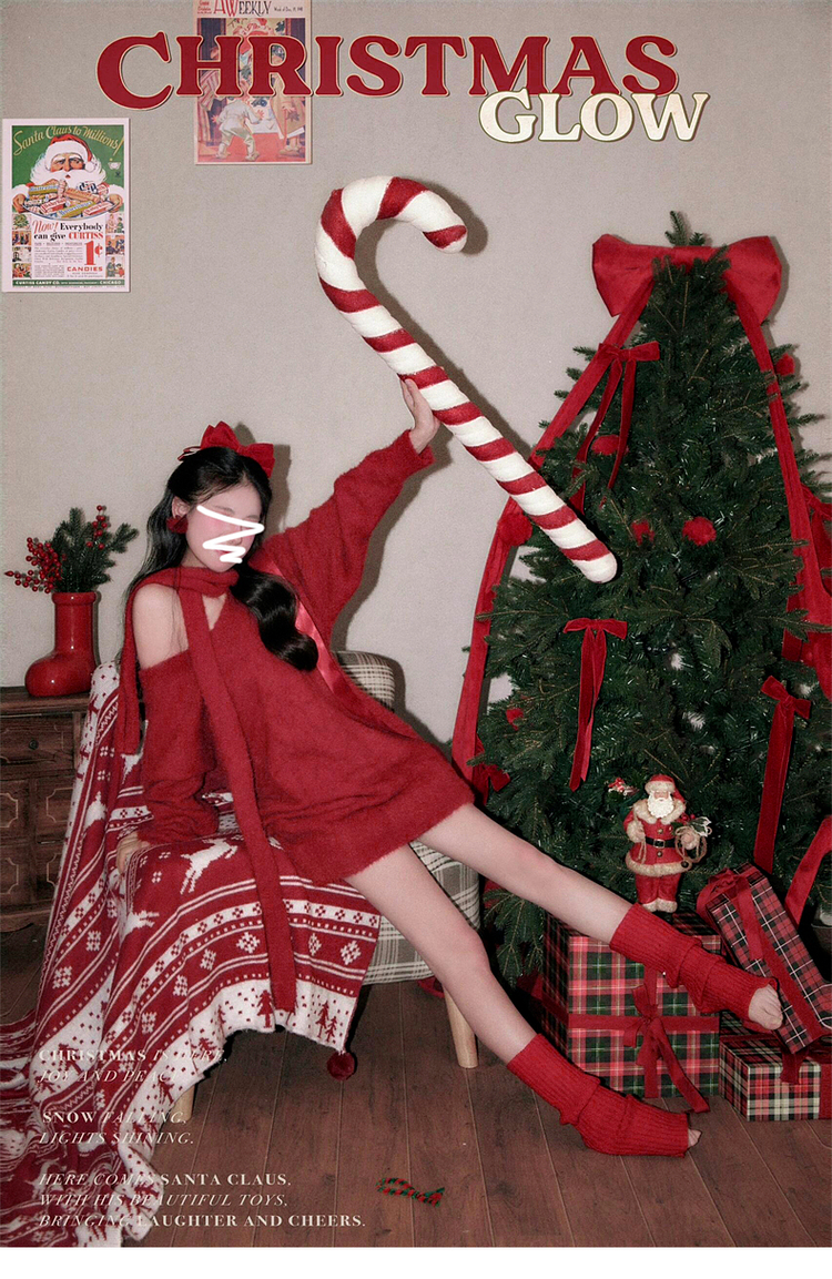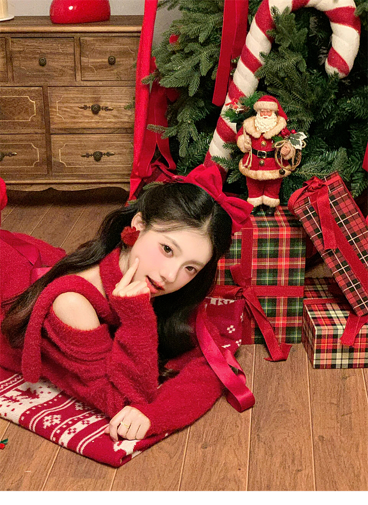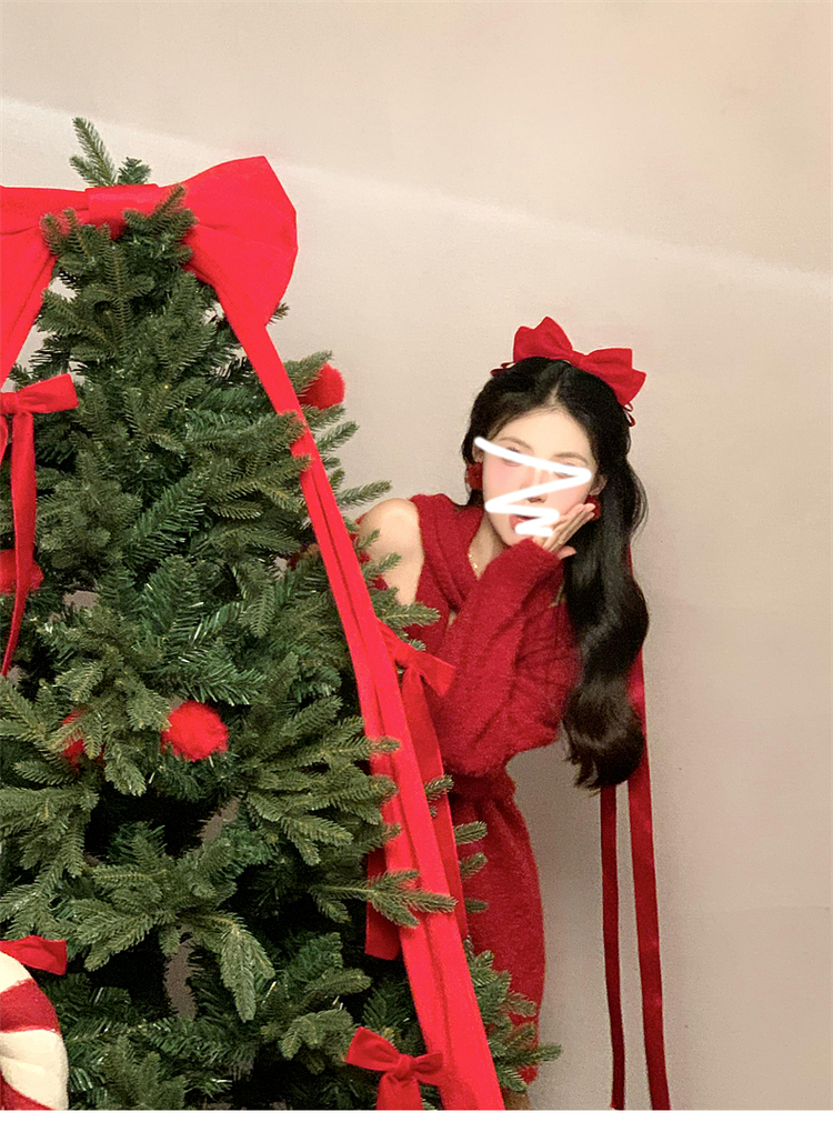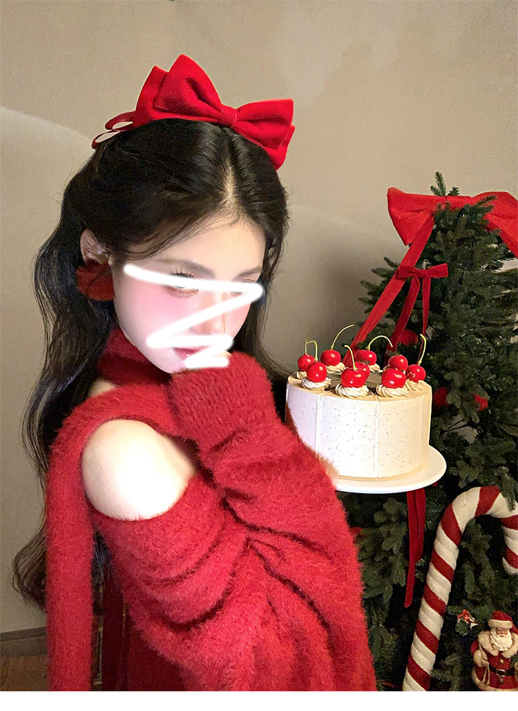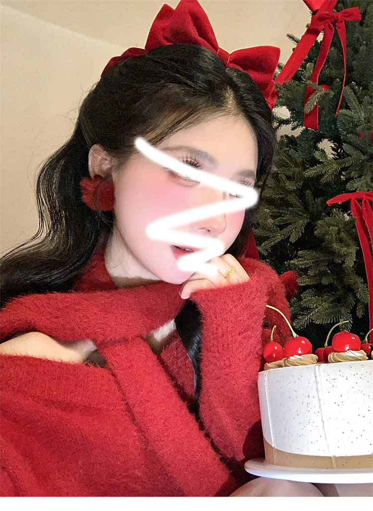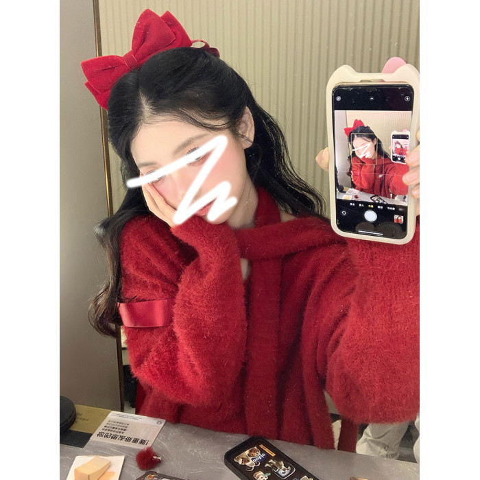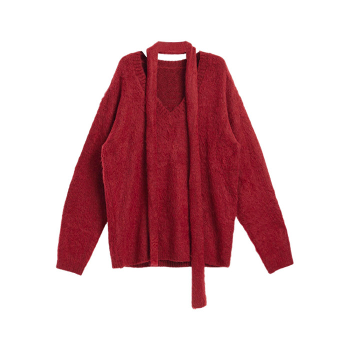 慵懶風聖誕紅色V領毛衣女秋冬季2025新款高級感掛脖上衣冬季穿搭