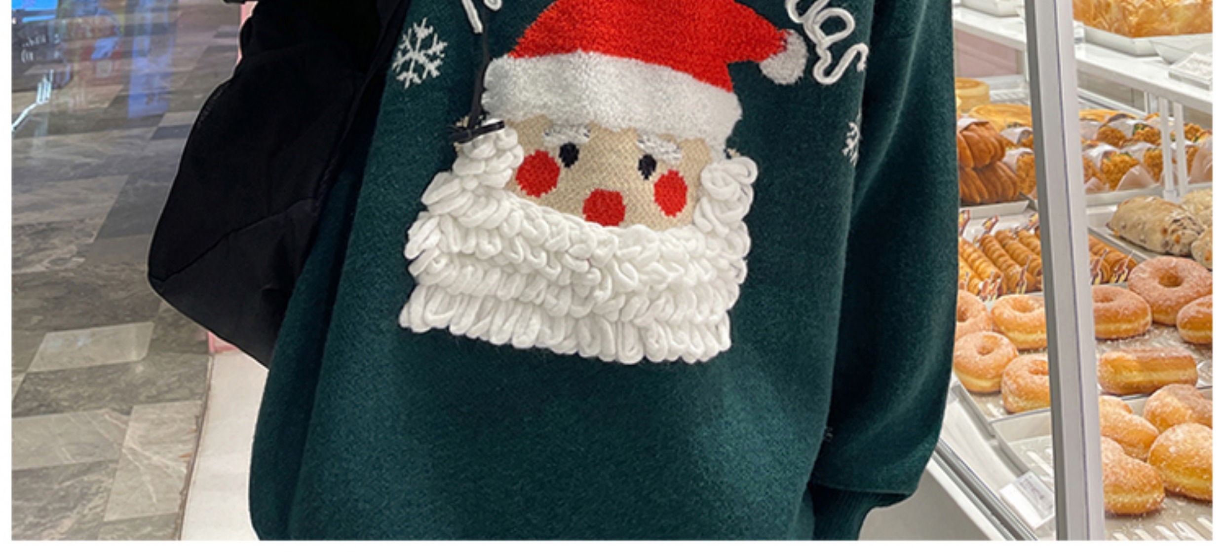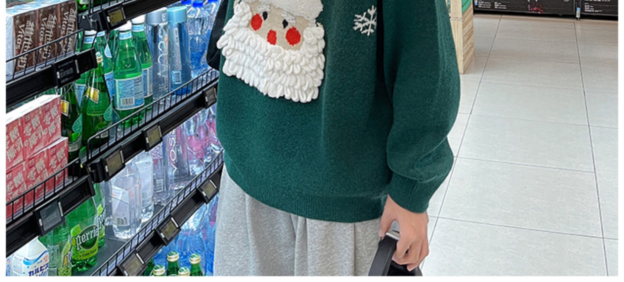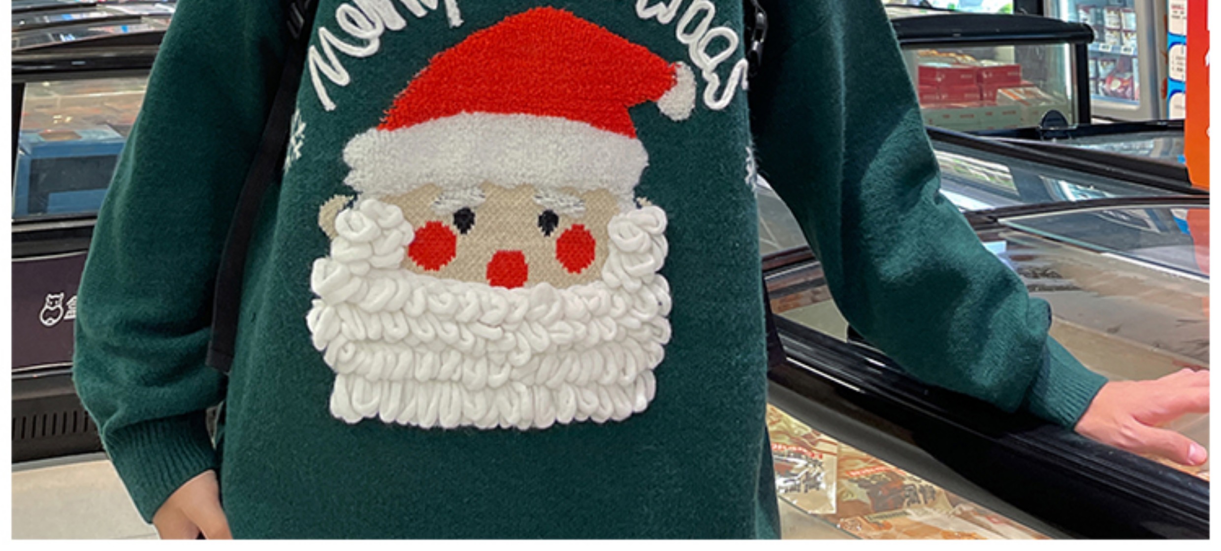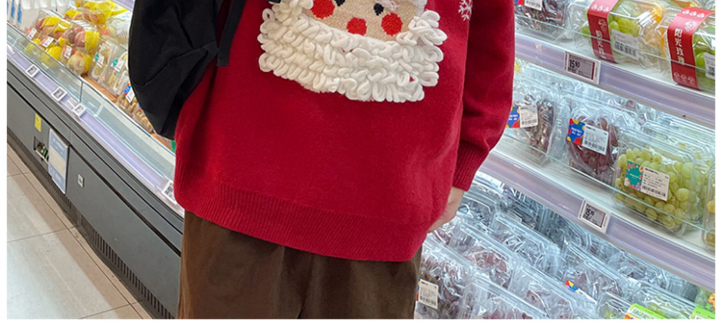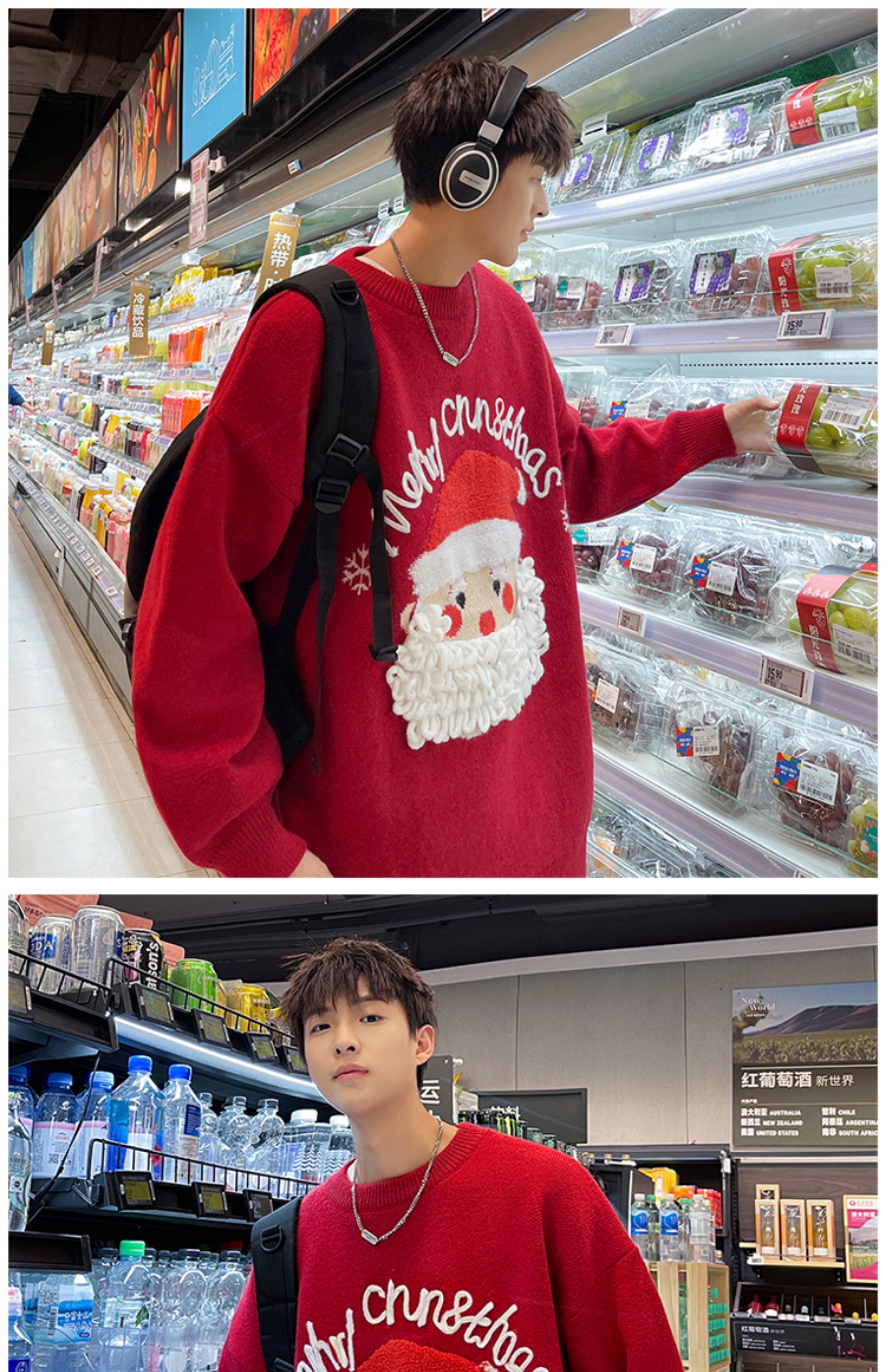 聖誕老人圓領毛衣男秋冬季美式ins潮牌情侶裝寬松百搭休閒針織衫