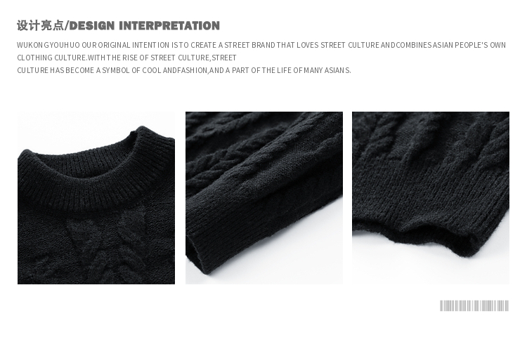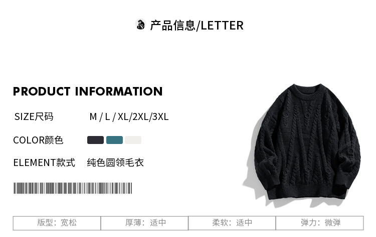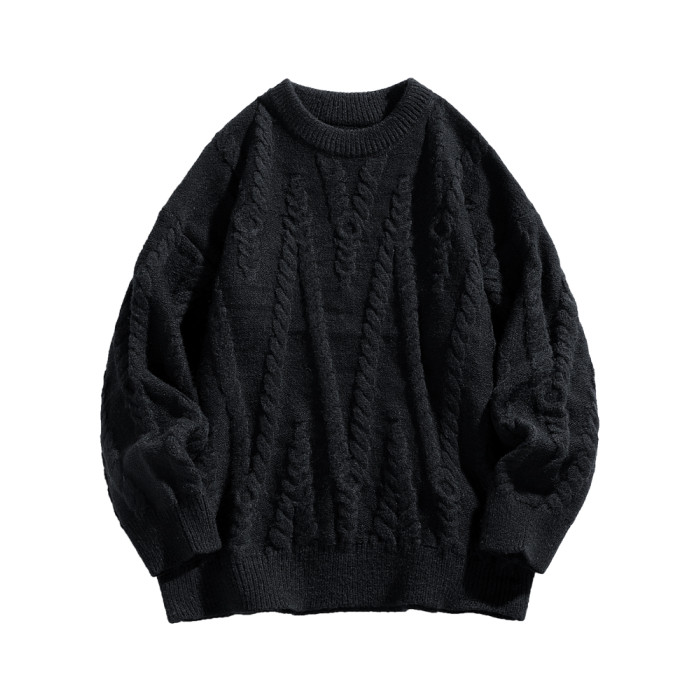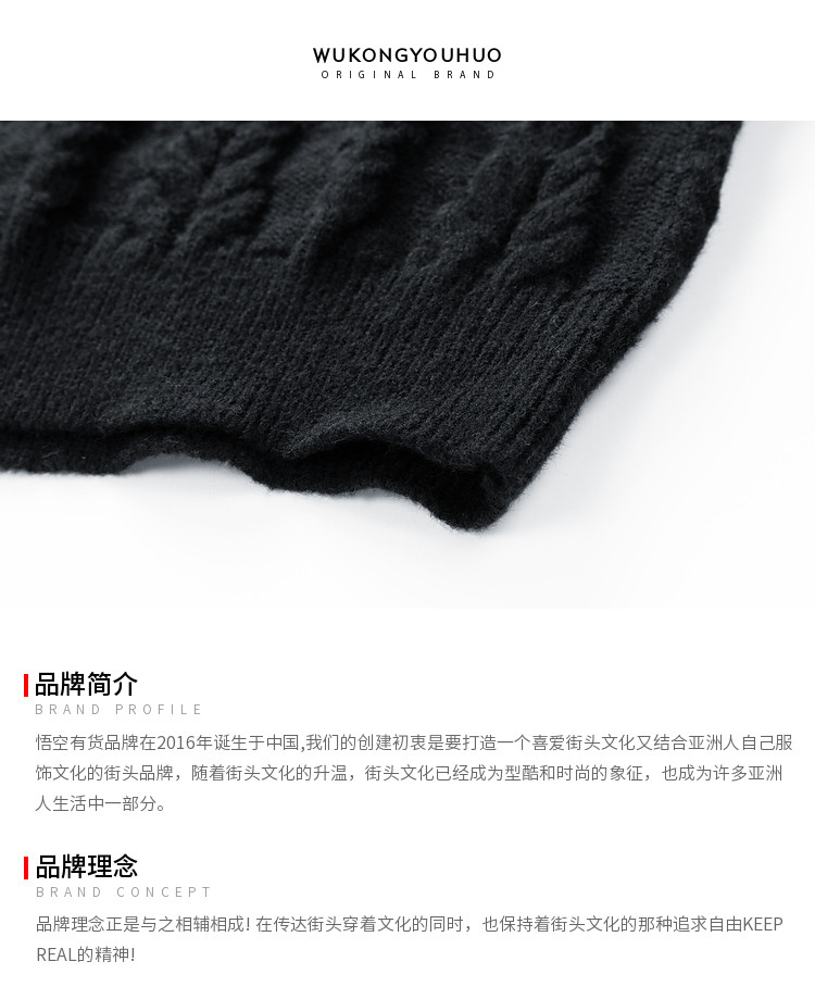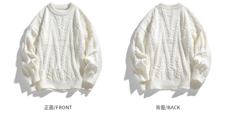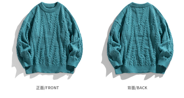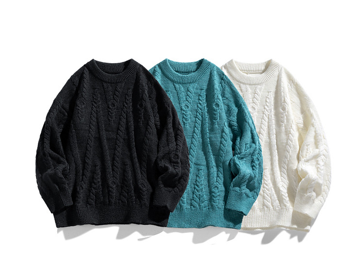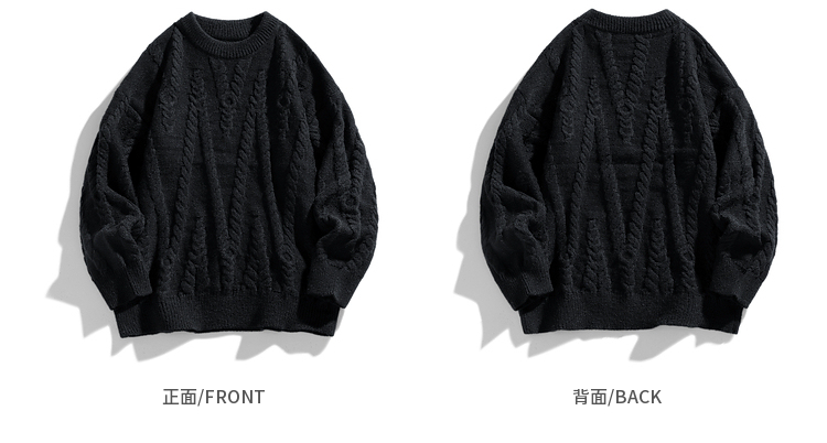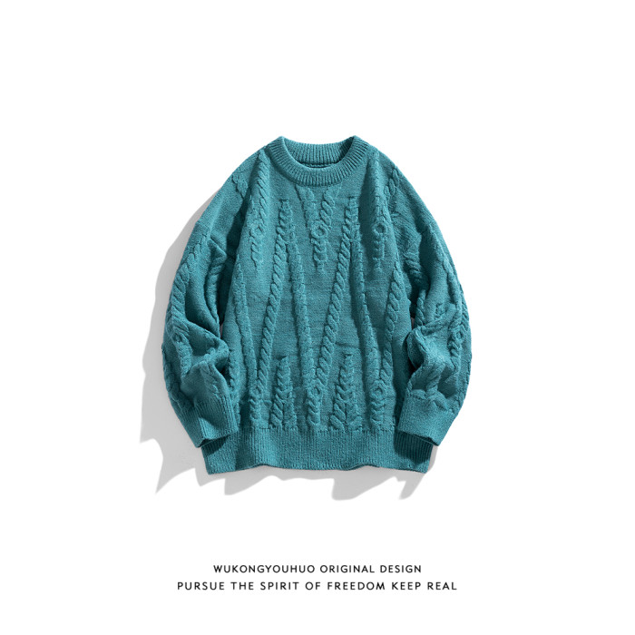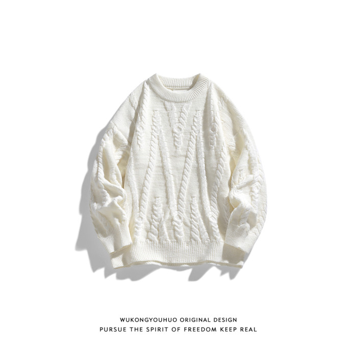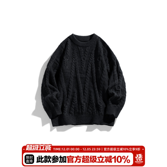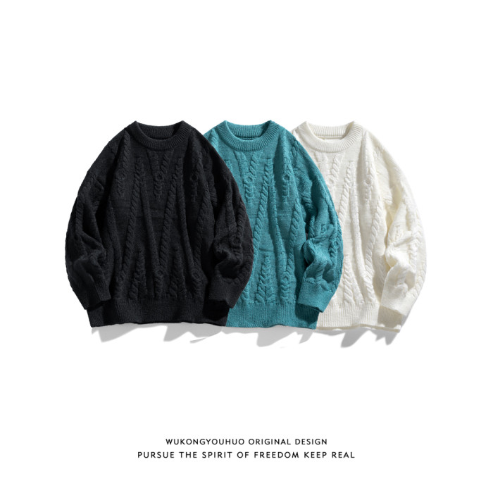 悟空有貨復古日系麻花內搭圓領毛衣男秋季寬松百搭休閒打底針織衫
