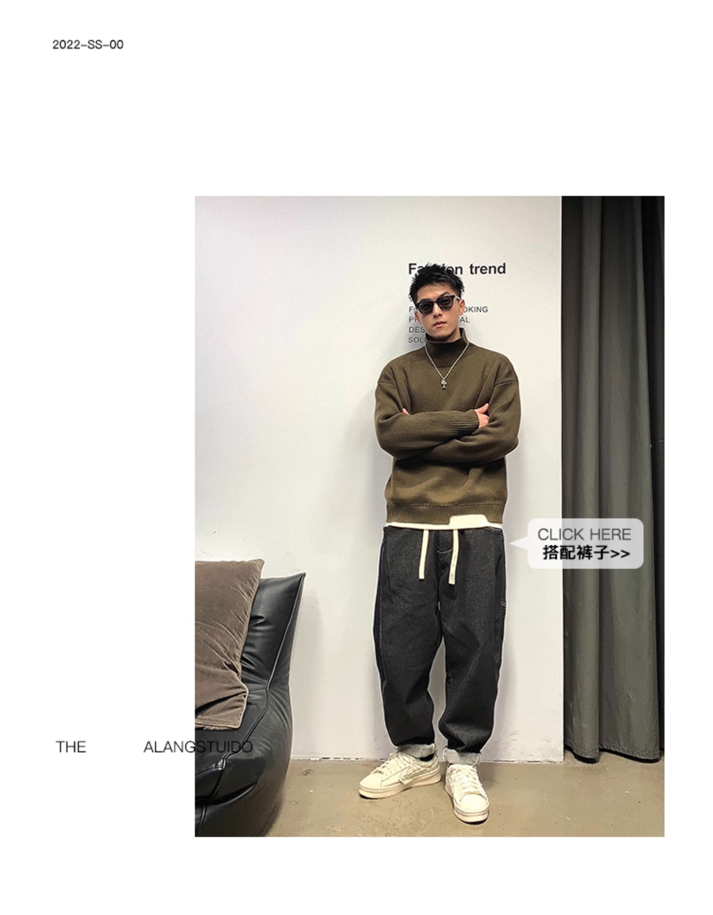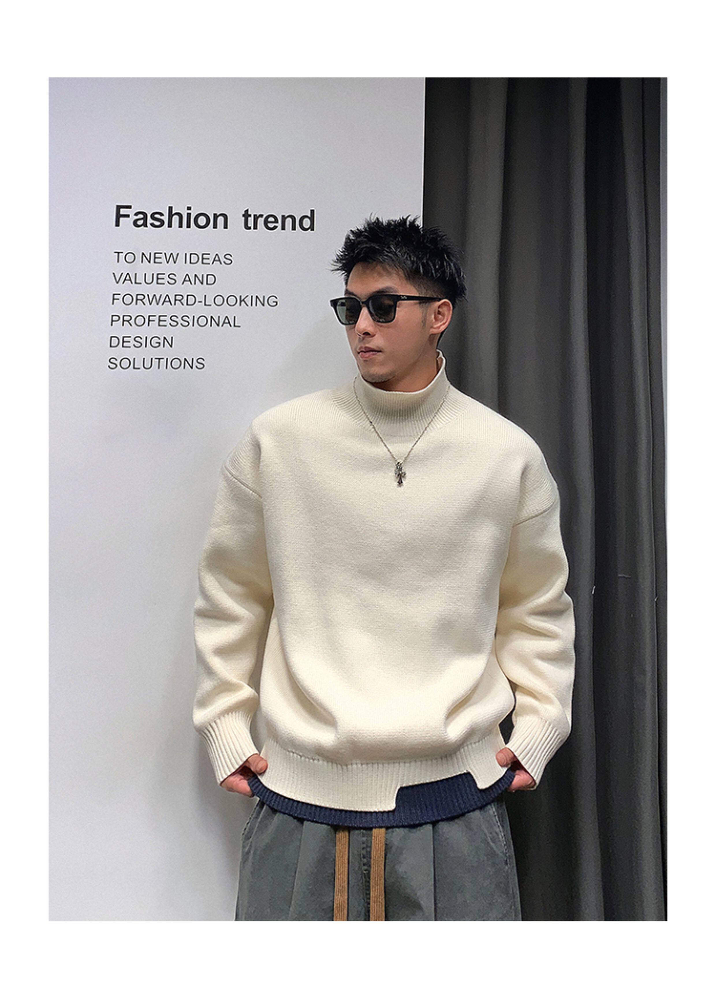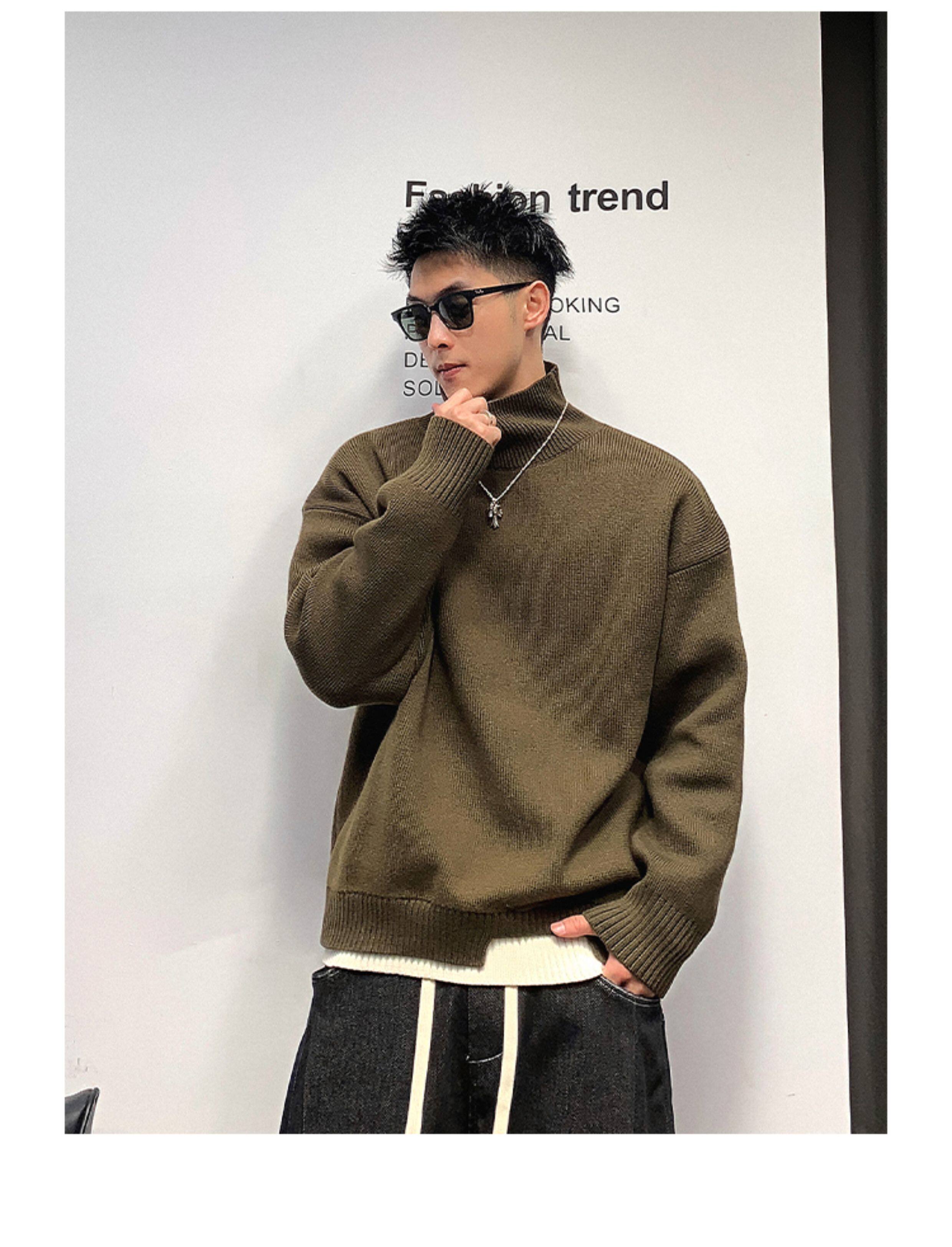徐太浪高級感純色半高領毛衣男秋冬休閒慵懶風保暖內搭打底衫上衣