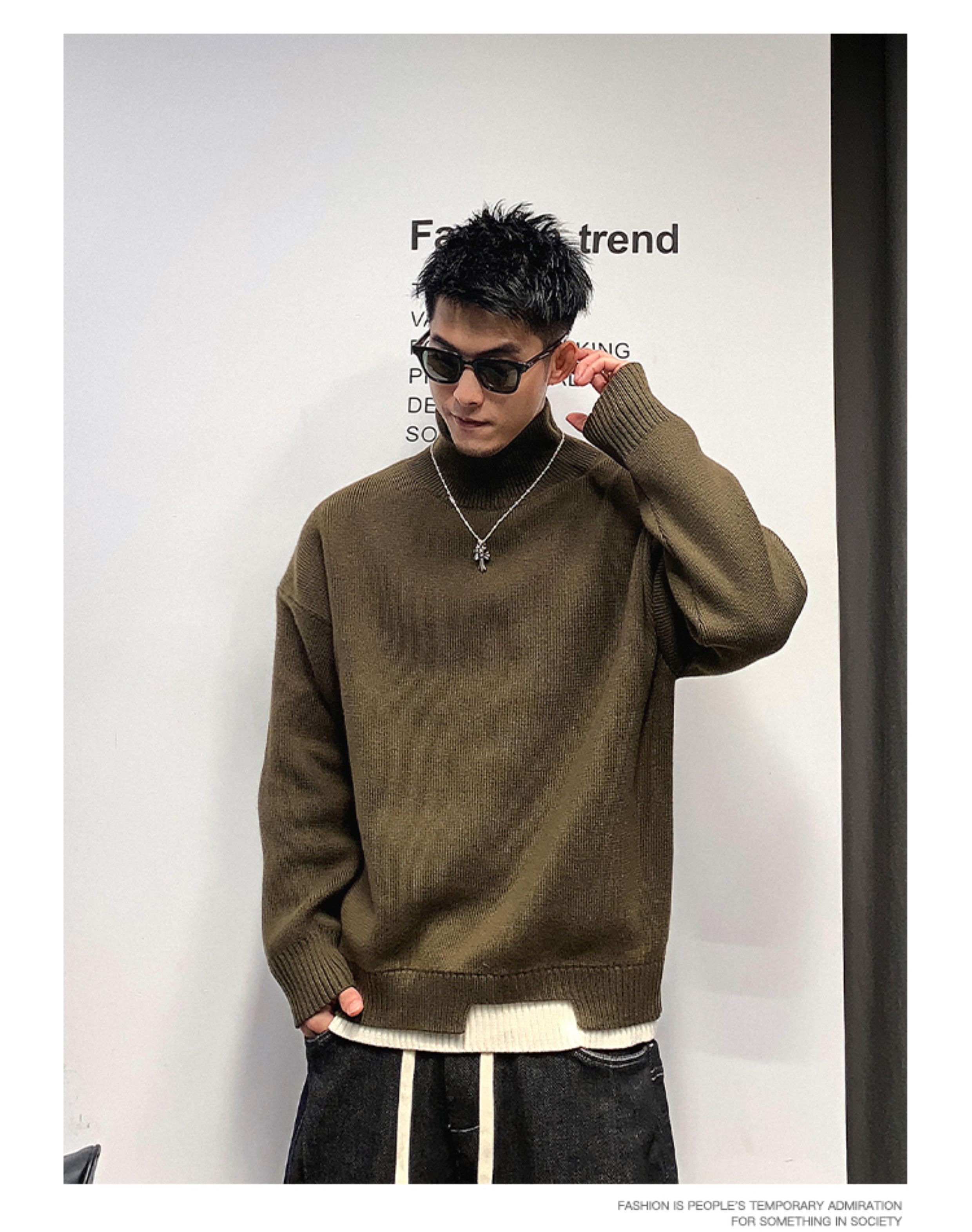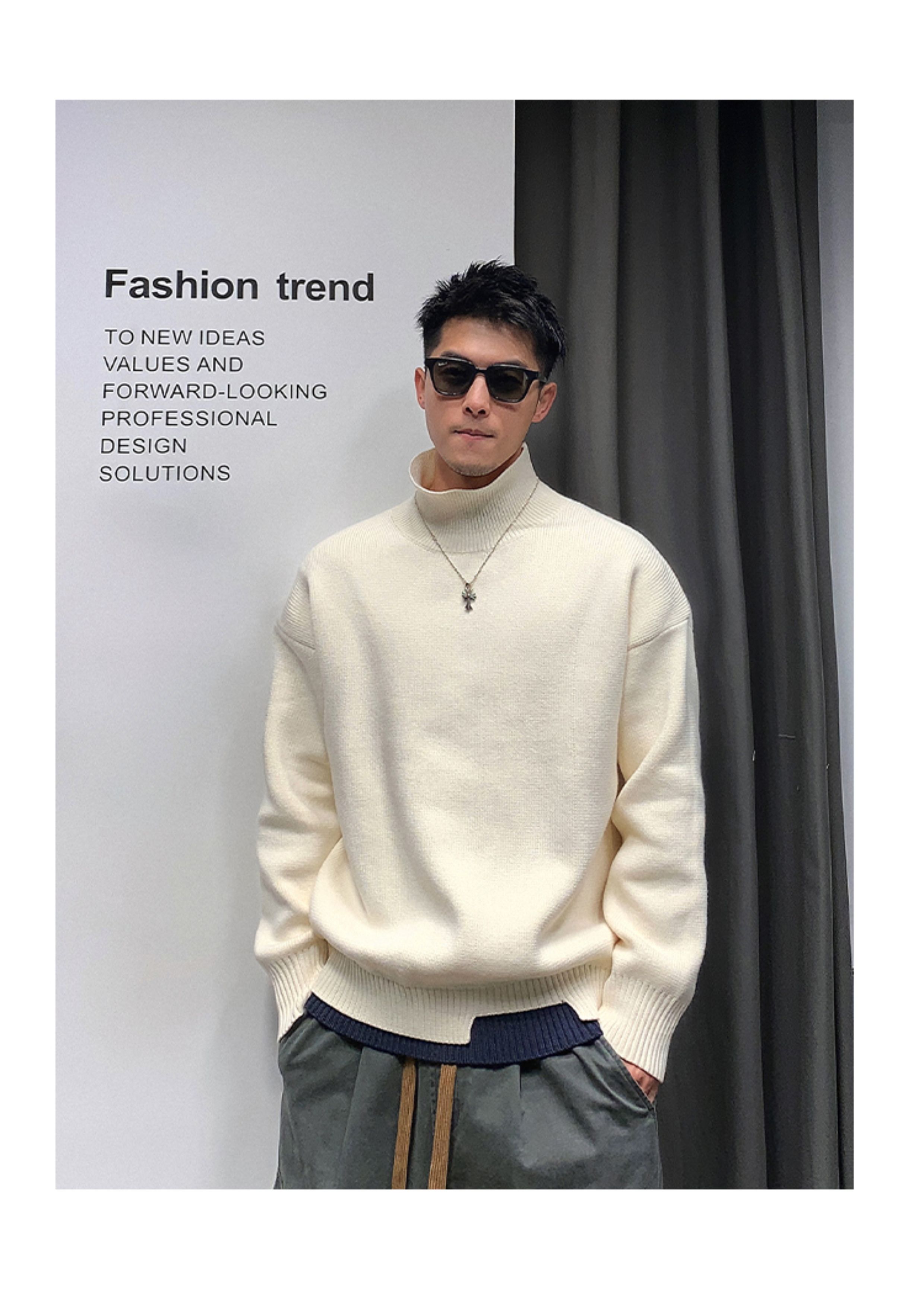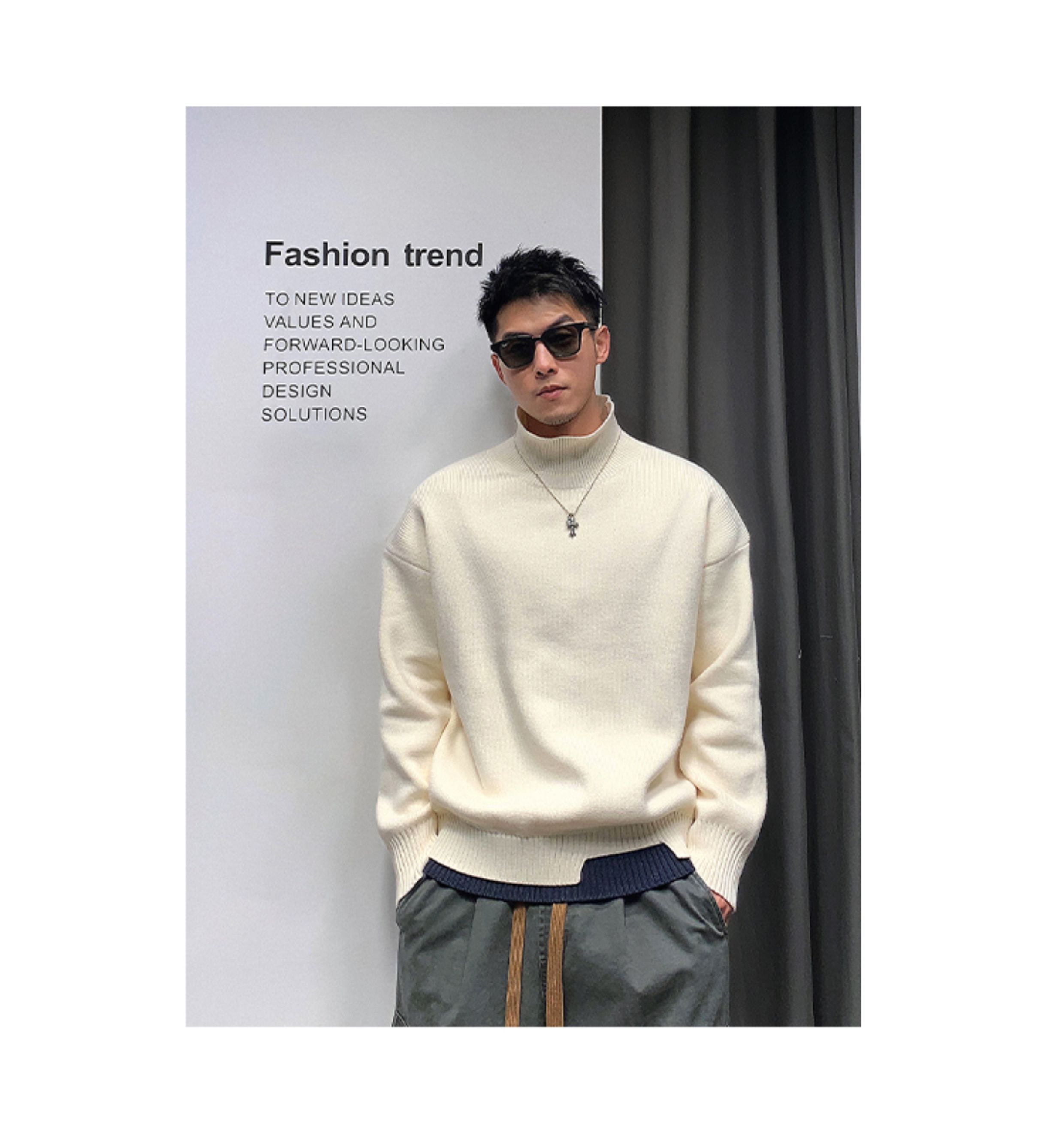 徐太浪高級感純色半高領毛衣男秋冬休閒慵懶風保暖內搭打底衫上衣