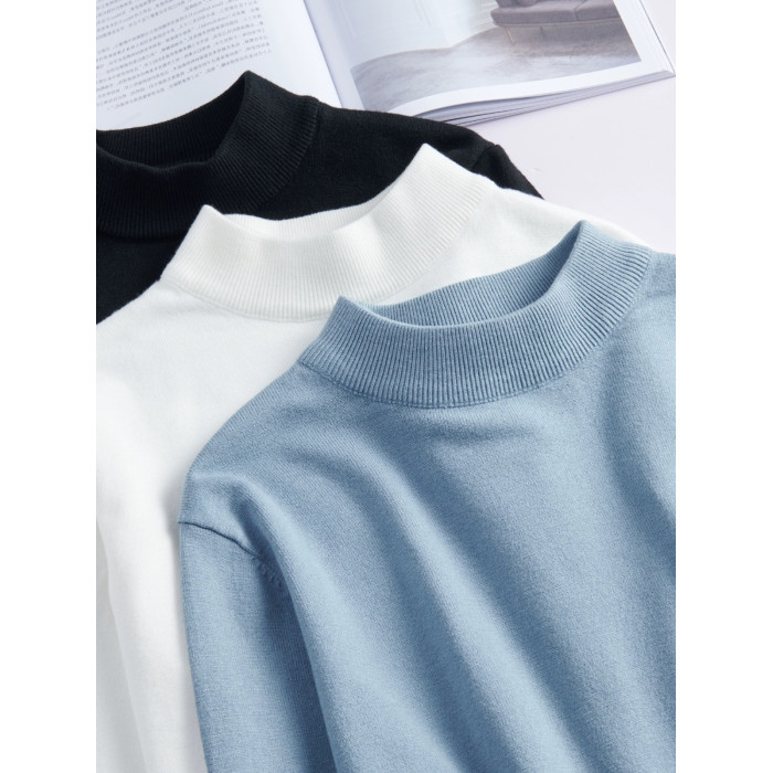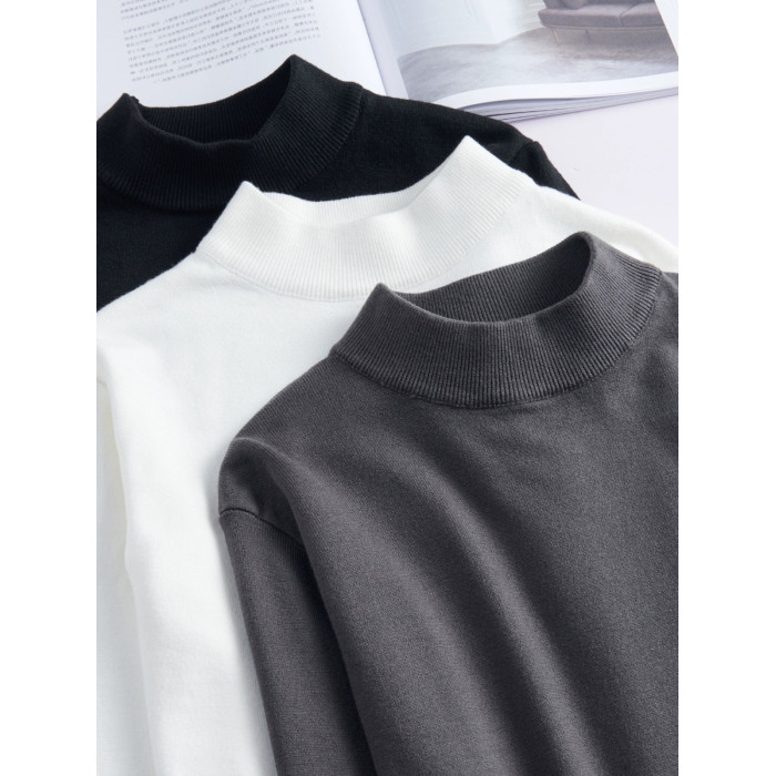 半高領毛衣男春秋款加絨加厚中領打底衫男內搭針織衫純色秋冬上衣