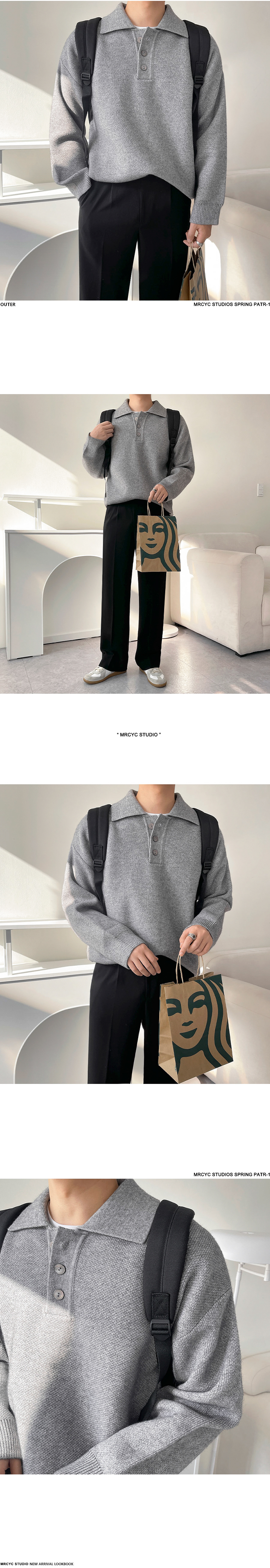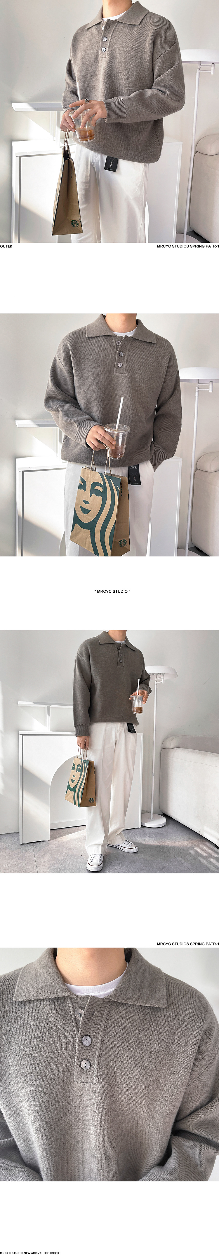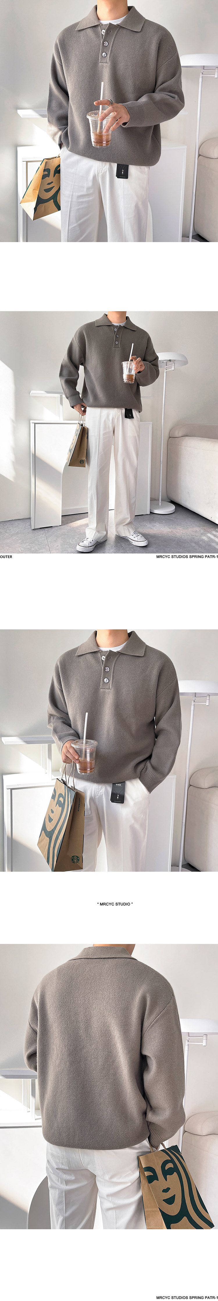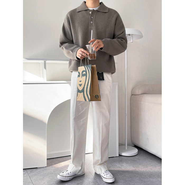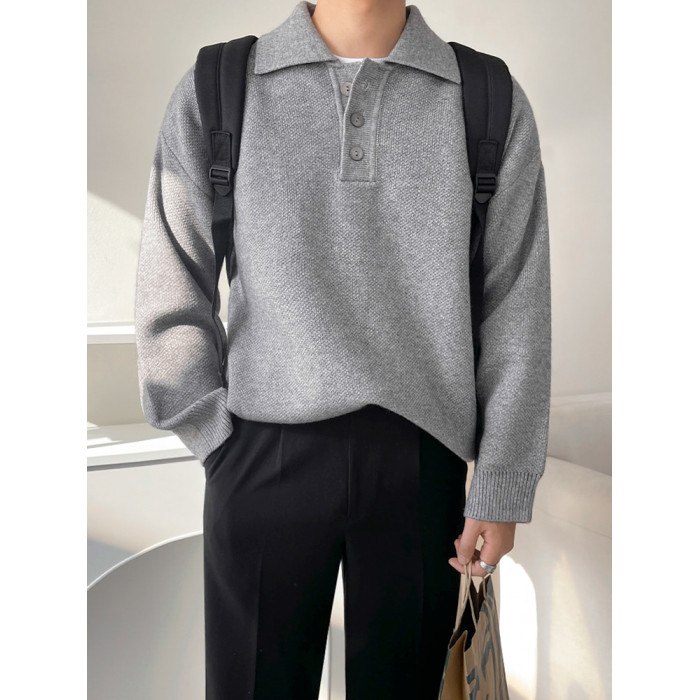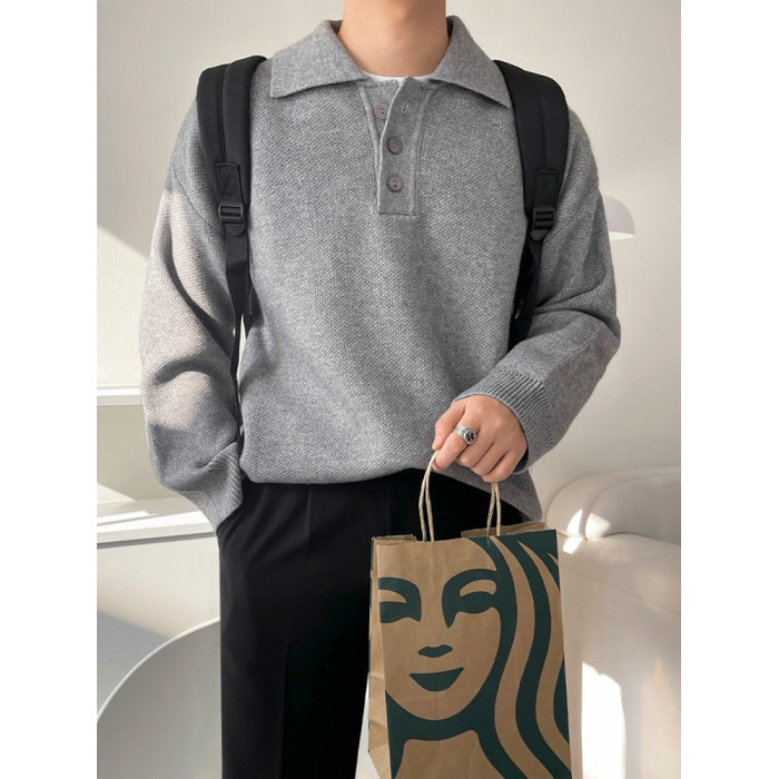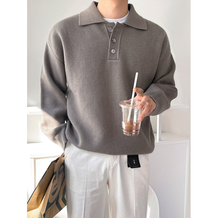 MRCYC休閒翻領針織衫男士秋季新款韓系潮流寬松慵懶風長袖毛衣