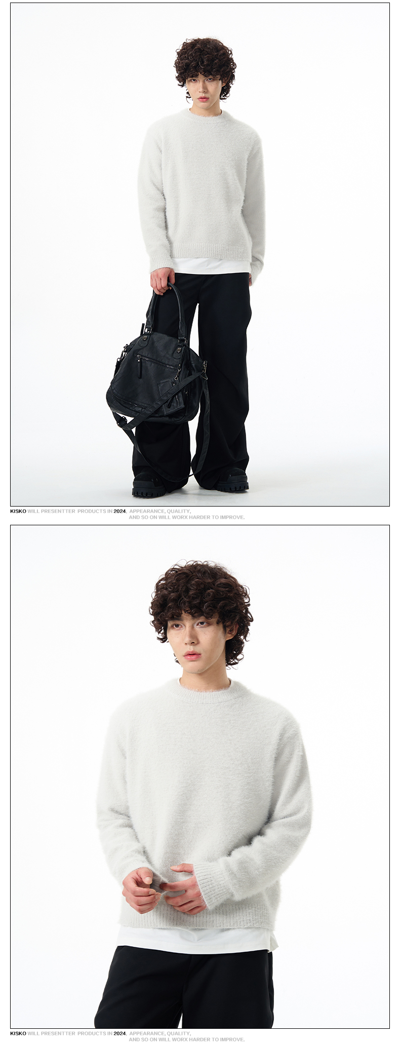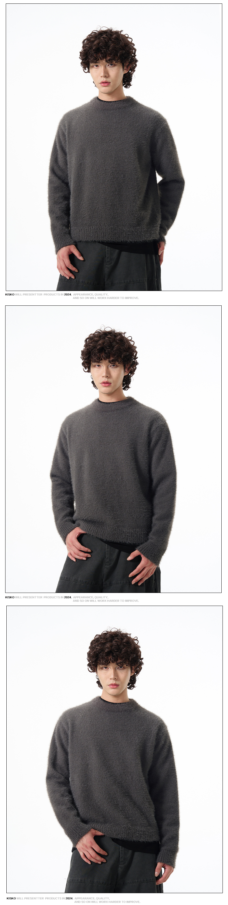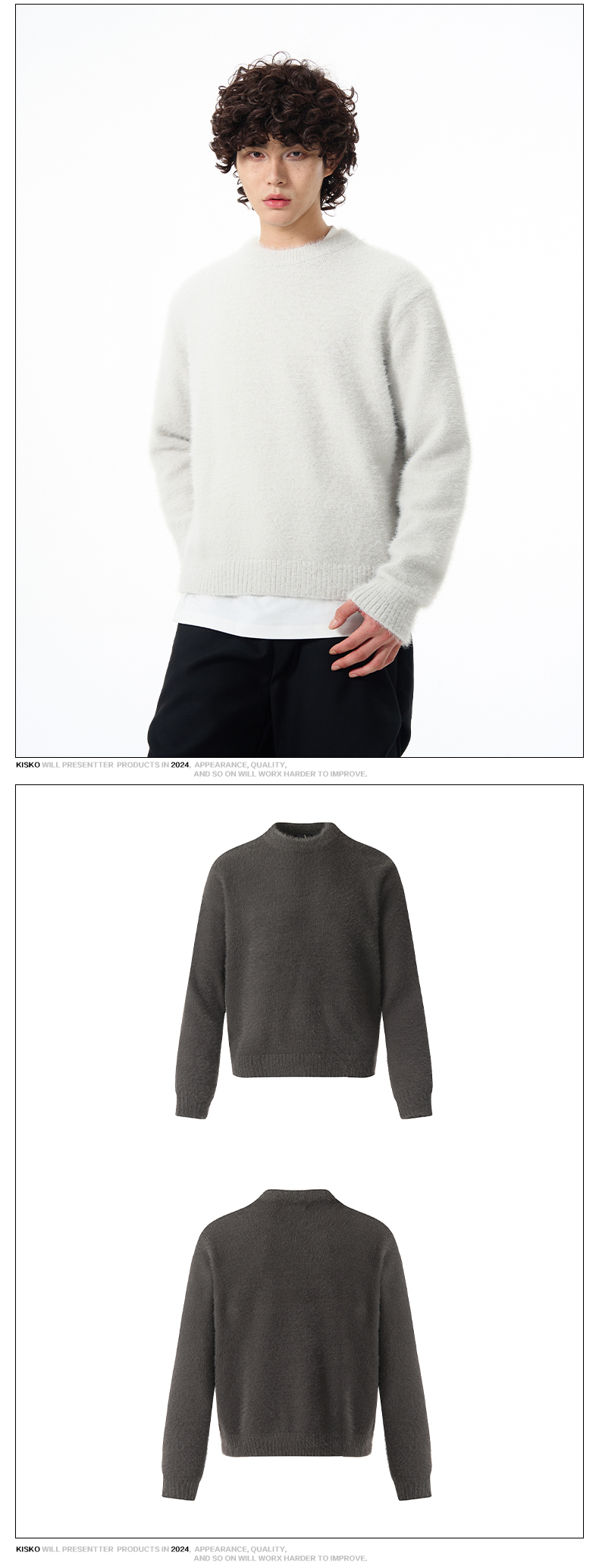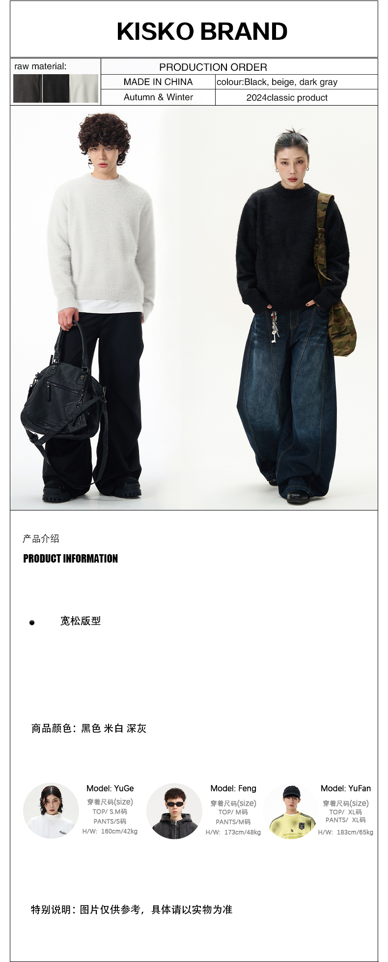 KISKO美式復古純色套頭慵懶毛衣男女秋冬休閒圓領內搭針織衫上衣