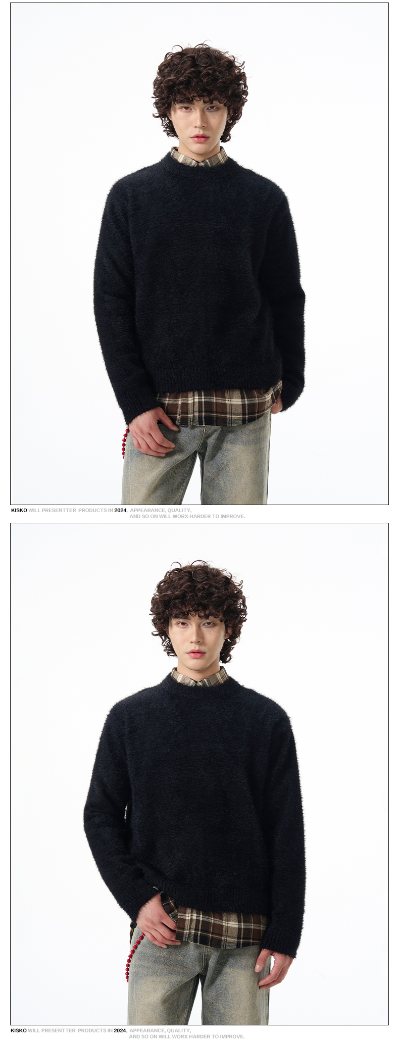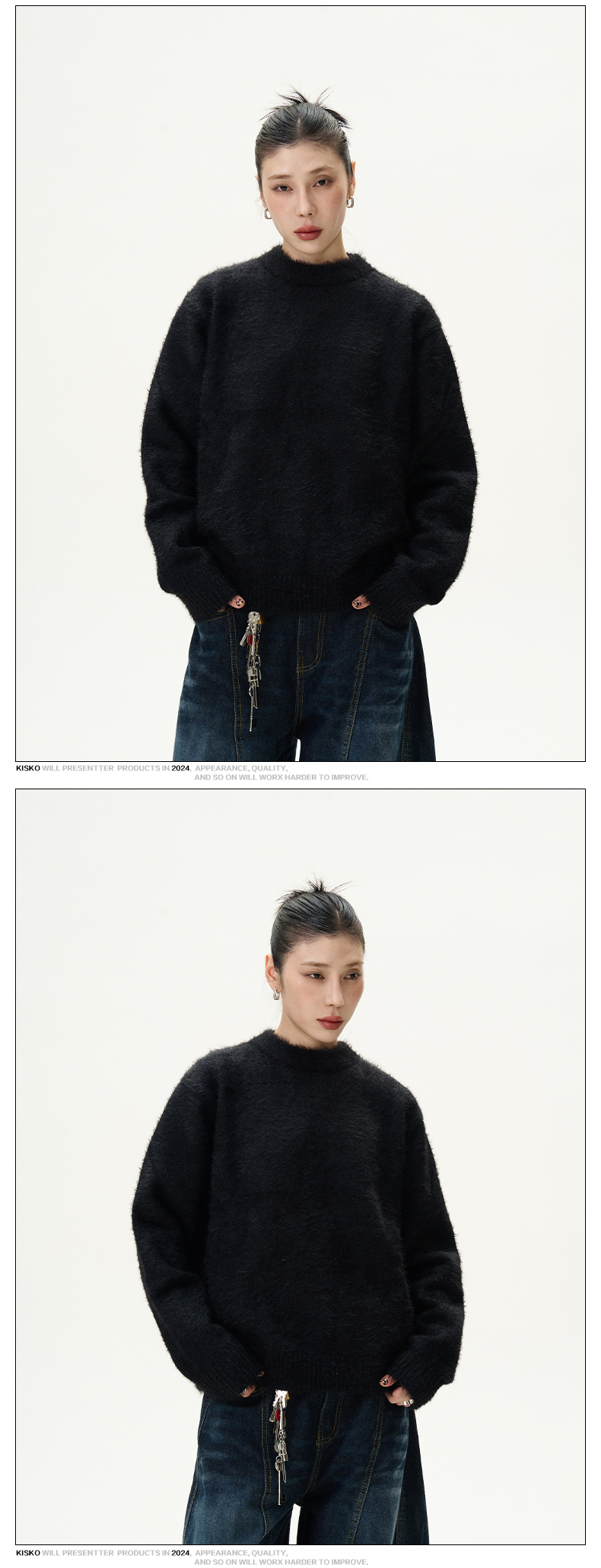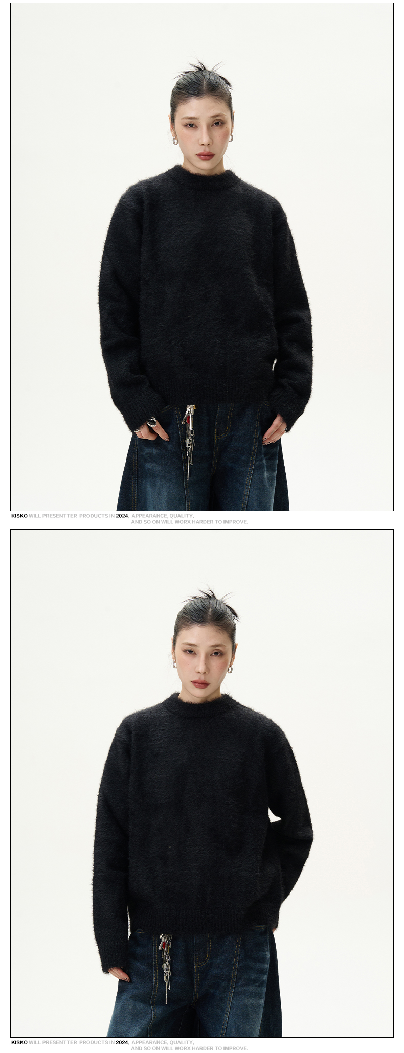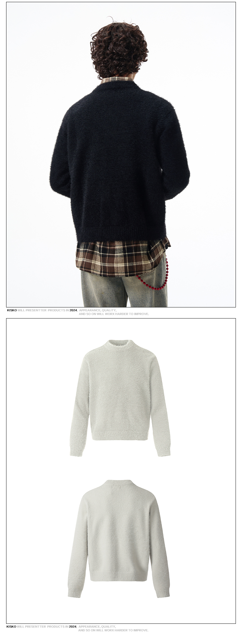 KISKO美式復古純色套頭慵懶毛衣男女秋冬休閒圓領內搭針織衫上衣