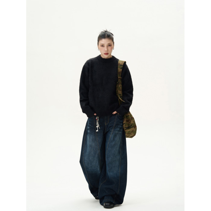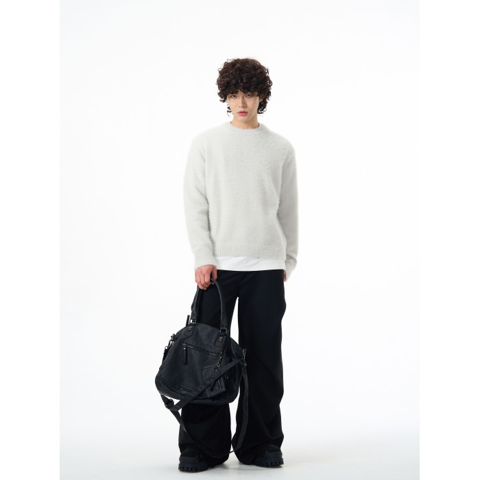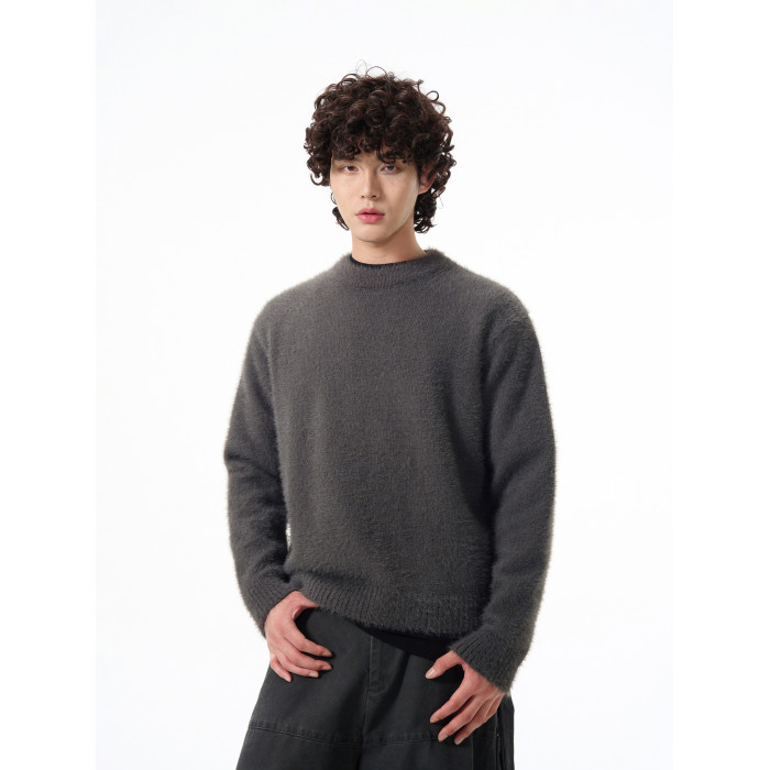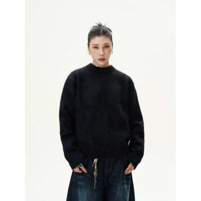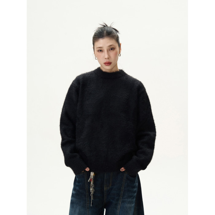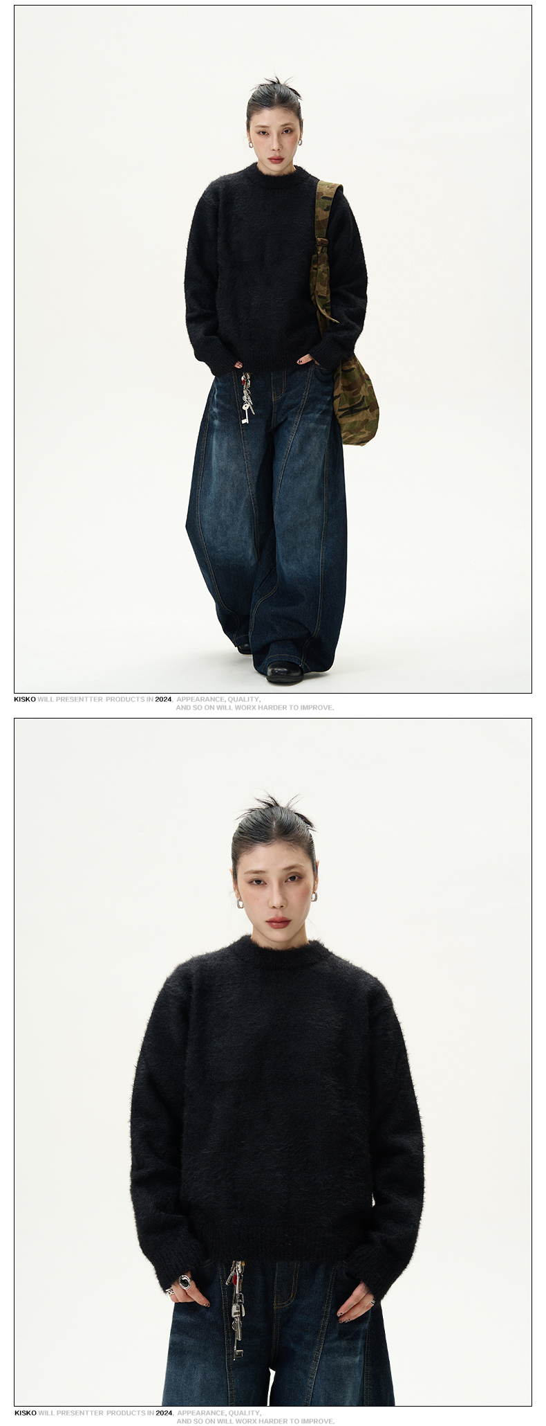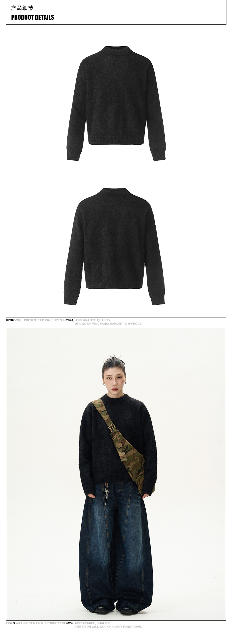 KISKO美式復古純色套頭慵懶毛衣男女秋冬休閒圓領內搭針織衫上衣