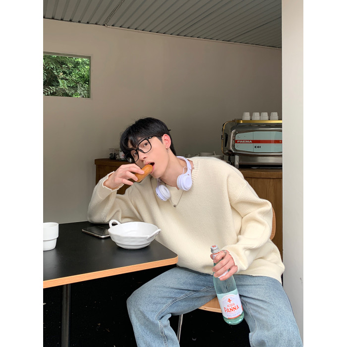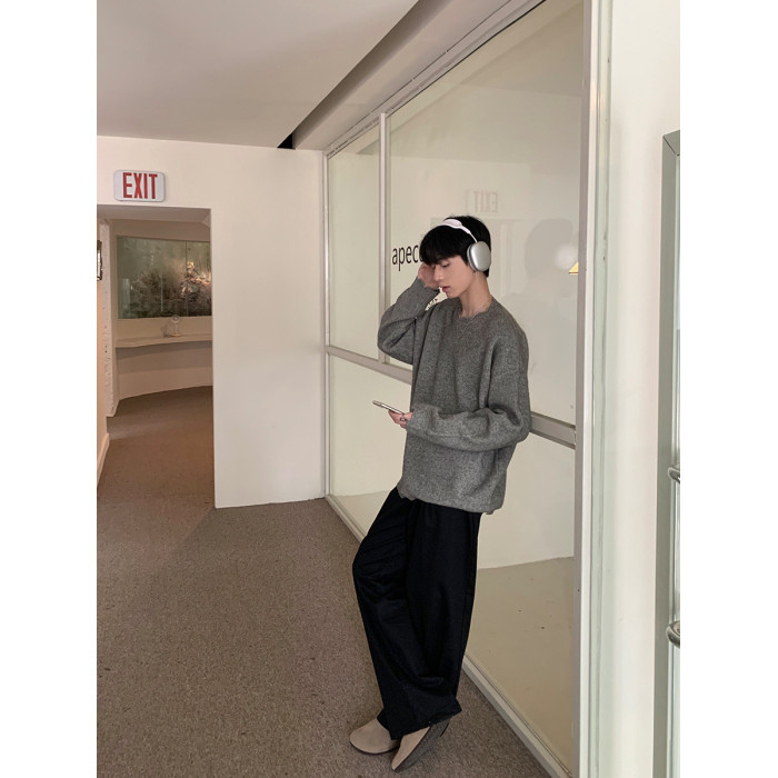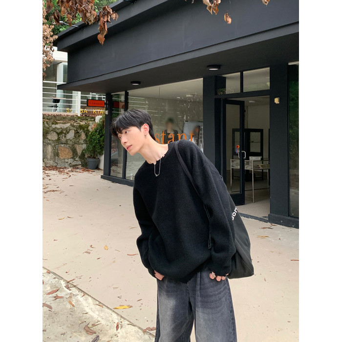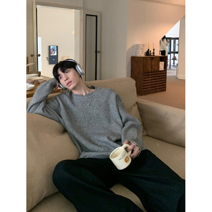 ONELYC1NS破壞風圓領針織毛衣長袖男寬松慵懶純色百搭休閒針織衫