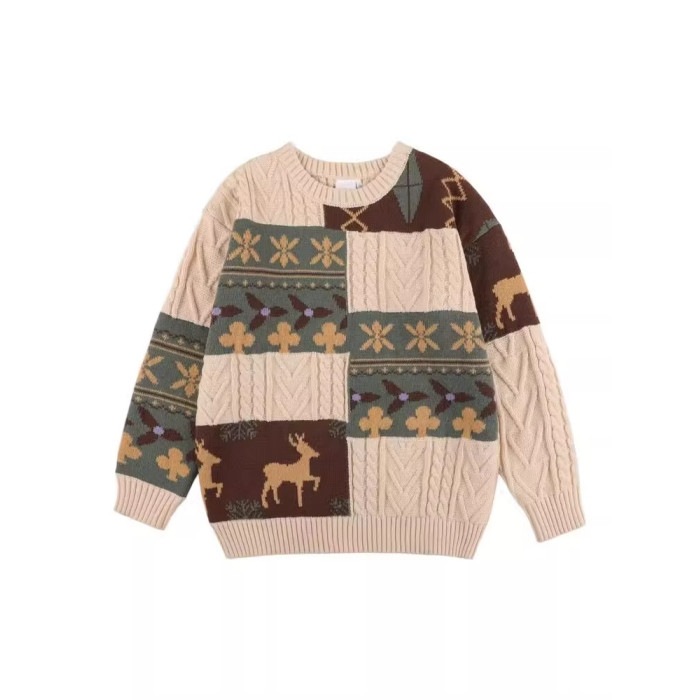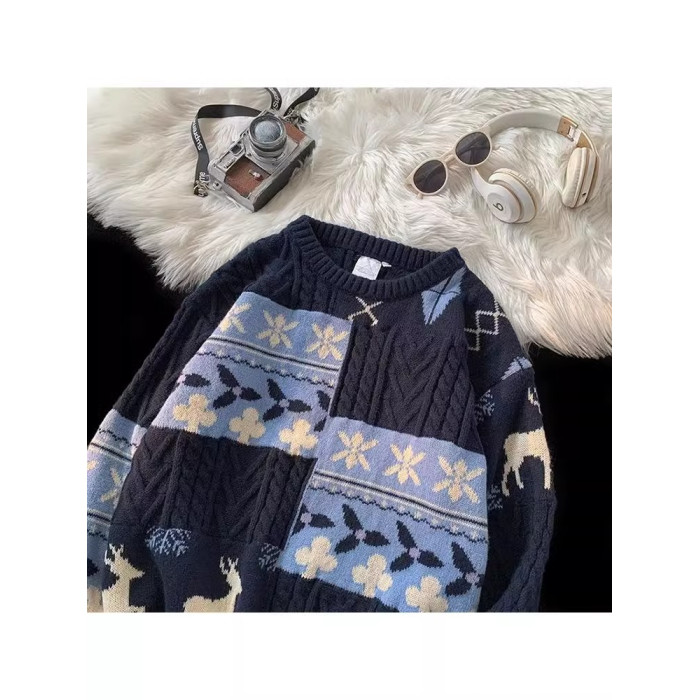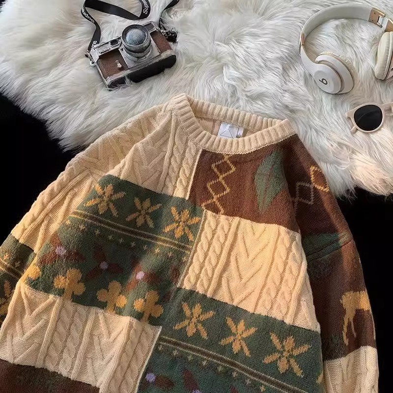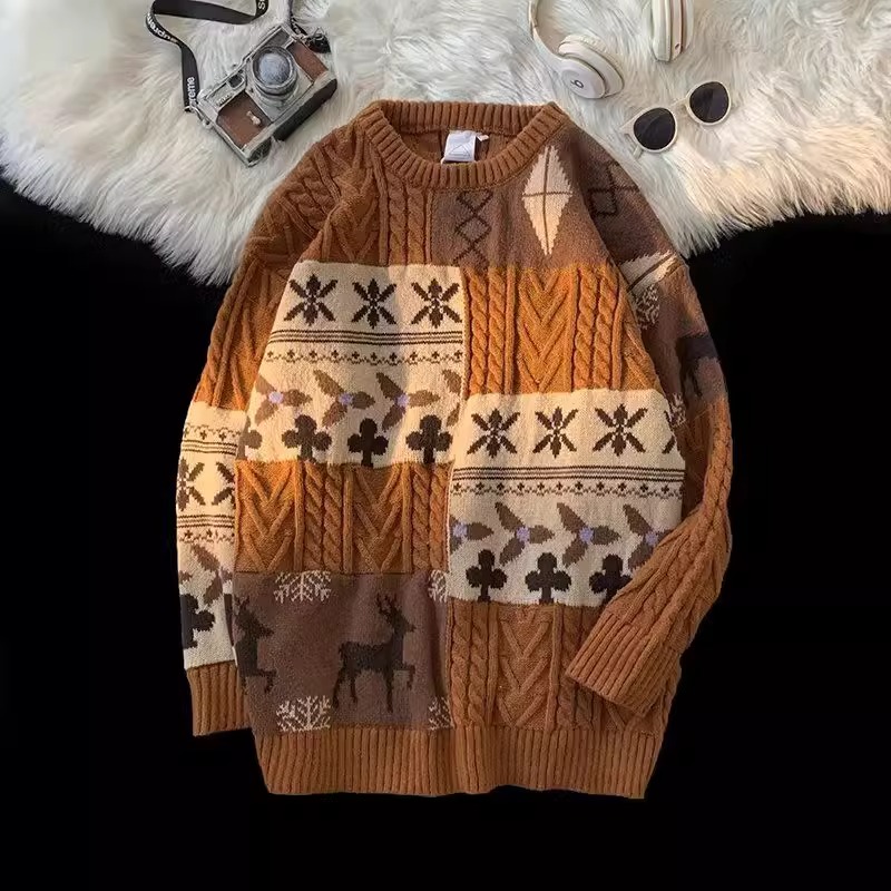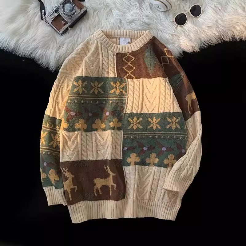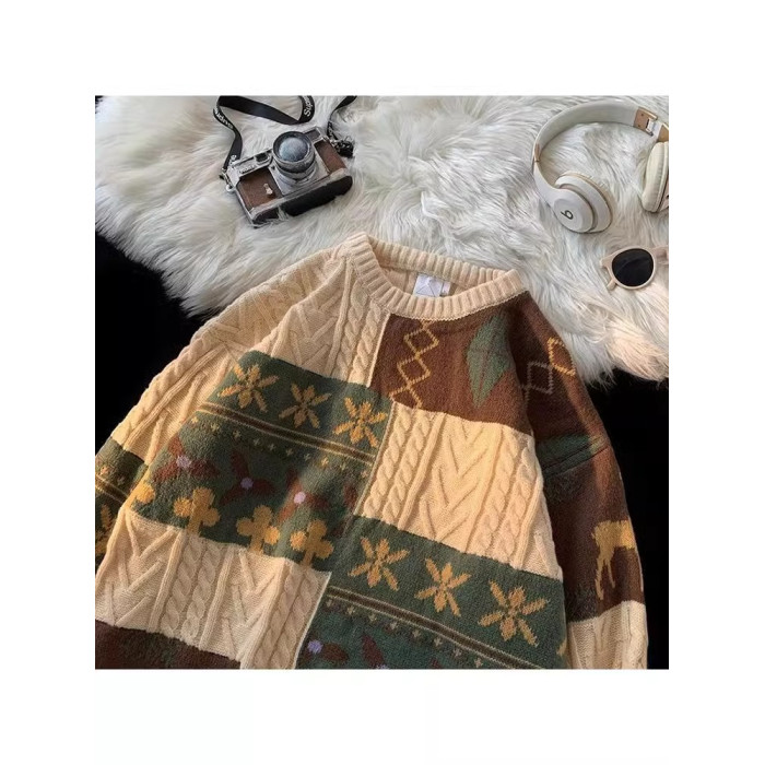 復古撞色毛衣男聖誕潮流大碼慵懶高級寬松外穿情侶百搭針織衫秋冬