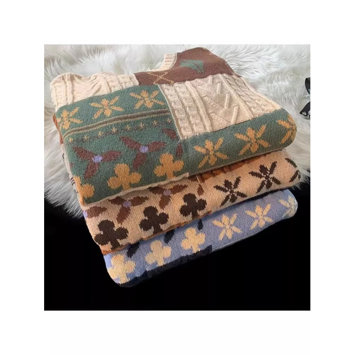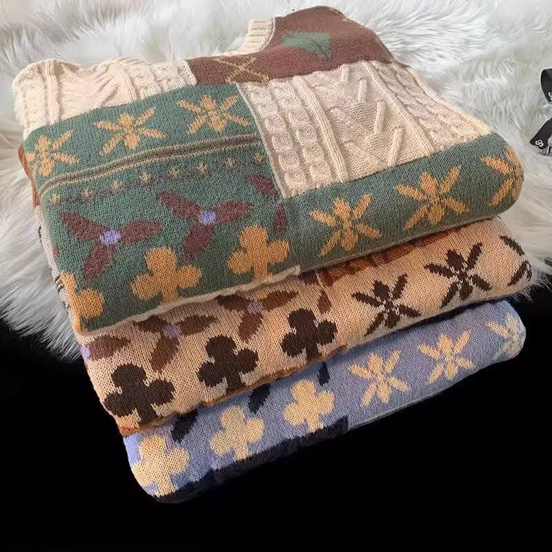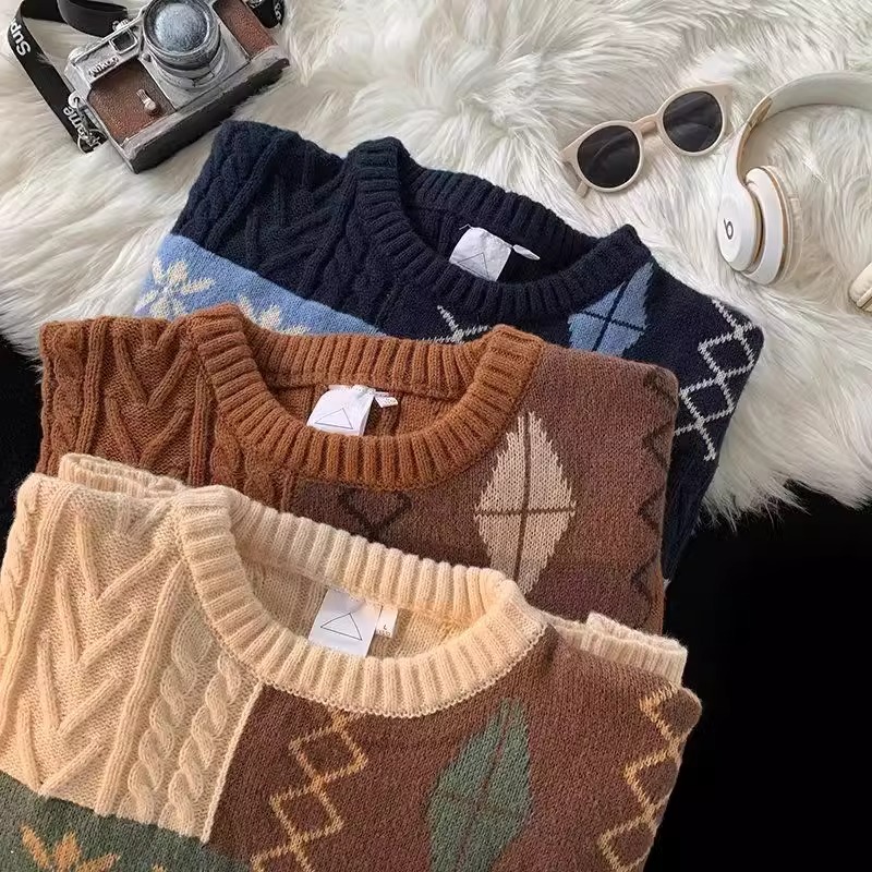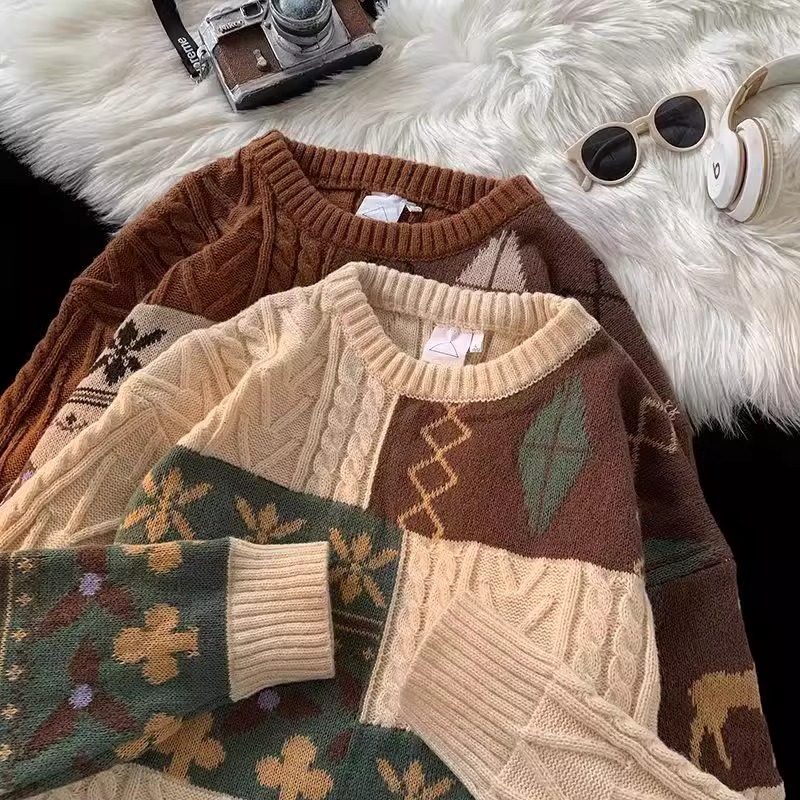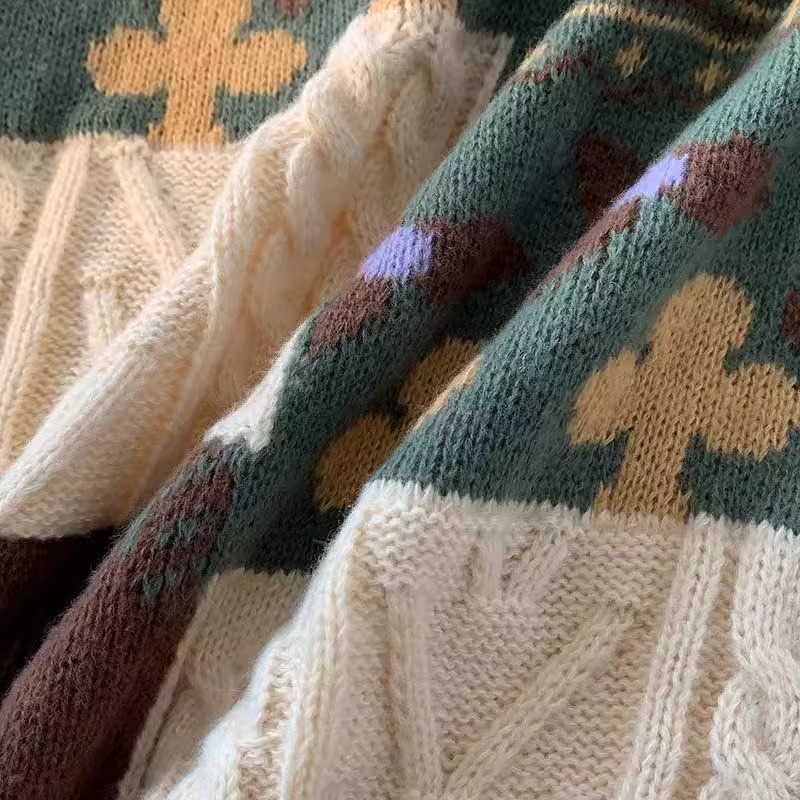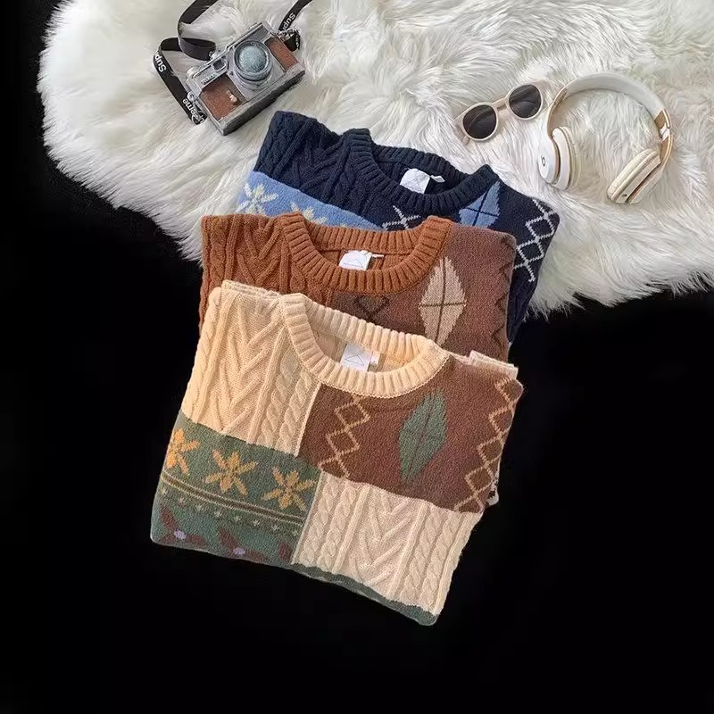 復古撞色毛衣男聖誕潮流大碼慵懶高級寬松外穿情侶百搭針織衫秋冬