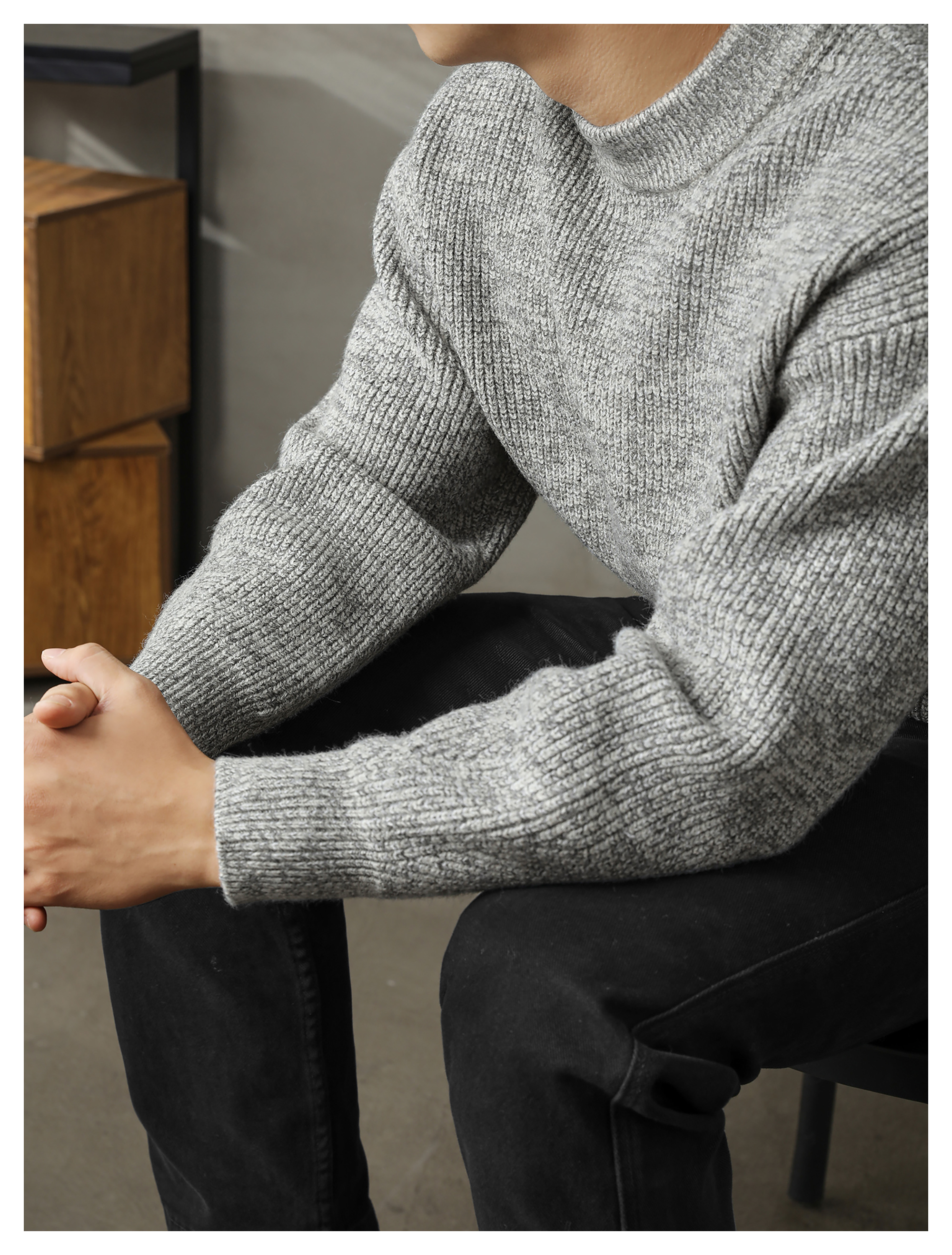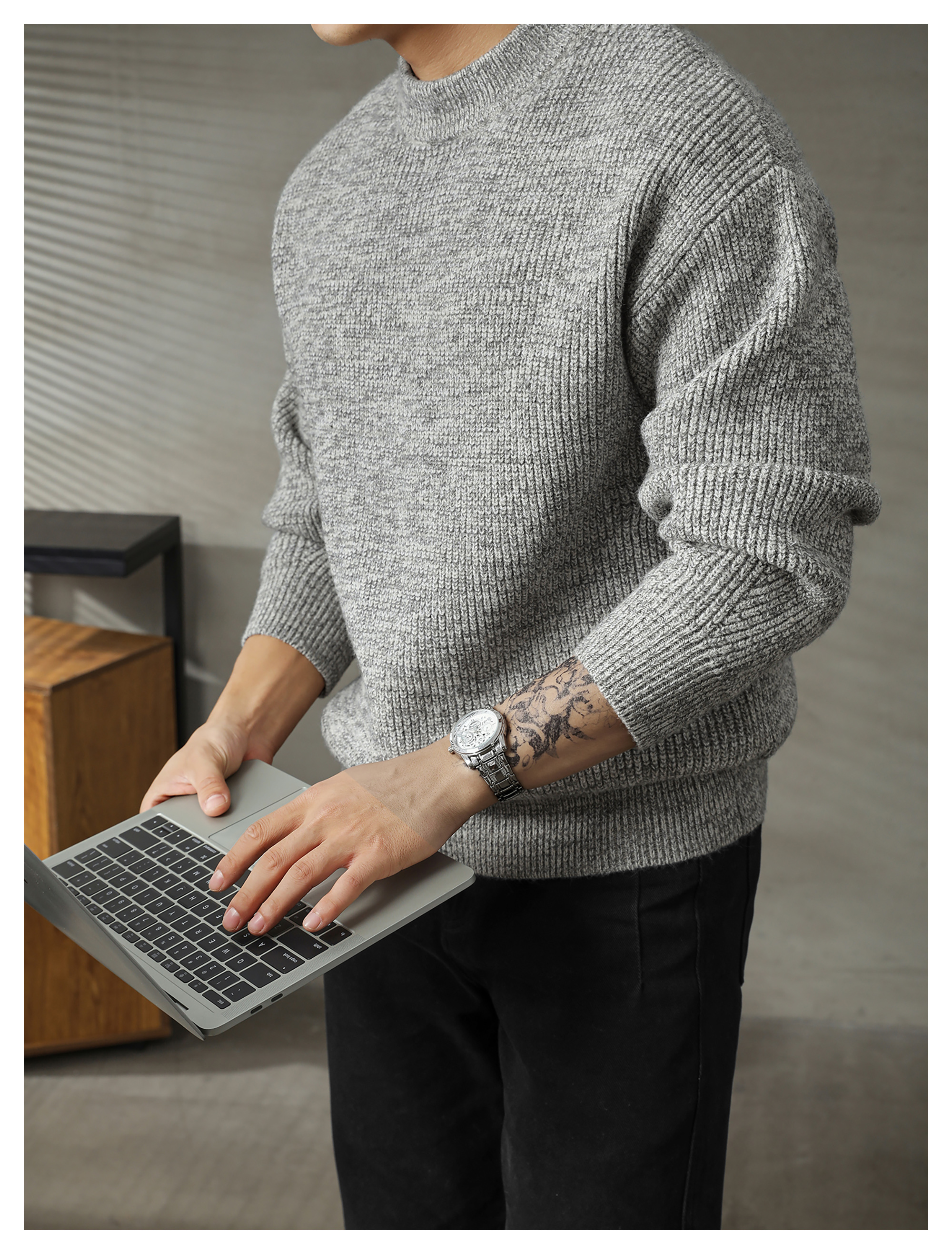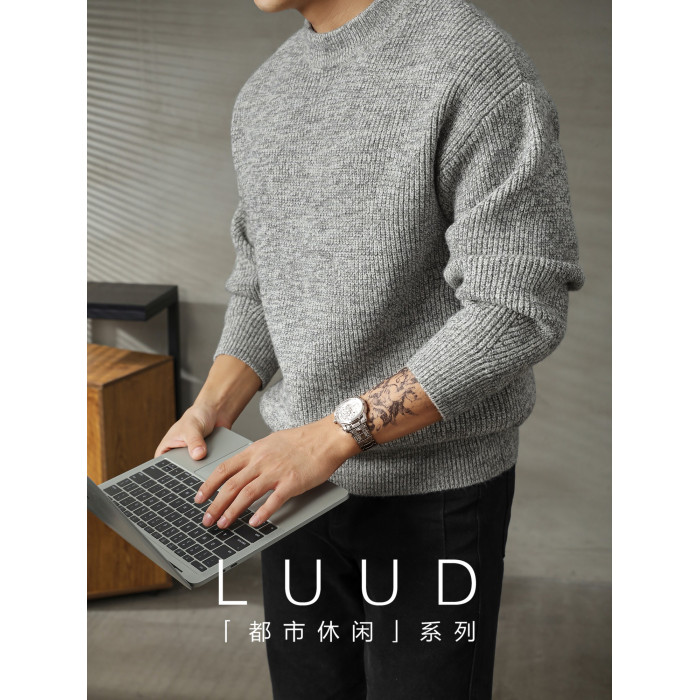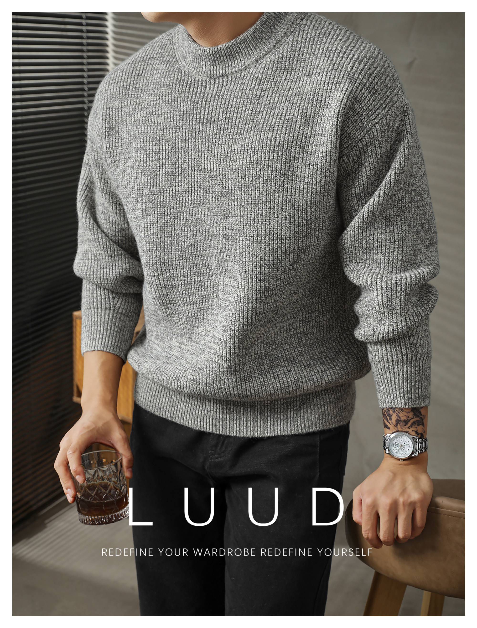 LUUD 圓領套頭毛衣男士2025秋冬保暖提花紋理百搭毛衫休閒針織衫