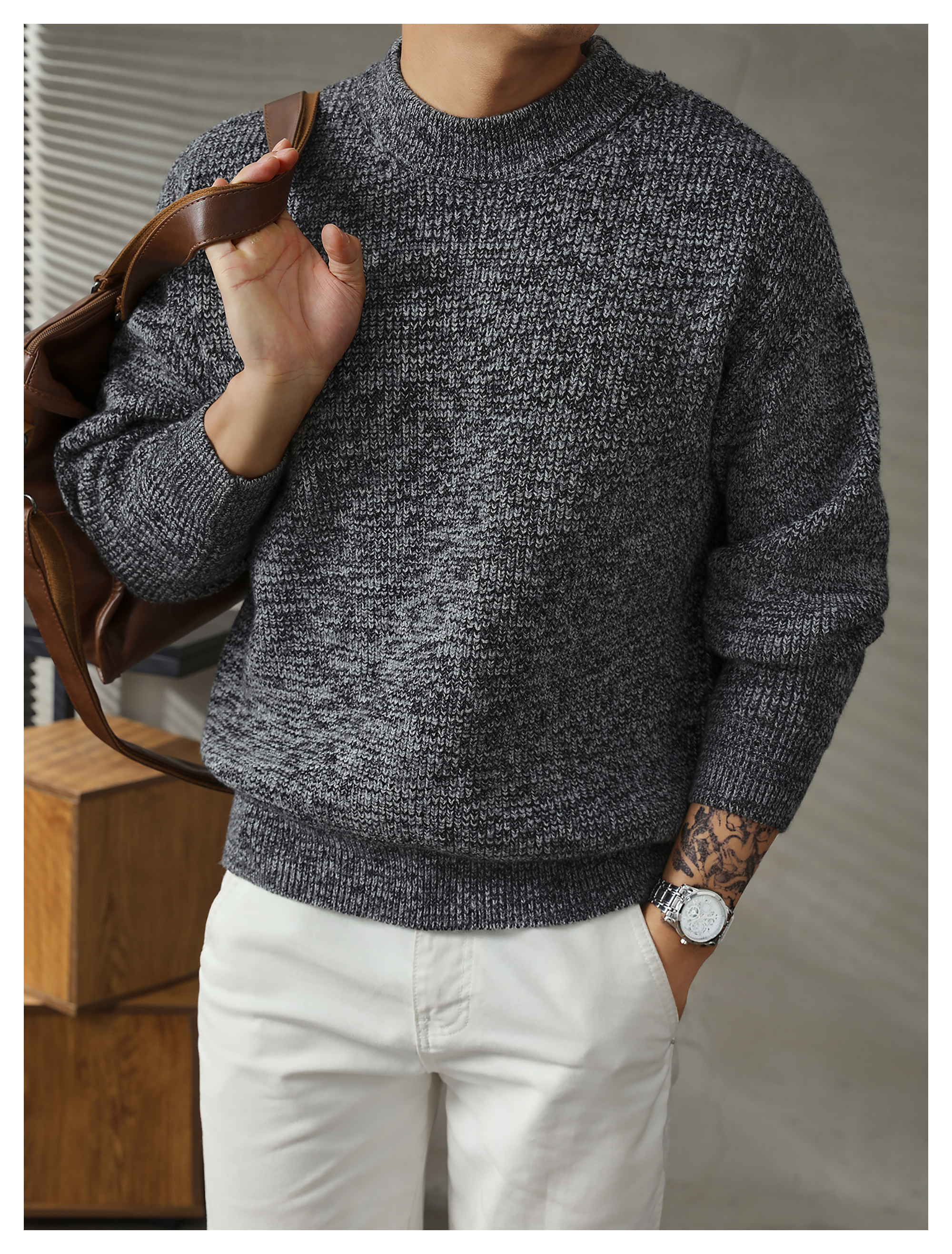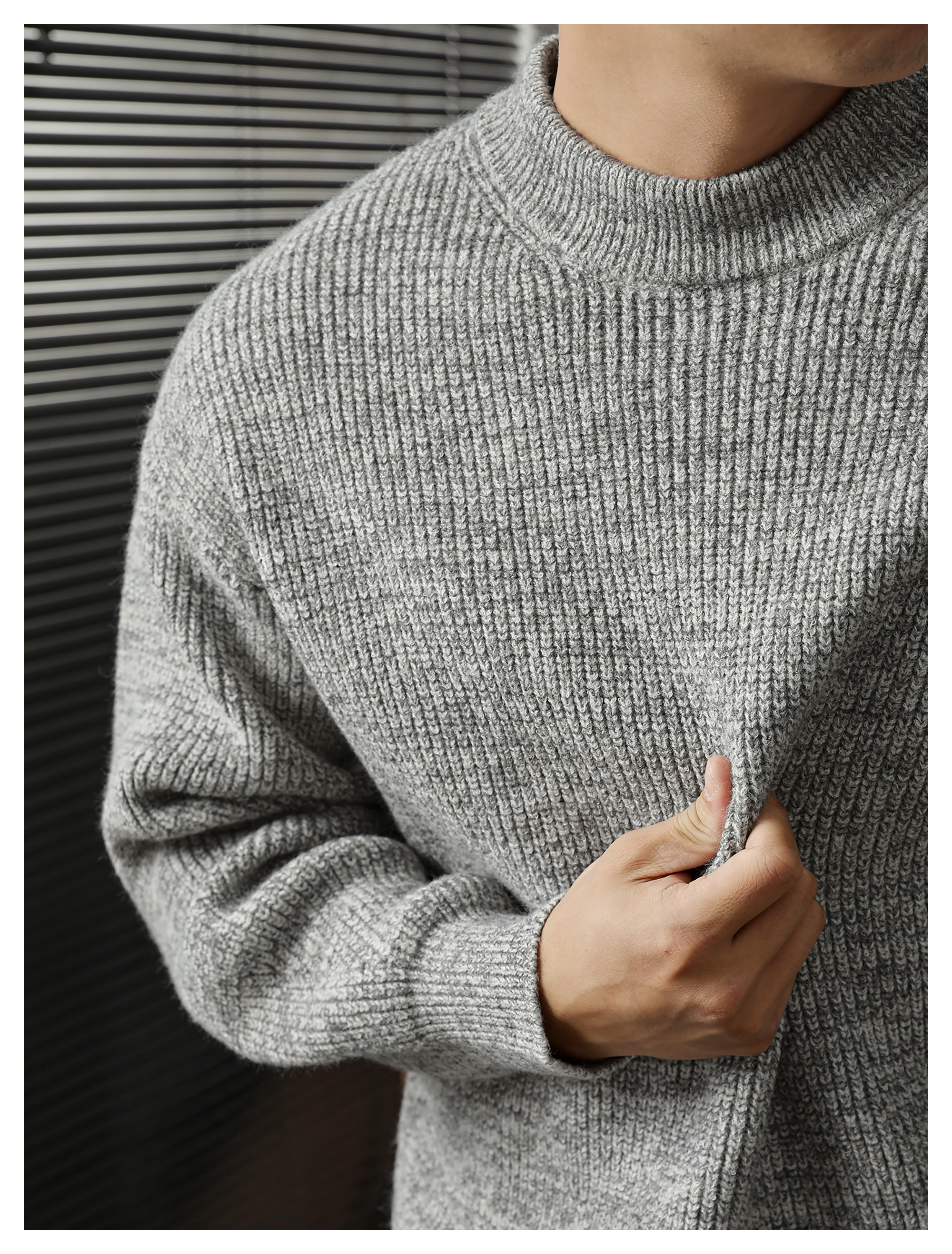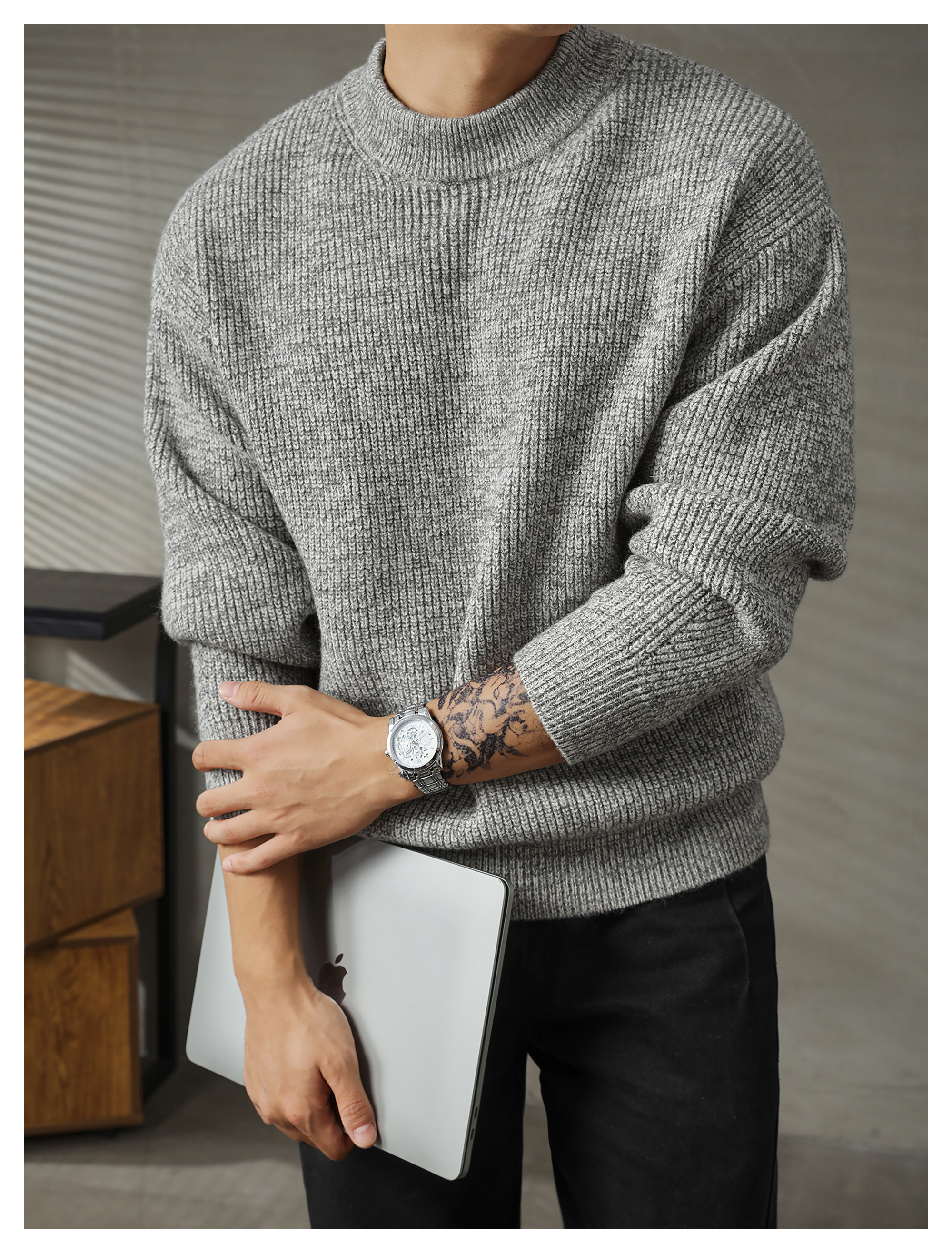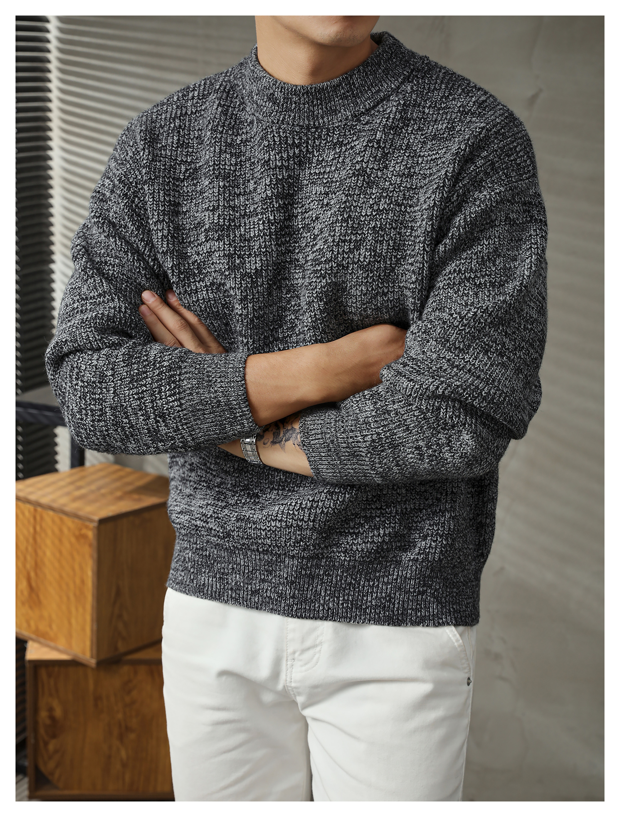 LUUD 圓領套頭毛衣男士2025秋冬保暖提花紋理百搭毛衫休閒針織衫