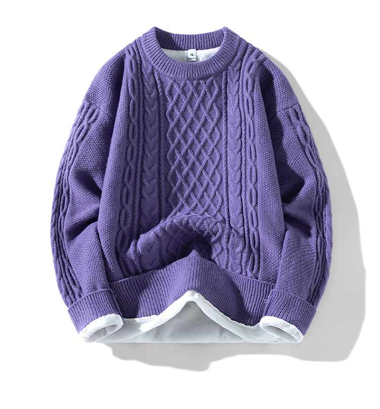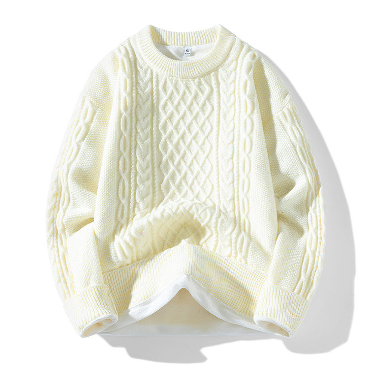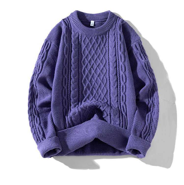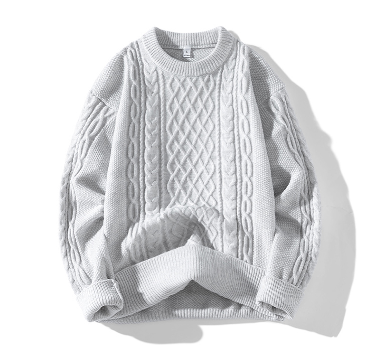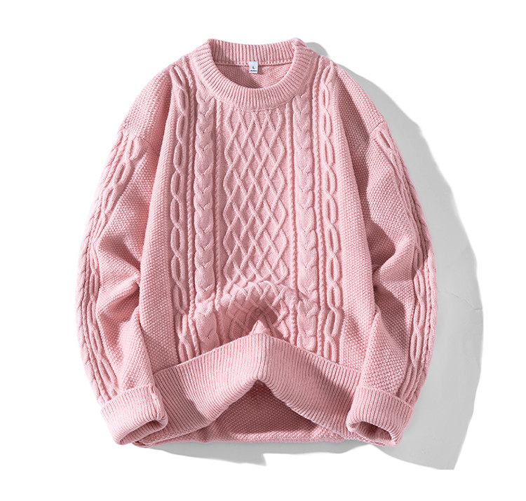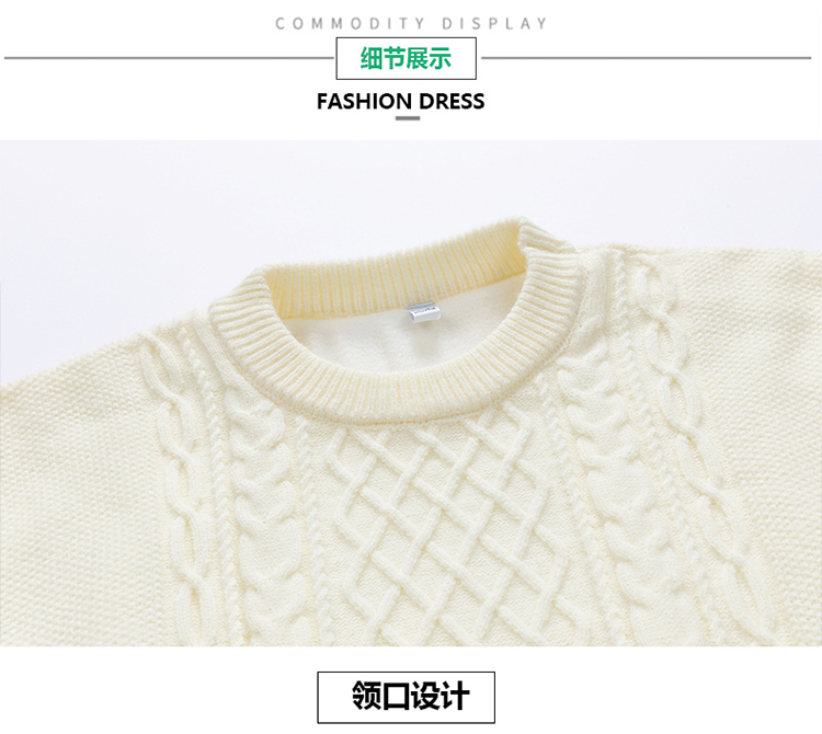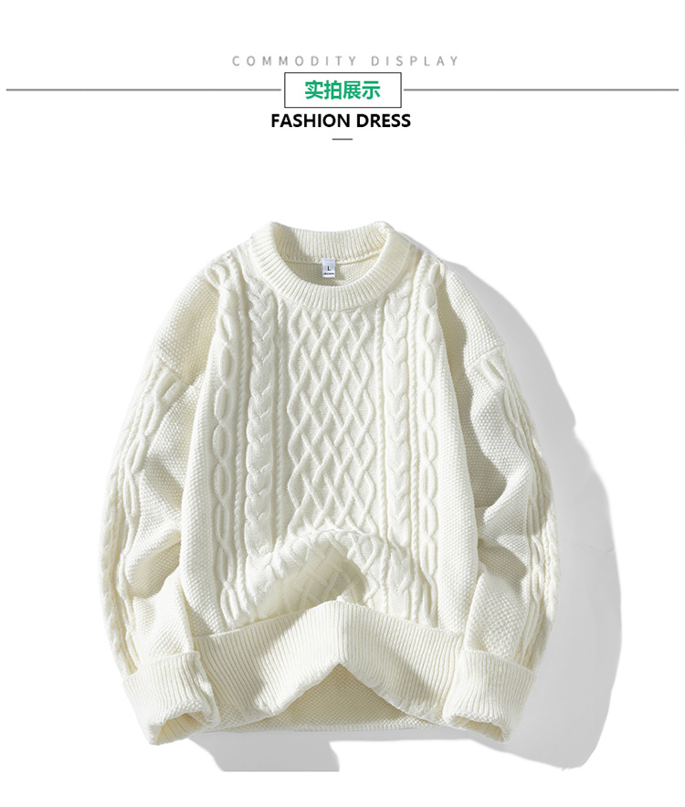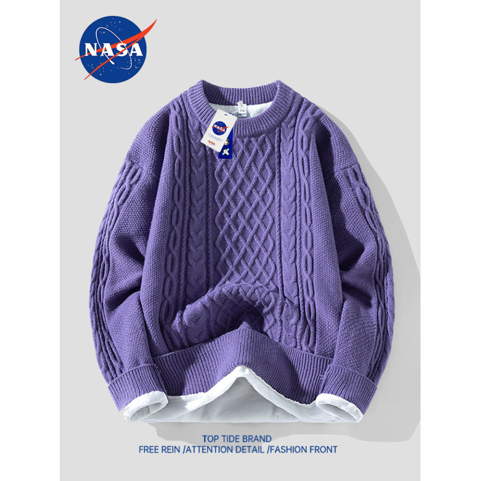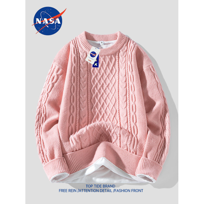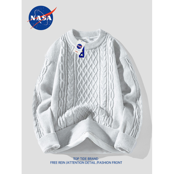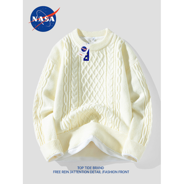 NASA圓領針織麻花毛衣男士秋冬季寬松休閒打底衫潮流百搭加絨長袖